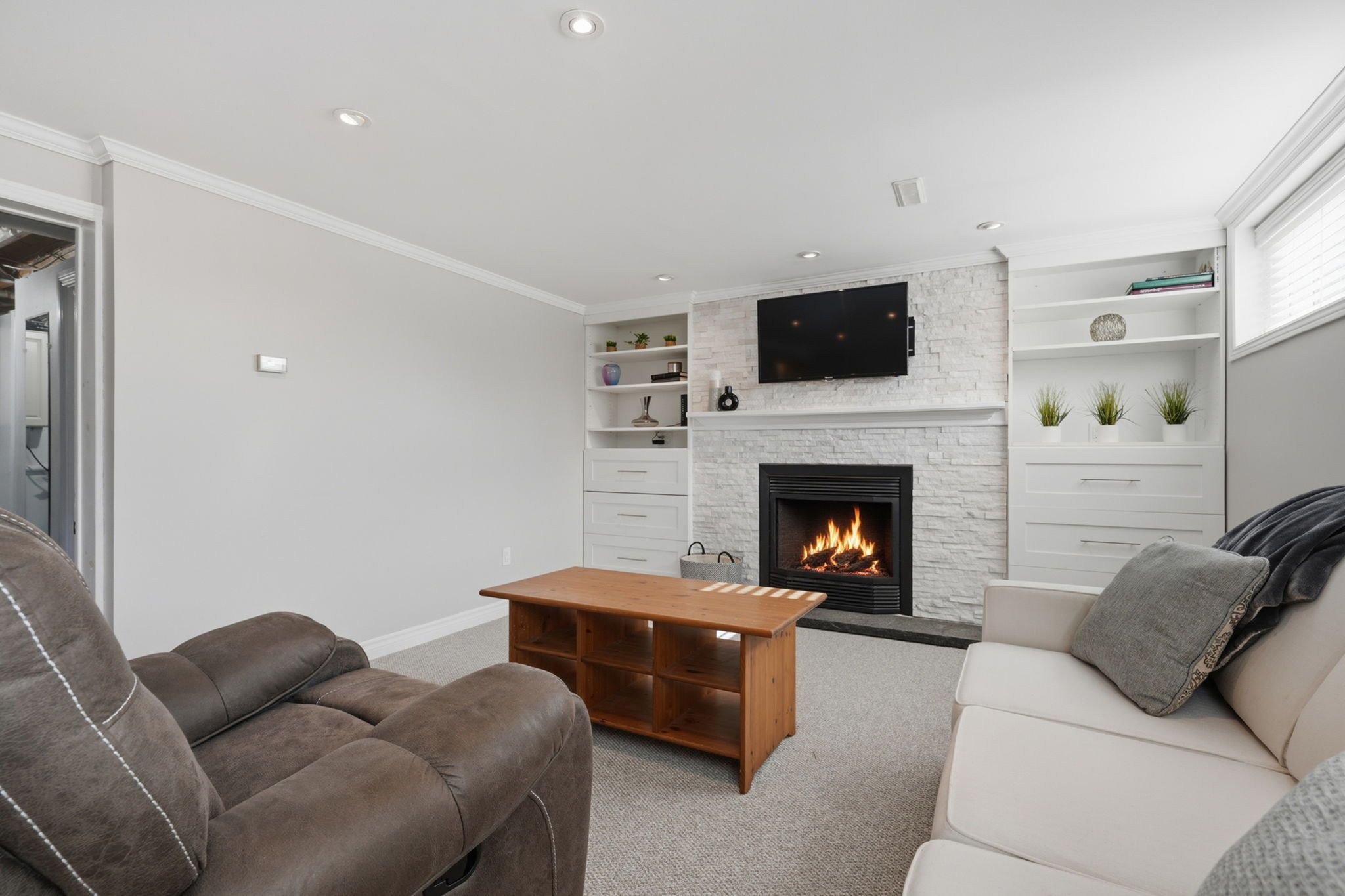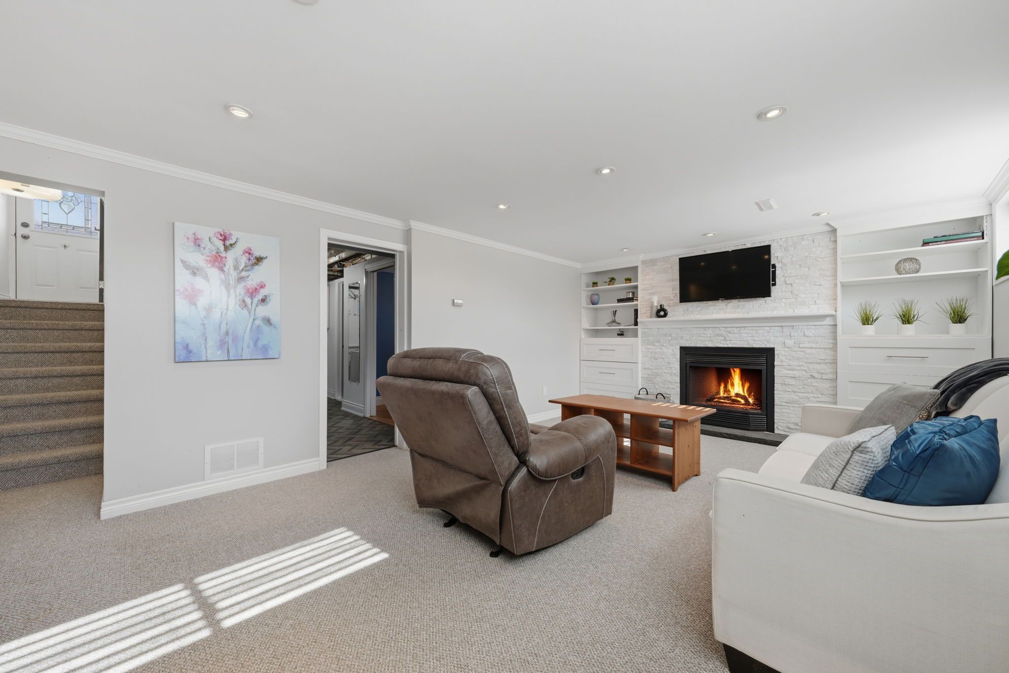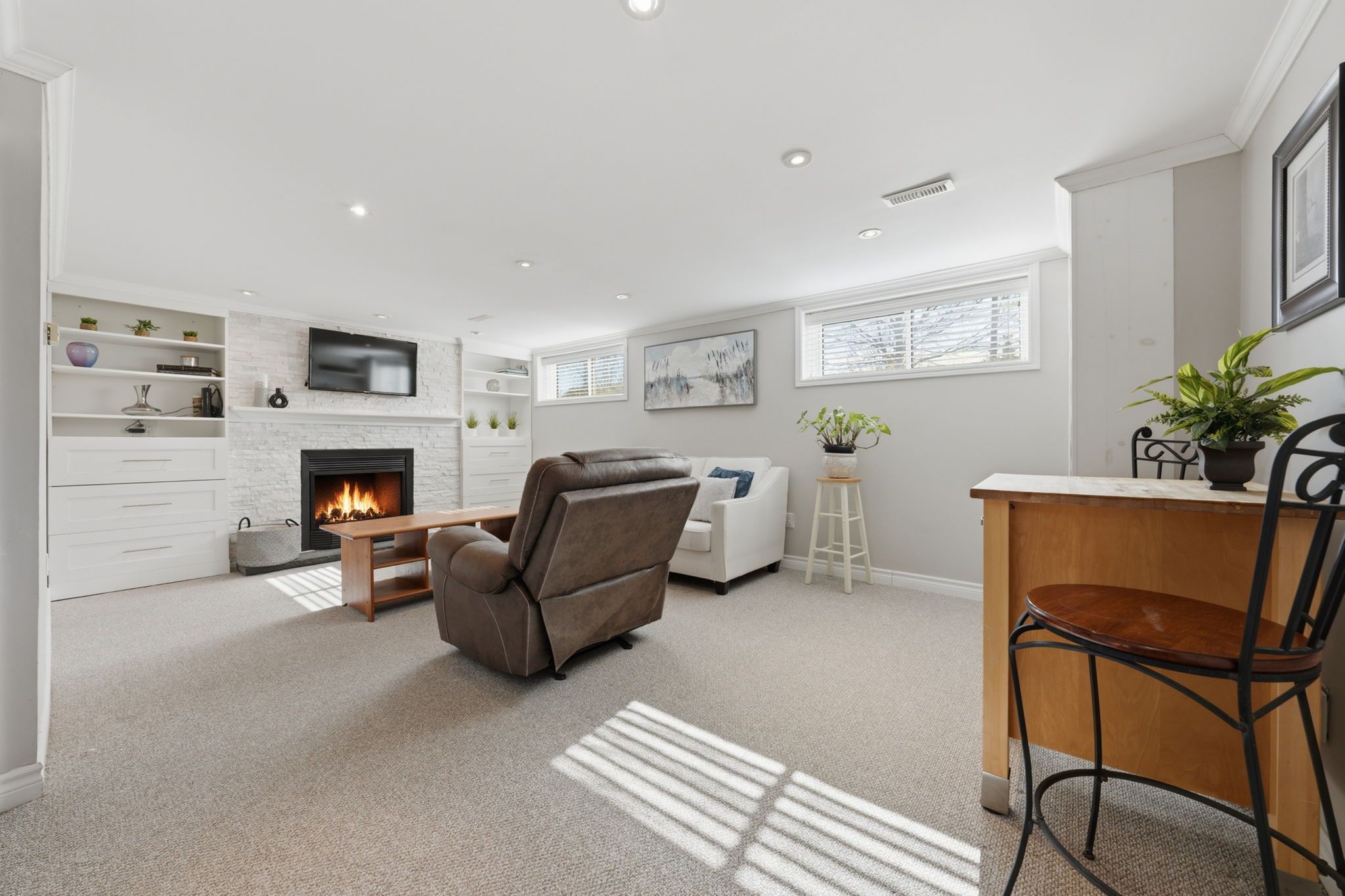 • Cozy lower level with a fireplace, recreation room, and additional bedroom.