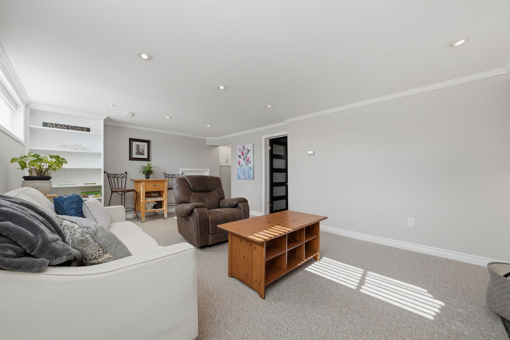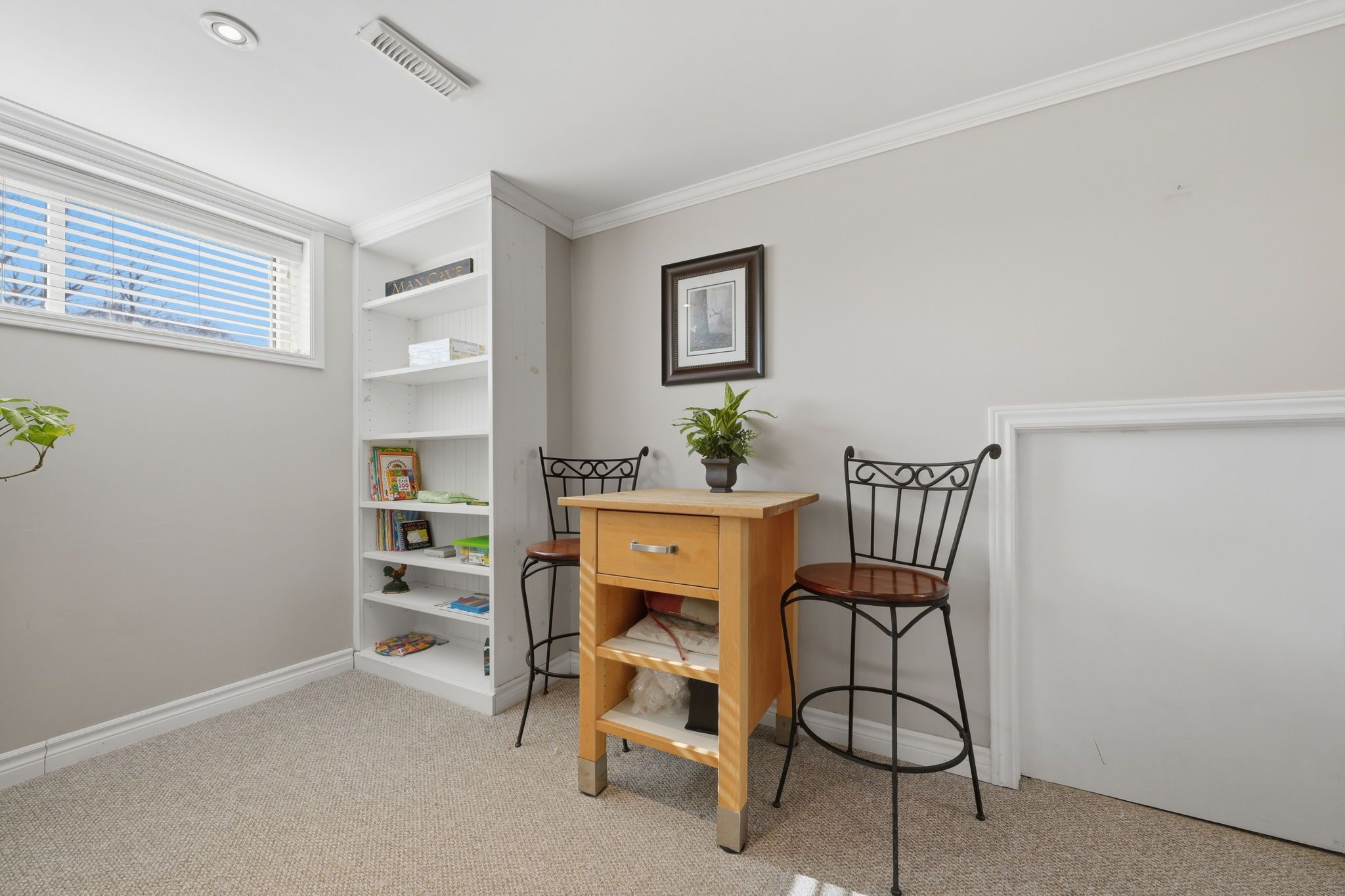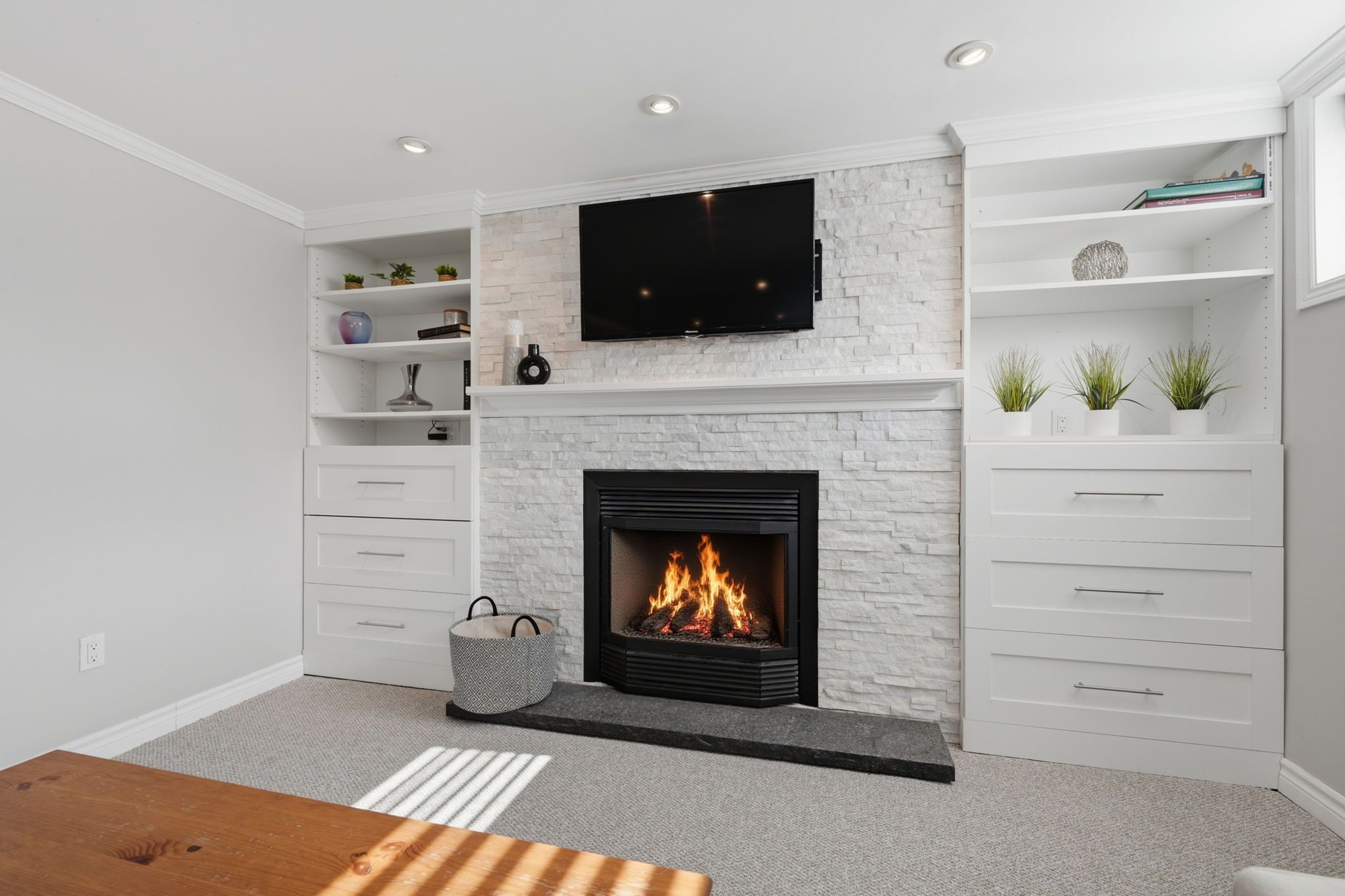 • Cozy lower level with a fireplace, recreation room, and additional bedroom.