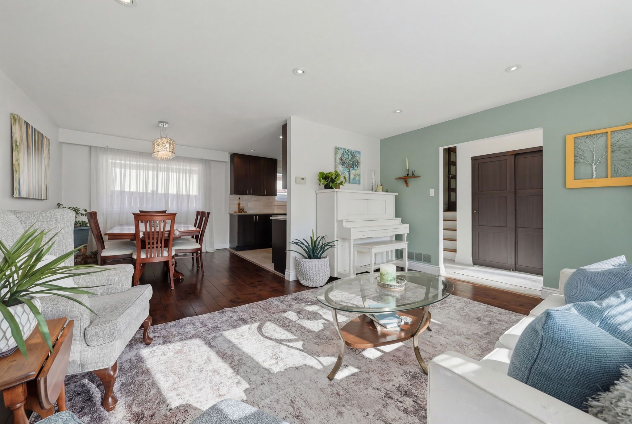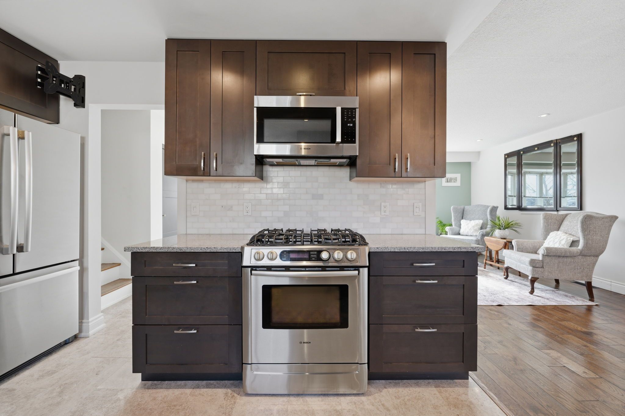 • Bright main level with open living and dining spaces and hardwood flooring.
