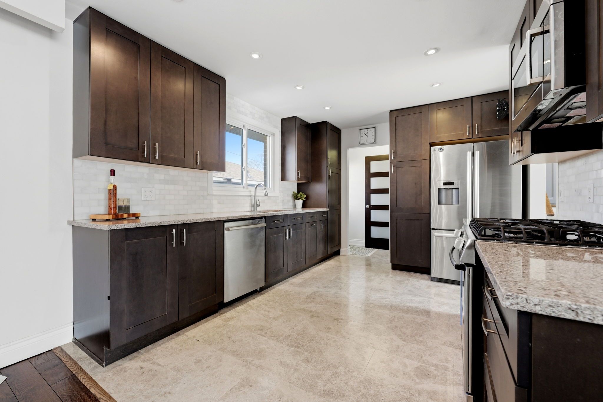 Tucked away on a quiet, family-friendly court, this beautifully updated 3-level side-split sits proudly on a premium corner lot, offering a rare blend of space, flexibility, & thoughtfully designed outdoor living. With 3+1 bedrooms, 2 full bathrooms, & a finished basement with a sep. Entrance, this home adapts effortlessly to your lifestyle, whether you're growing, hosting, or planning for multi-generational living. The main level is bright, open, & inviting, natural light pours through the expansive front window, highlighting rich hardwood flooring & a seamless flow between living & dining spaces. The kitchen has been tastefully updated with marble floors, granite countertops, stainless steel appliances, gas range, a classic subway tile backsplash, & quality thomasville cabinetry, balancing style with function. Upstairs, you'll find a king-sized primary retreat along with two additional well-appointed bedrooms, all finished with hardwood flooring, & an updated main bath. The lower level extends your living space with a cozy rec room featuring a fireplace & built-ins, perfect for quiet nights or casual entertaining. This level also includes a bedroom & full bathroom, ideal for guests, extended family, or in-law potential. Private backyard thoughtfully designed for low-maintenance living & maximum enjoyment. Professionally finished with extensive stone pavers & armour stone, offers multiple areas to relax, gather, & entertain. Equipped with gas line for outdoor cooking & electrical service in both the shed & yard, this space is ready for effortless outdoor living. A small fully fenced in section of lawn remains, ideal for a dog run or a touch of greenery without added upkeep. A single-car garage is complemented by a spacious driveway with parking for up to 4 vehicles, ensuring plenty of room for family & guests. One of georgetown's most desirable neighbourhoods, close to parks, schools, & everyday amenities.