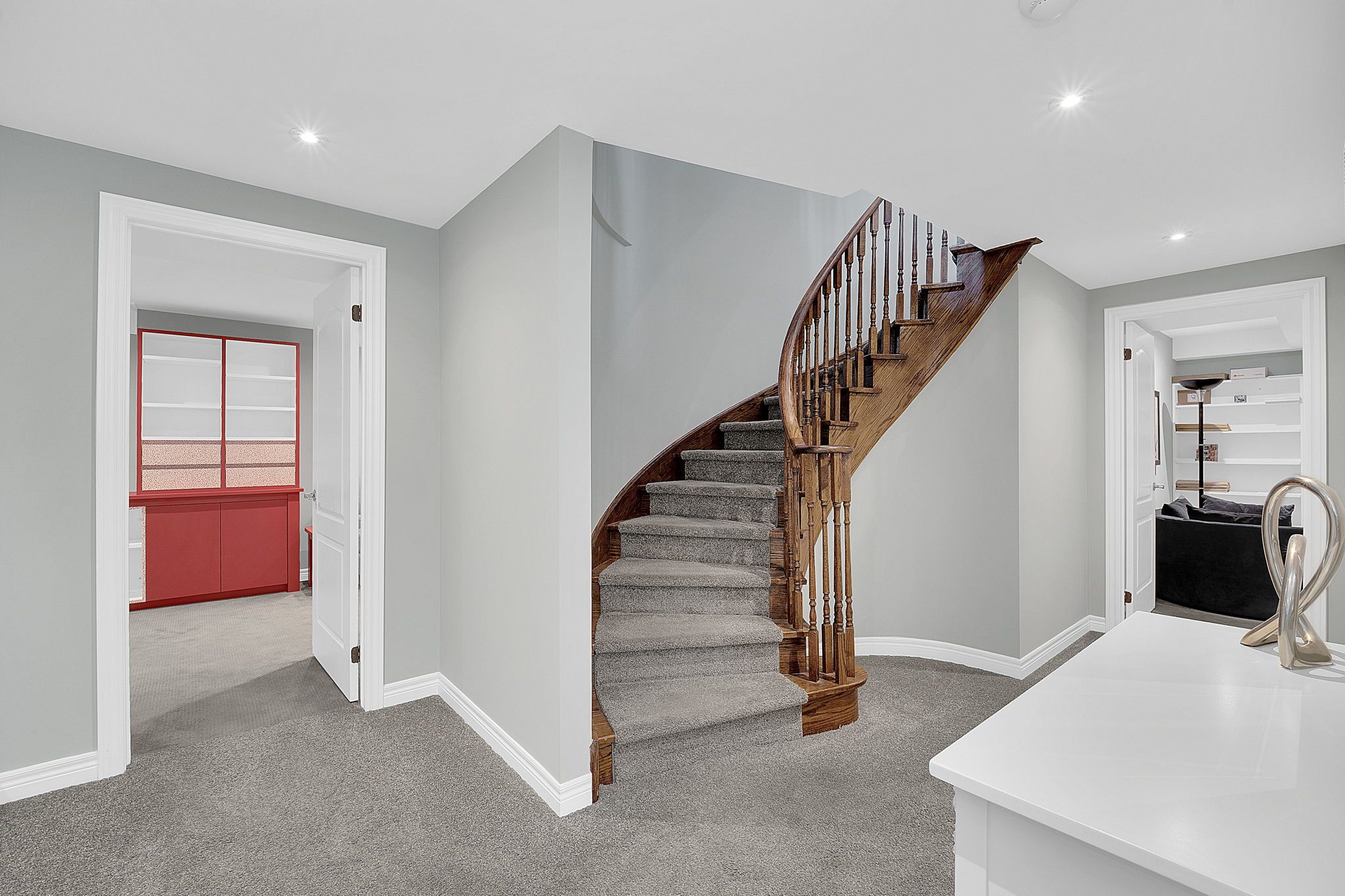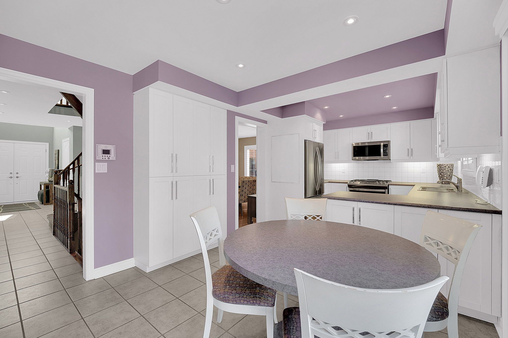 • Bright two-storey foyer and open hardwood staircase add charm.