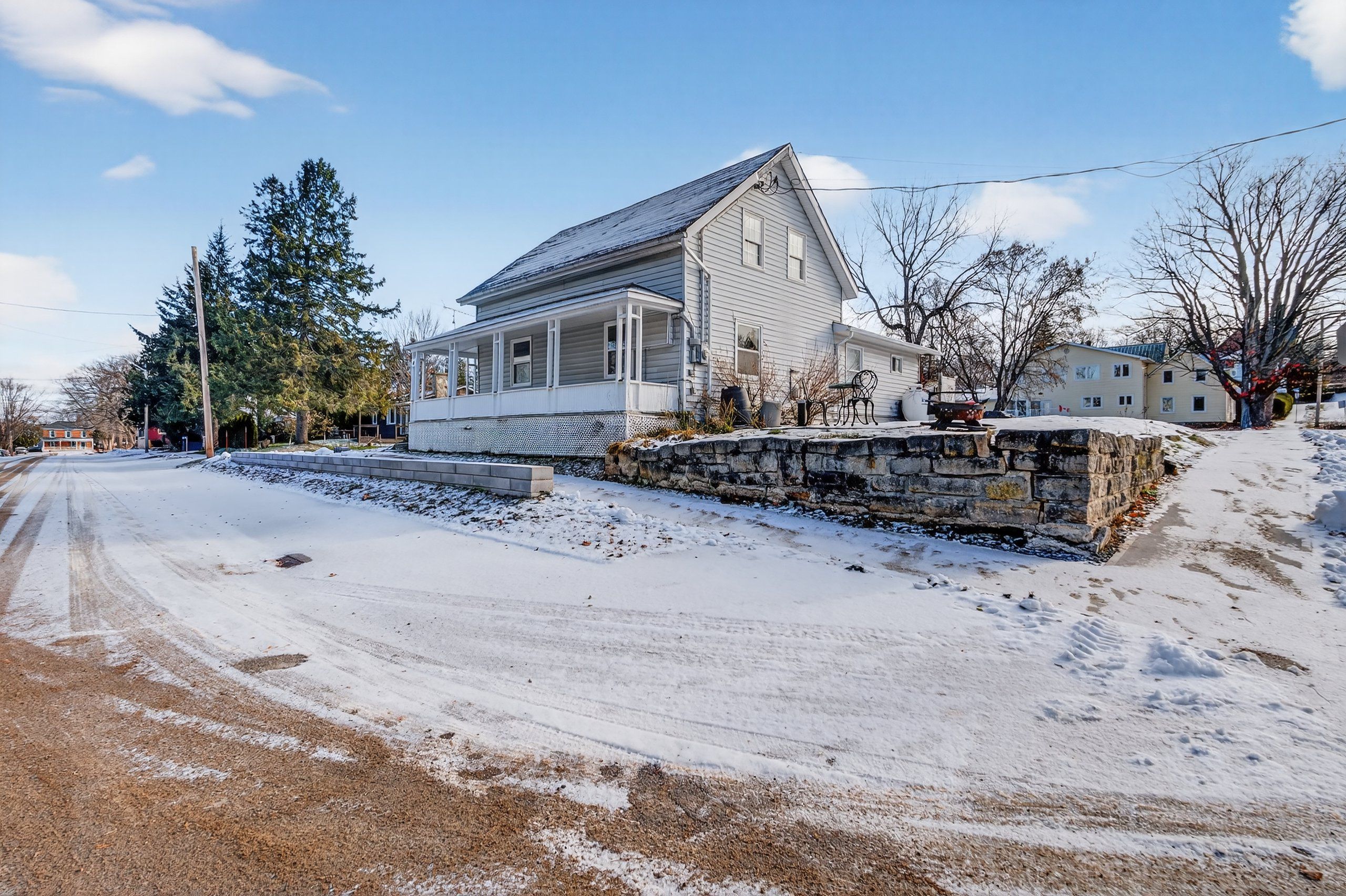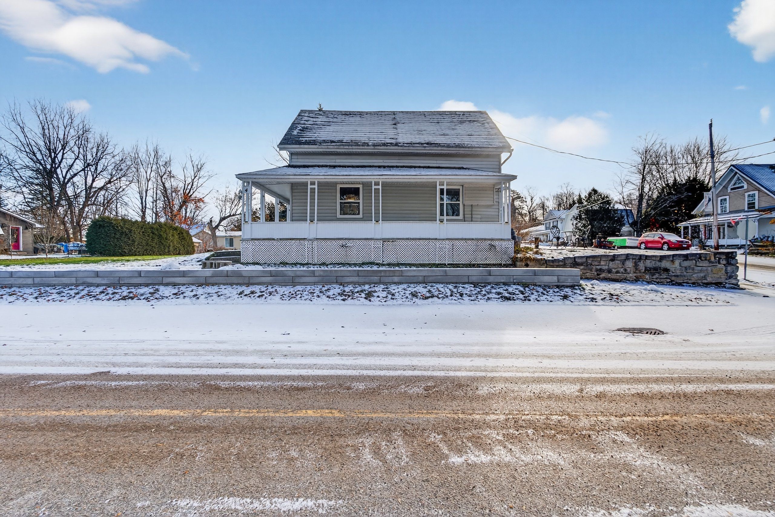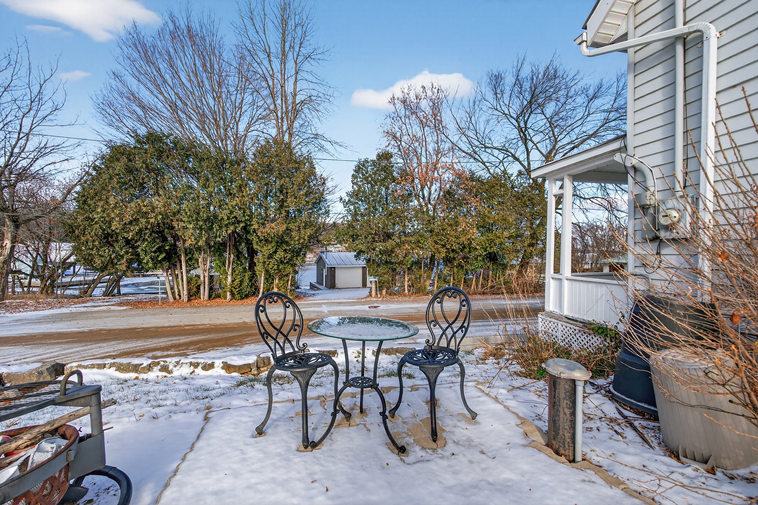 Wow...$365,000 also gives you a newer furnace, ac and a water treatment system. Wake up to big rideau lake views at 4 water street in portland. This large corner-lot home with a classic wraparound porch sits directly across from the water, giving you the scenery, marinas, and public docks without paying waterfront prices or taxes. Inside, the bright eat-in kitchen features newer appliances and plenty of space to gather. The sun-filled living room is anchored by a cozy gas fireplace and large windows that frame the lake views. The main floor also offers a primary bedroom, 4-piece bath, and convenient main-floor laundry for easy everyday living. Upstairs you will find two additional bedrooms, a 2-piece bath, and a flexible den or sitting area that works perfectly as a home office, reading nook, or kids' retreat. Outside, the generous yard overlooks the lake and invites everything from summer barbecues to quiet morning coffee on the porch. A new $4,000 water treatment system adds peace of mind. Love the outdoors? Dock rentals and marinas are just across the street, with a public boat launch down the road. Swim from the public docks, picnic at the local beach, or explore the cataraqui trail for hiking, biking, and snowmobiling. All this, plus walkable town amenities including a bank, lcbo, post office, grocery store, medical centre, and great local restaurants. From summer sunsets to winter's skate the lake festival, portland offers true four-season living. If you have been waiting for lake views without the waterfront premium and taxes, this is your opportunity. Call today to schedule your viewing. Quick possession is possible.