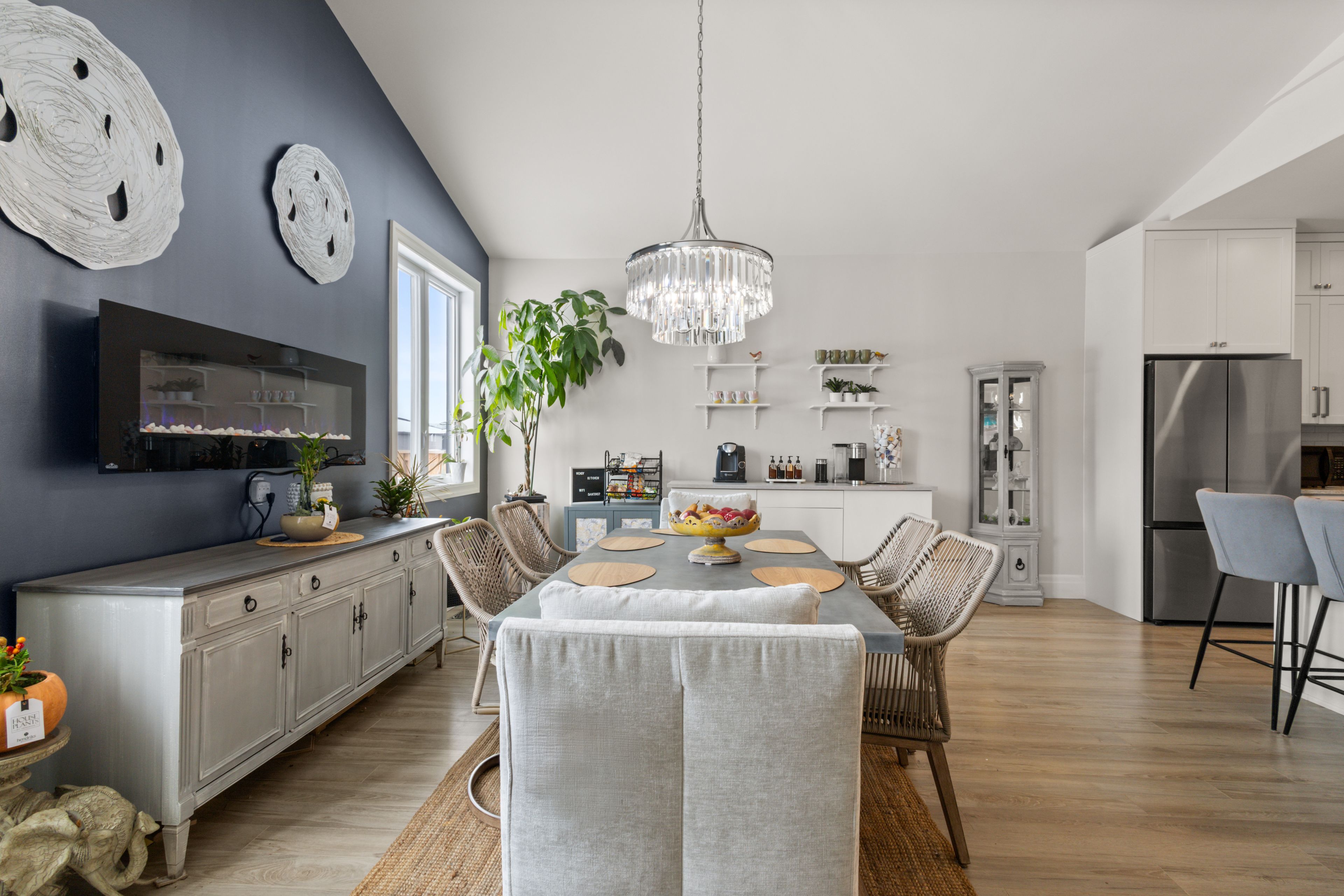 Premium 50' x 150' lot in west meadows with 3 full levels and approximately 4,000 sq. Ft. Of finished living space. This executive family home features a modern facade and a sprawling main floor with a private office, 2-piece bath, and dedicated living/dining areas. The upgraded kitchen offers premium cabinetry, a walk-in pantry, and a vaulted dining area. The living room is anchored by an electric fireplace feature and leads to a 3-season sunroom, composite deck, and interlock patio in the fully fenced yard. Upstairs, the primary suite includes a walk-in closet and an ensuite with a soaker tub and shower. Two additional bedrooms-both with walk-in closets-share a second full 4-piece bathroom. The finished basement adds incredible flexibility with a fourth bedroom, full bathroom, and living/dining areas with large egress windows. A lower-level kitchenette makes the space perfect for guests or multigenerational living. Located within walking distance to picton's main street and the millennium trail, this home offers modern living in the heart of prince edward county.