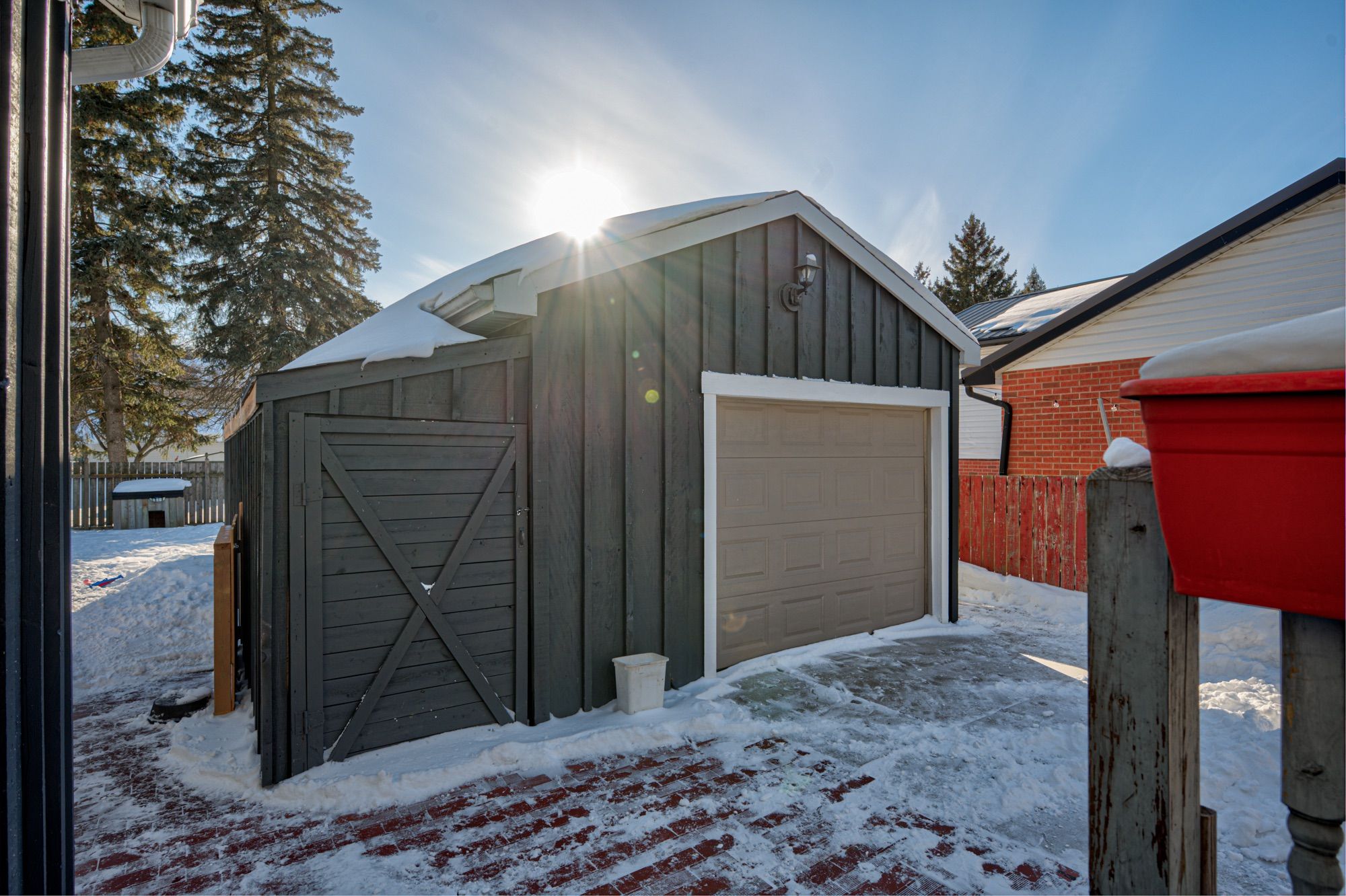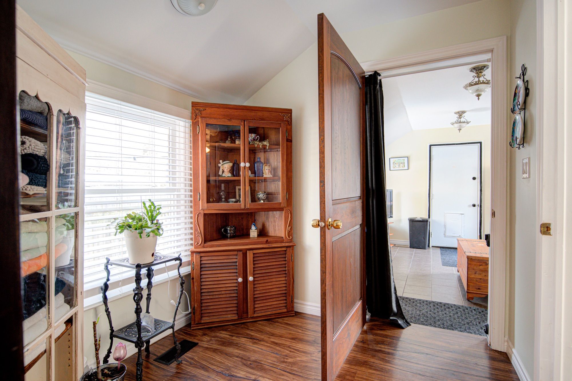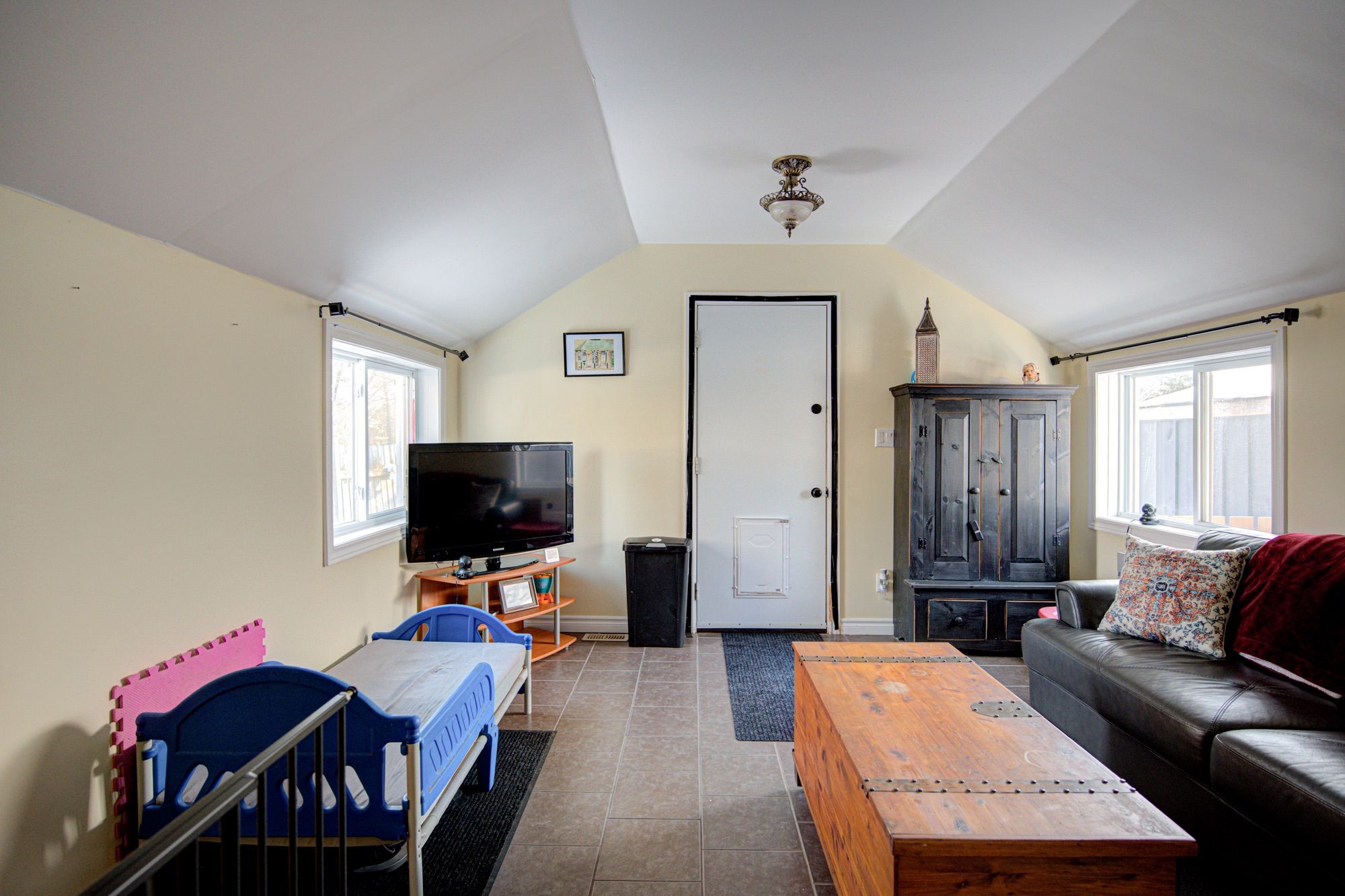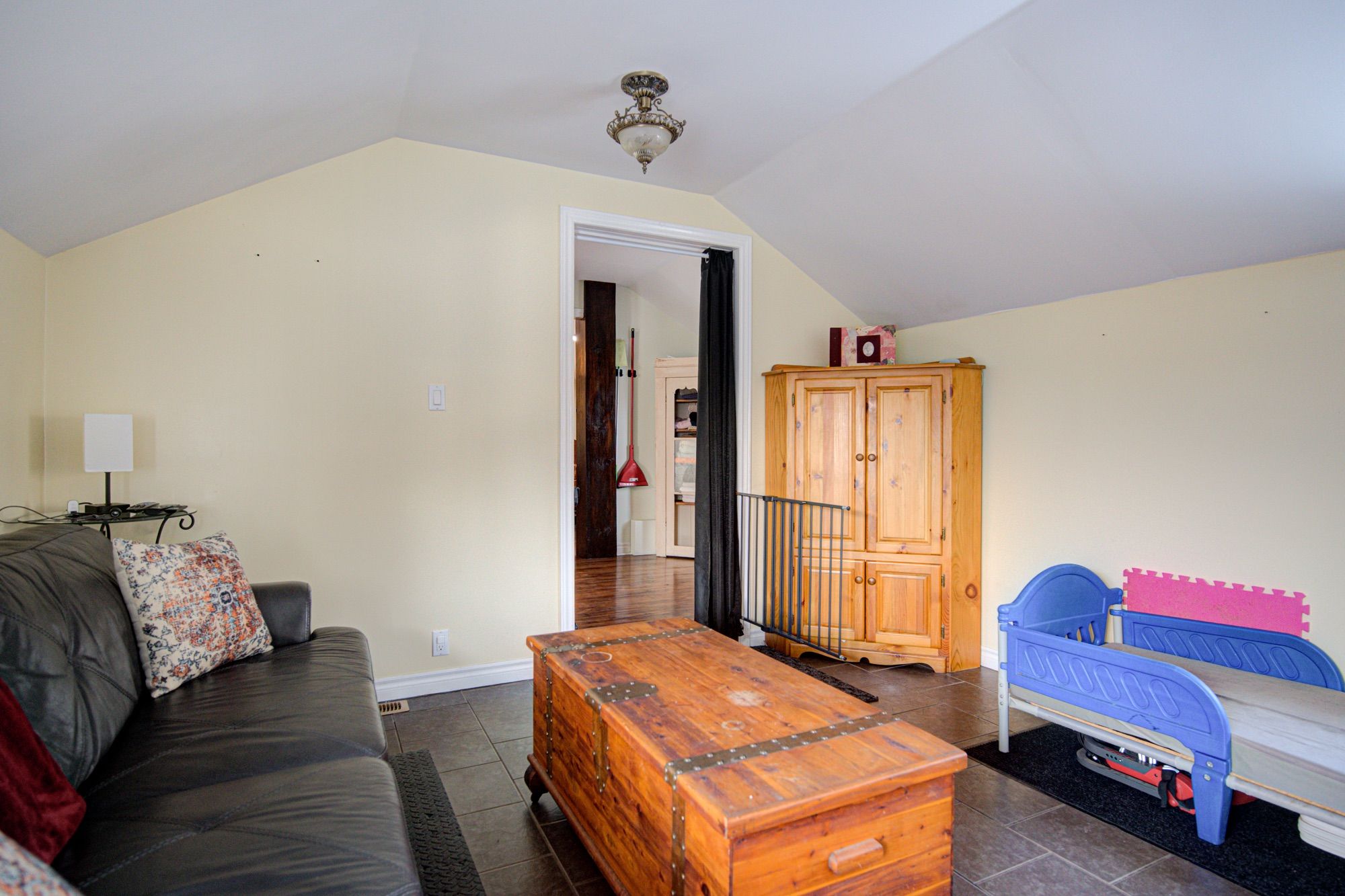 This beautiful century home feels like a storybook the moment you pull up. Upon entering you will see and feel the charm giving you the sense you are home. The main floor features a generous primary bedroom, a large living room with a charming spiral staircase to the second level. The large eat-in kitchen is truly the heart of this home where many meals and memories are waiting to be made. Rounding out the main floor are a 2nd bedroom with ample space, a full 4-piece bathroom with laundry for extra convenience and a family room with door to the fully fenced in backyard. On the second level is a generous size bedroom and a bonus space to make your office, home gym or just more play space for the family. The many updates ensure you are getting great value for this 3 bedroom family home. Since 2024 the home owners had the front deck added, expanded the driveway for an additional spot, added a new 100 amp electrical panel (and there is a sub-panel in the garage), added lights in the dining area, replaced the hot water tank, which is owned and added an addition to the garage.