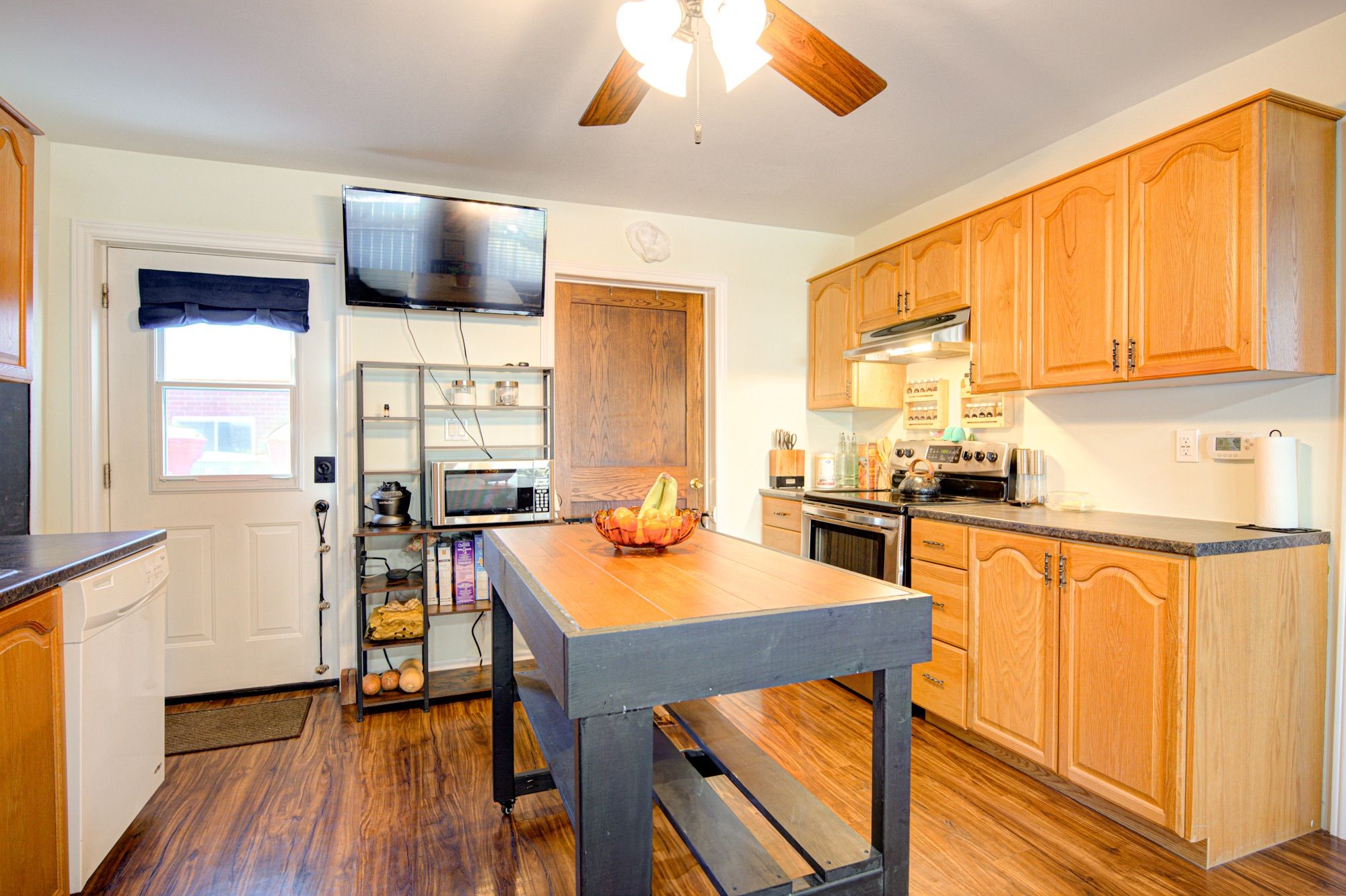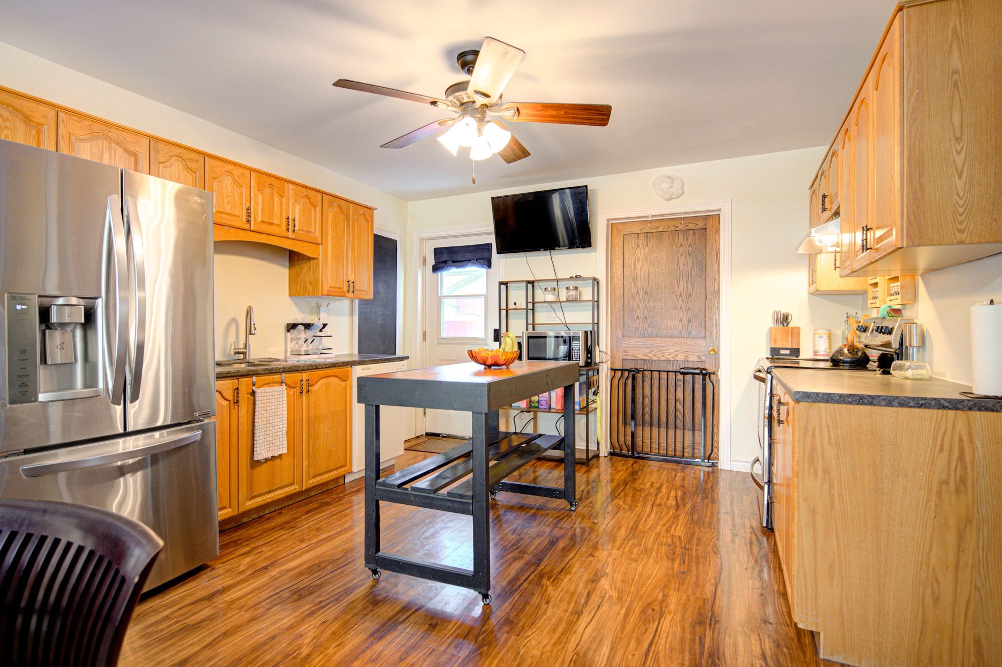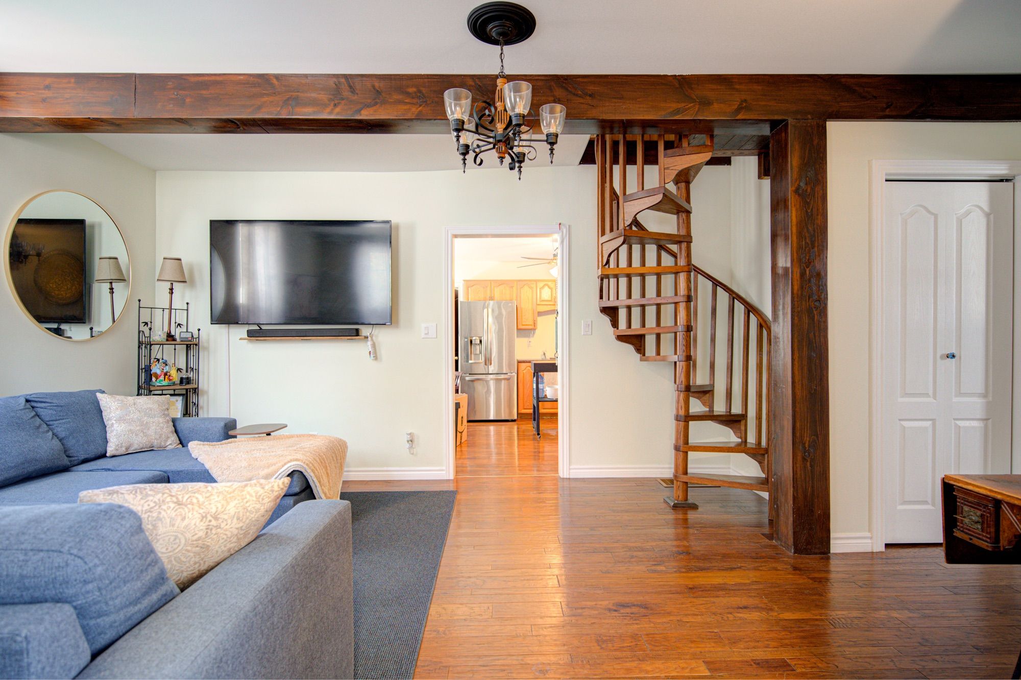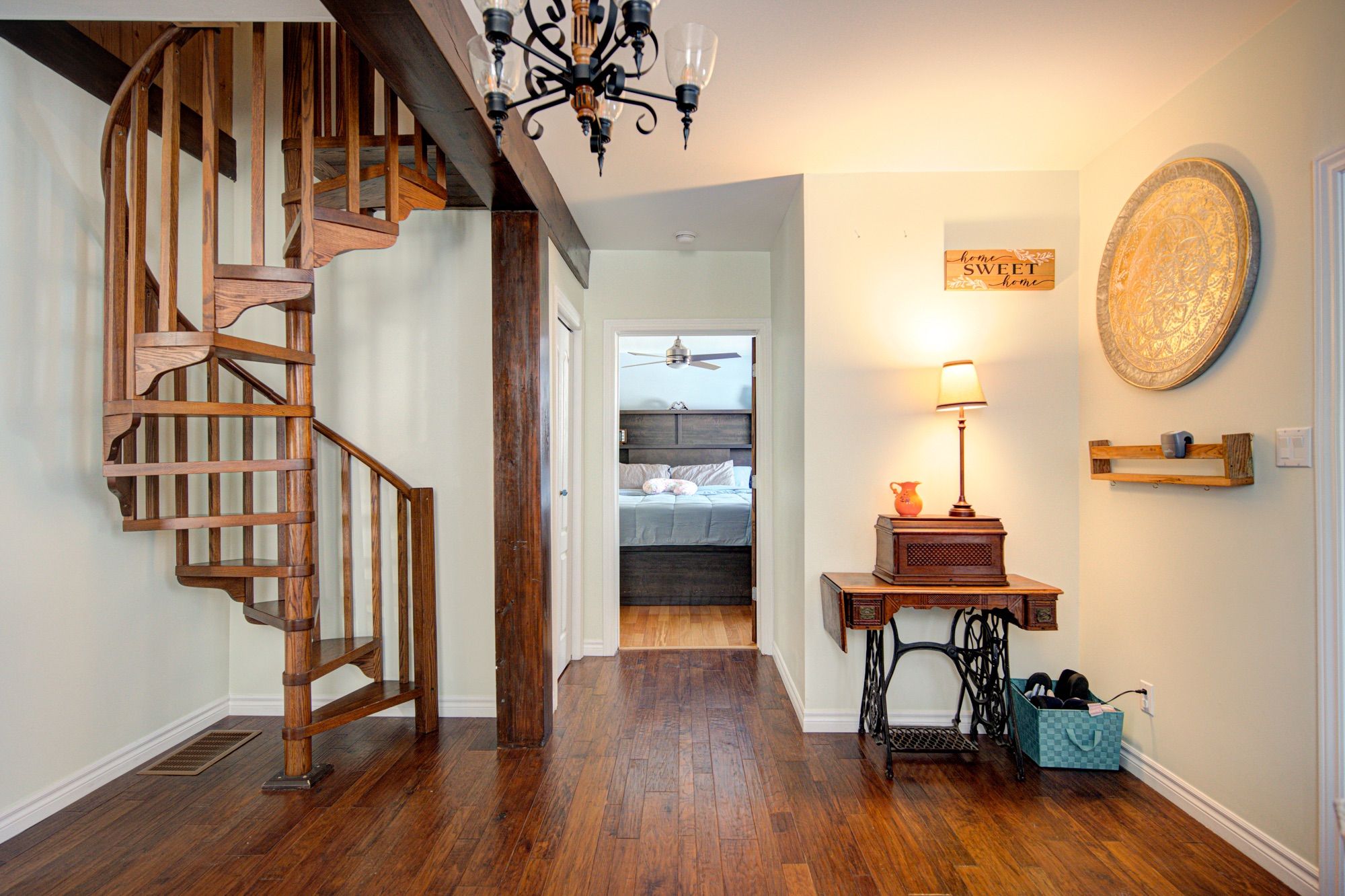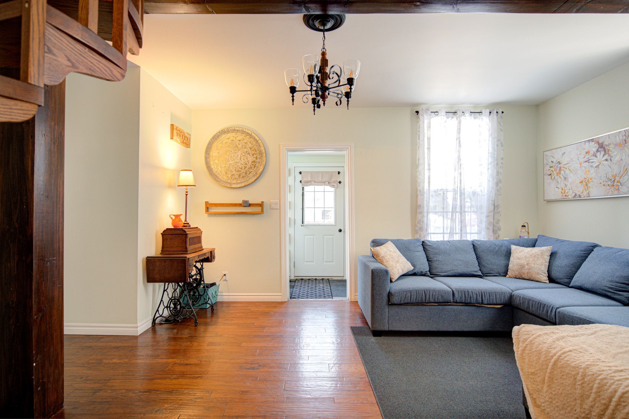 This beautiful century home feels like a storybook the moment you pull up. Upon entering you will see and feel the charm giving you the sense you are home. The main floor features a generous primary bedroom, a large living room with a charming spiral staircase to the second level. The large eat-in kitchen is truly the heart of this home where many meals and memories are waiting to be made. Rounding out the main floor are a 2nd bedroom with ample space, a full 4-piece bathroom with laundry for extra convenience and a family room with door to the fully fenced in backyard. On the second level is a generous size bedroom and a bonus space to make your office, home gym or just more play space for the family. The many updates ensure you are getting great value for this 3 bedroom family home. Since 2024 the home owners had the front deck added, expanded the driveway for an additional spot, added a new 100 amp electrical panel (and there is a sub-panel in the garage), added lights in the dining area, replaced the hot water tank, which is owned and added an addition to the garage.