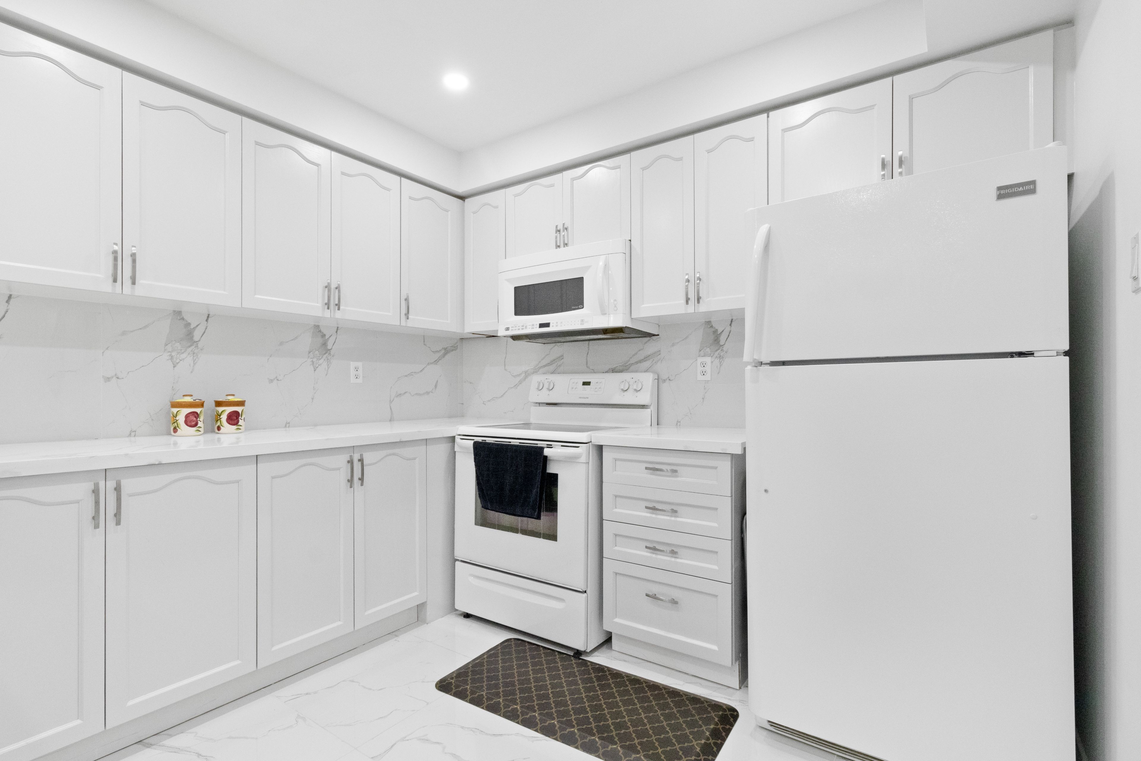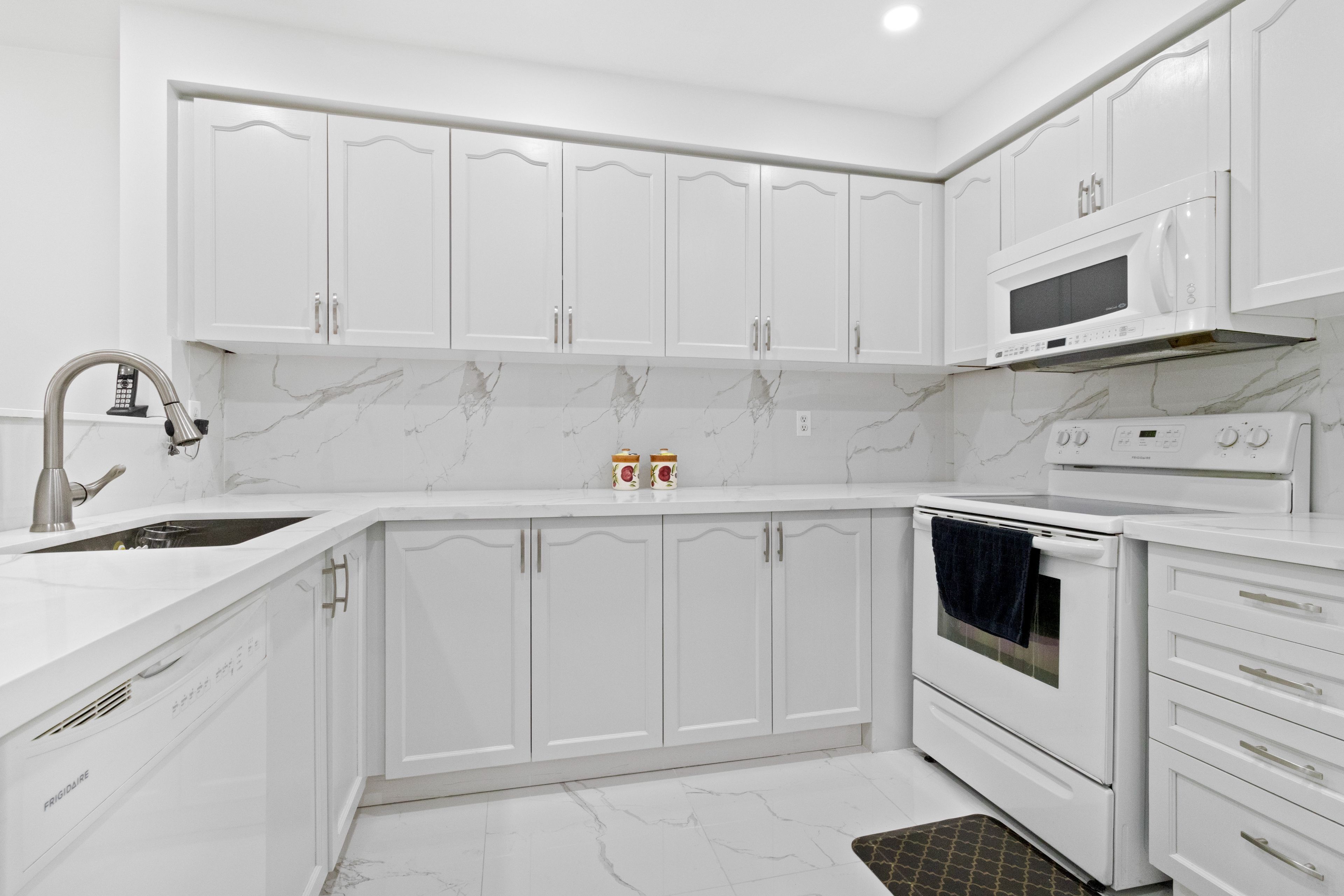 • Modern kitchen featuring quartz countertops and stylish backsplash.