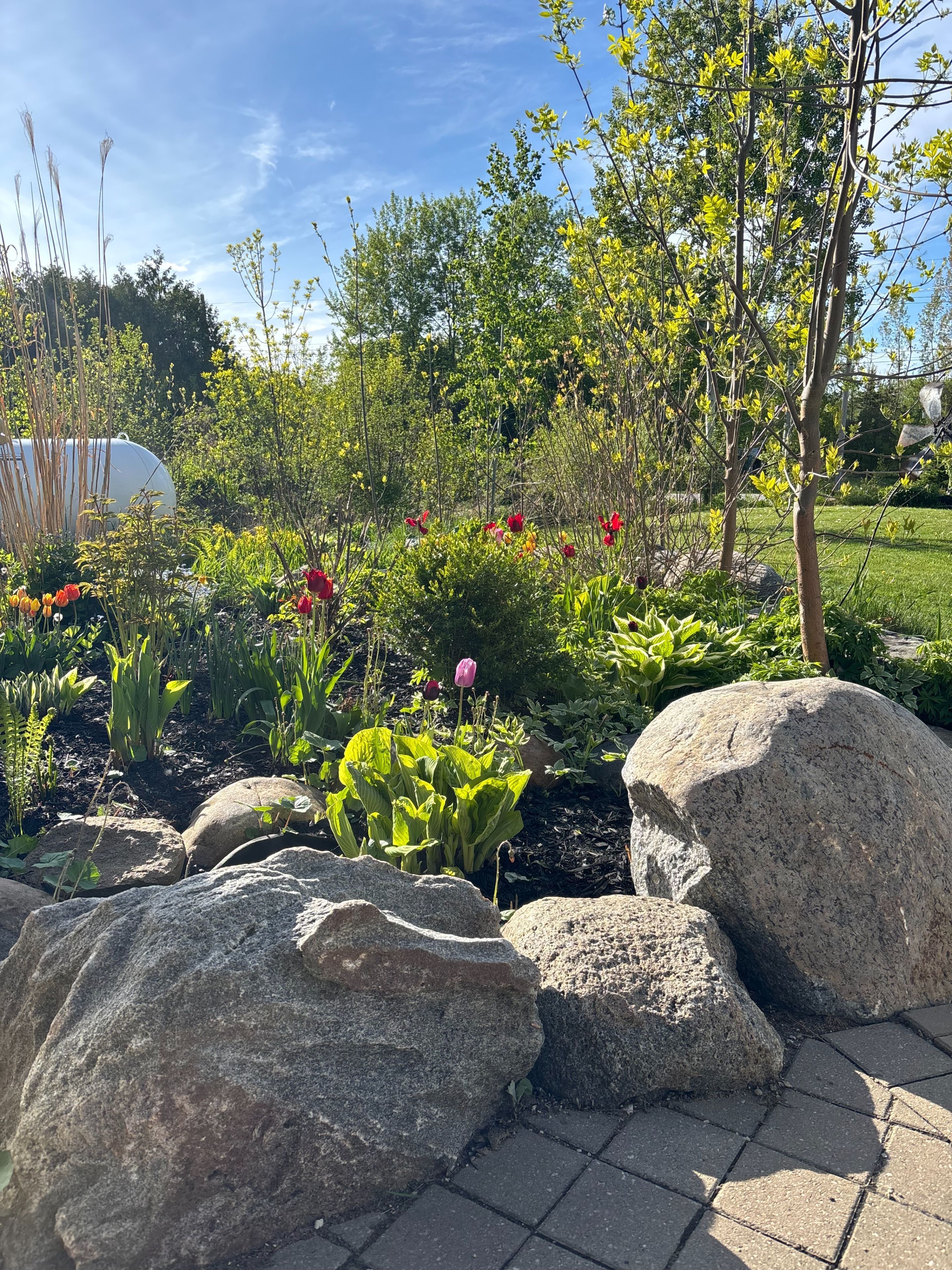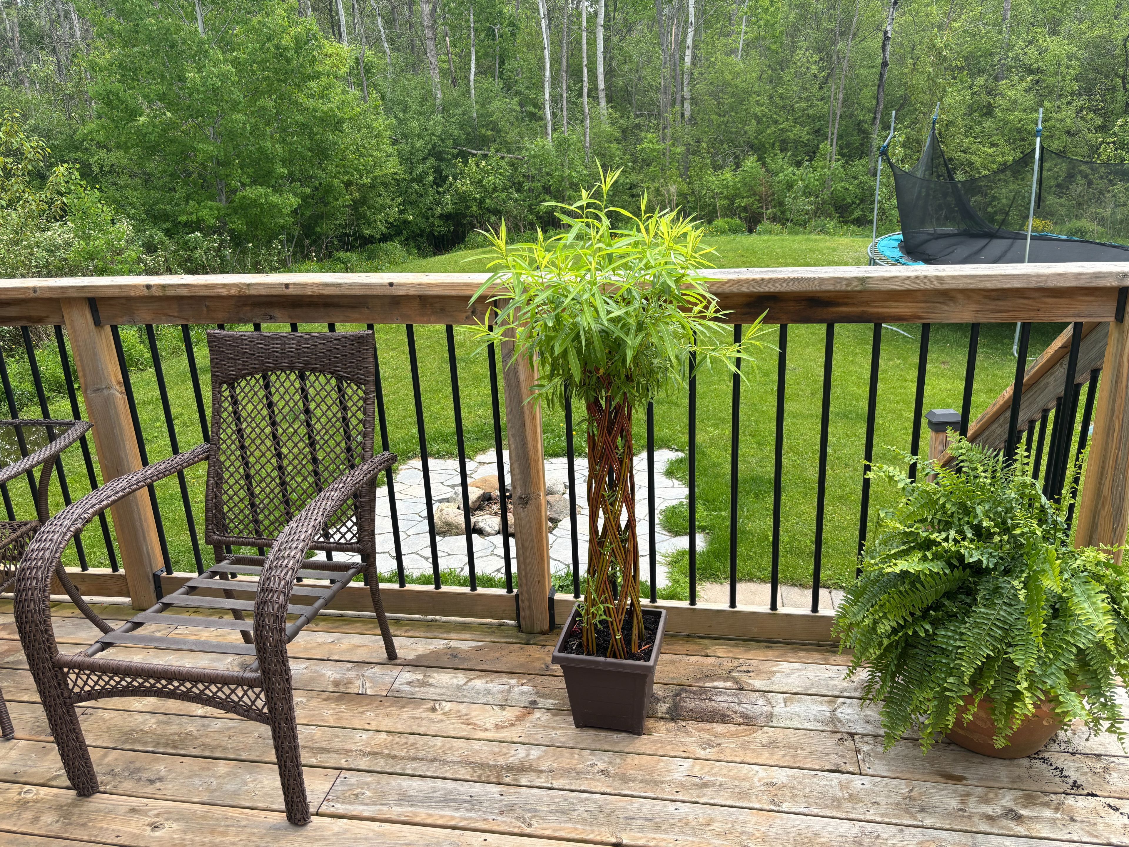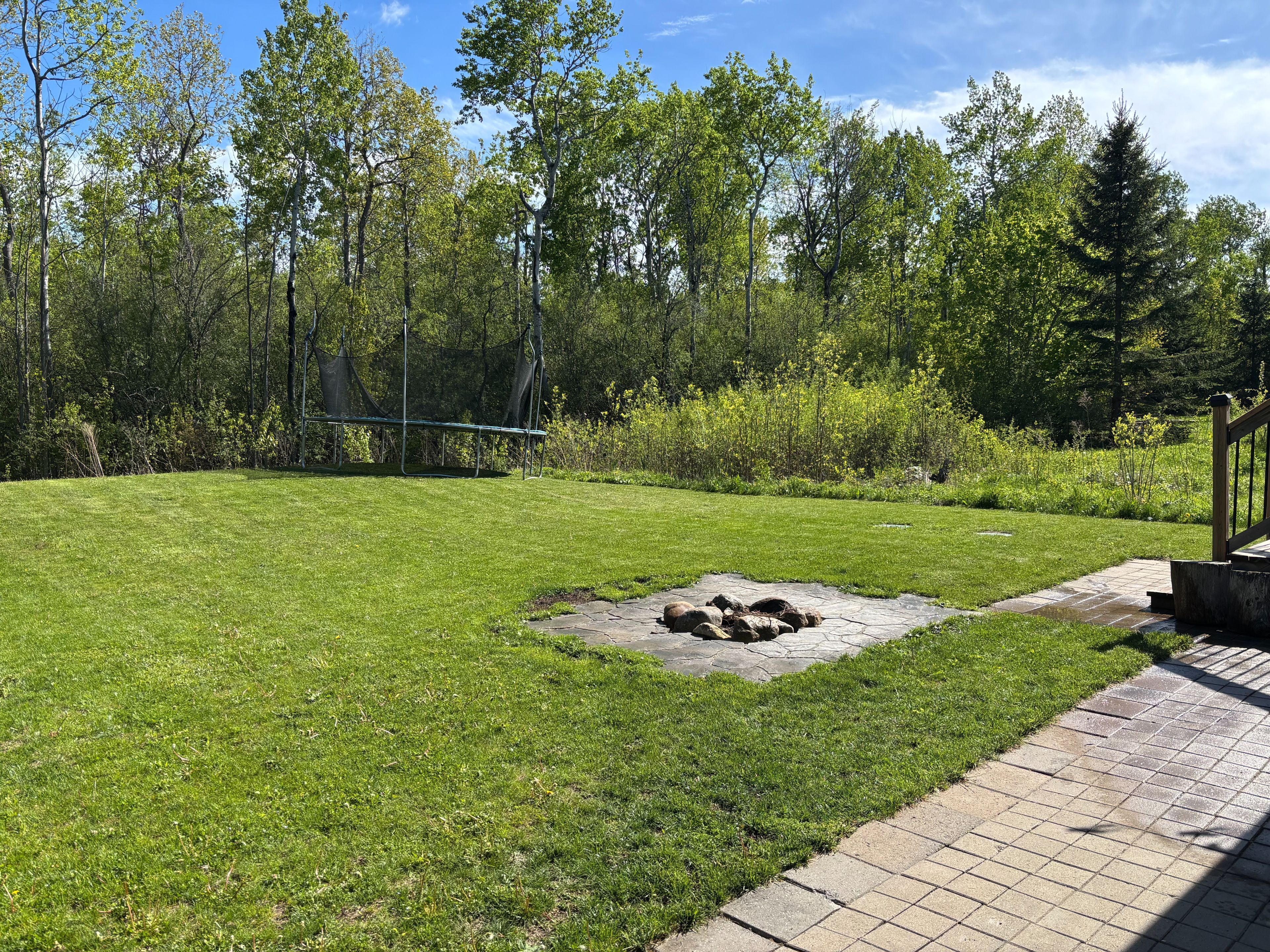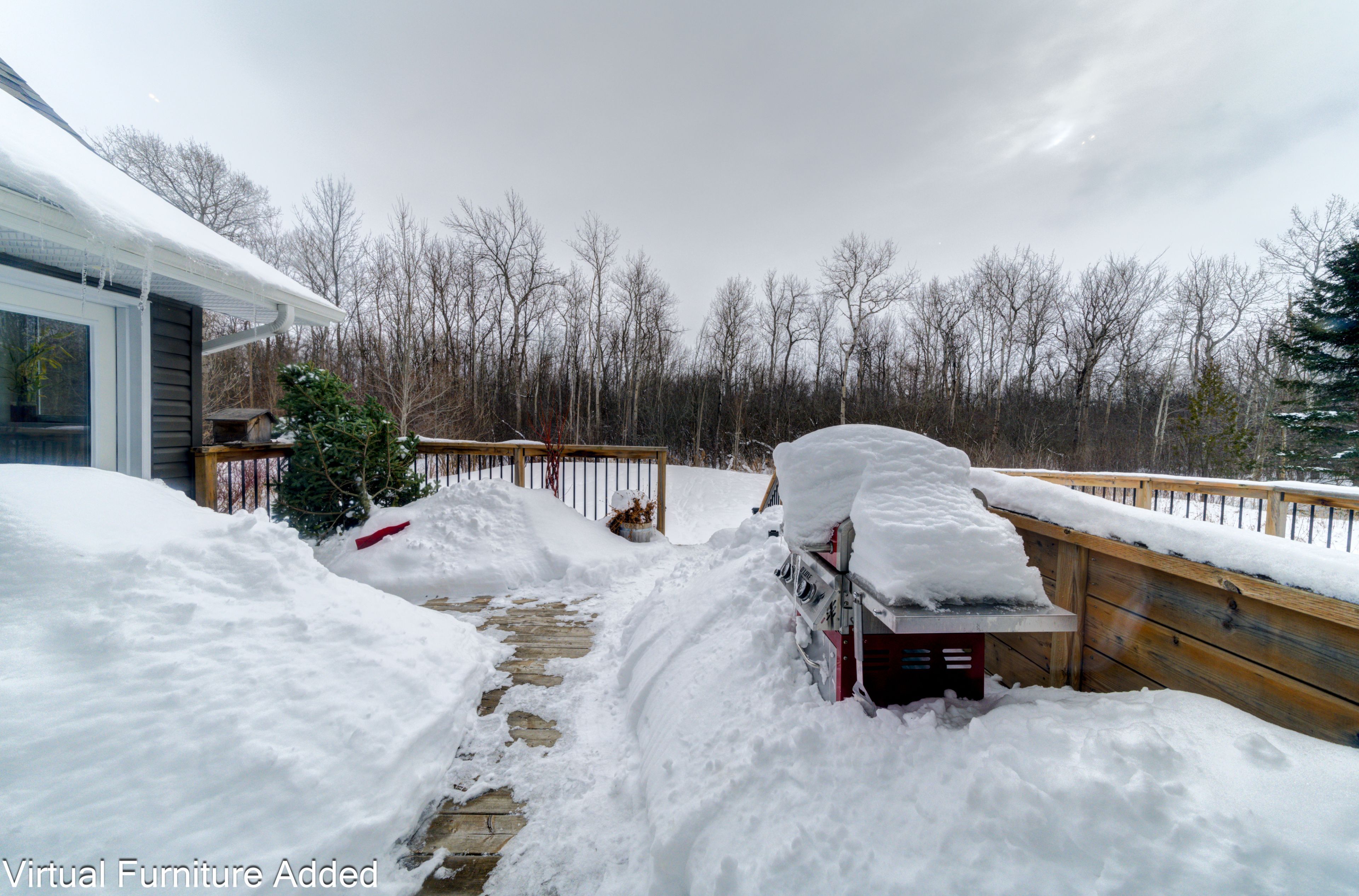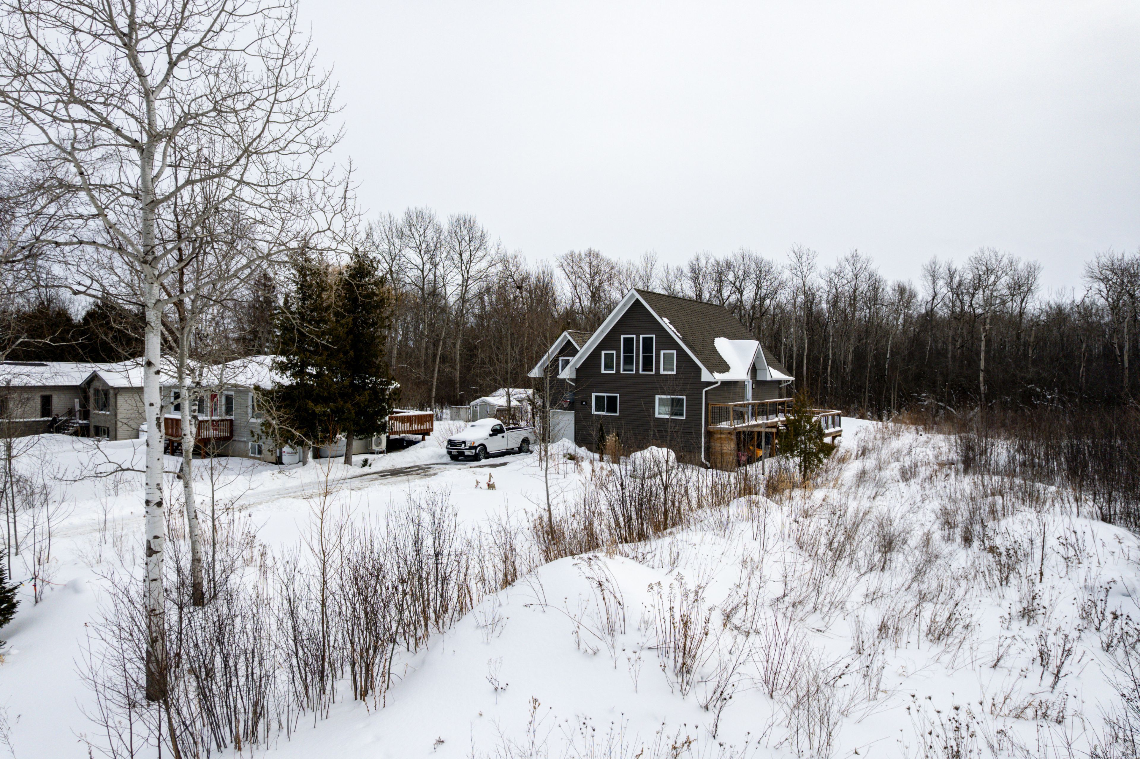 • Private lot backing onto a wooded area with a large wrap-around deck.