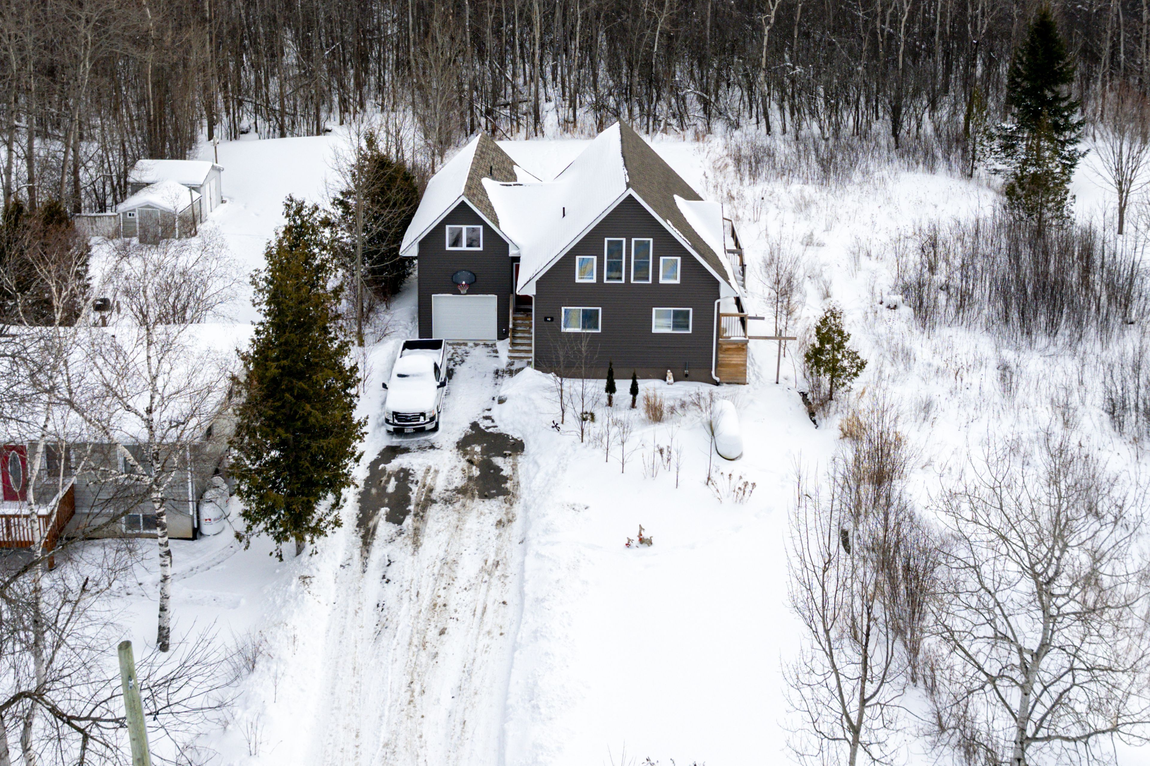 Located just a short drive from the historic downtown collingwood, a short walk to the lake and 20 minute drive to the ski hills. This 3 bedroom 2 bathroom home was built in 2019 with an addition added in 2021. Set on a large lot backing on to a wooded area gives you plenty of privacy and opportunity to enjoy the large wrap around deck. The long driveway leads to this spacious, light filled home. The main floor boasts a huge kitchen/dining area with soaring cathedral ceilings and large windows to enjoy all the sunlight . Two good sized bedrooms and 3 piece bathroom also on the main level. The loft area is a cozy bright family room. The primary bedroom is located in it's own private area separated by a long hallway, with bathroom and office space. This offers potential for airbnb provided a license is obtained from the town of collingwood. The lower level is finished with a recreation room and laundry room. The garage is insulated, drywalled and has an inside entry door.