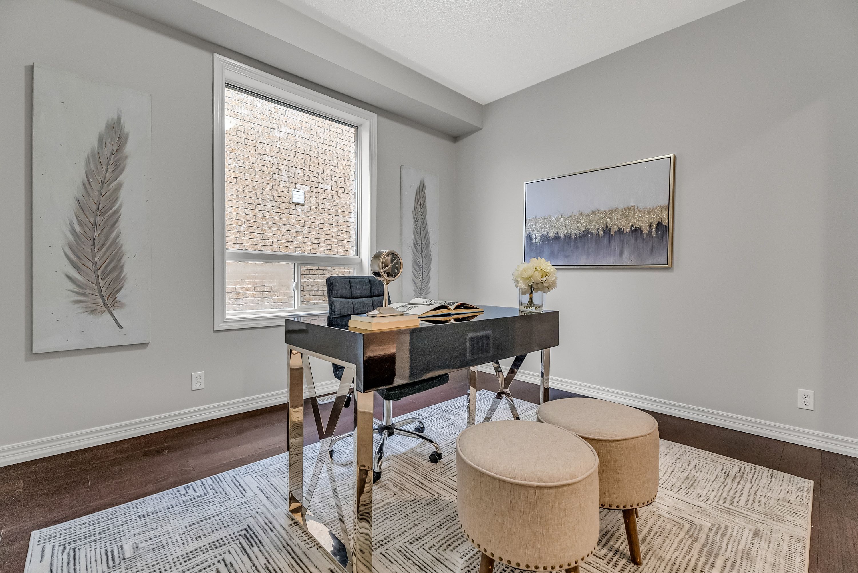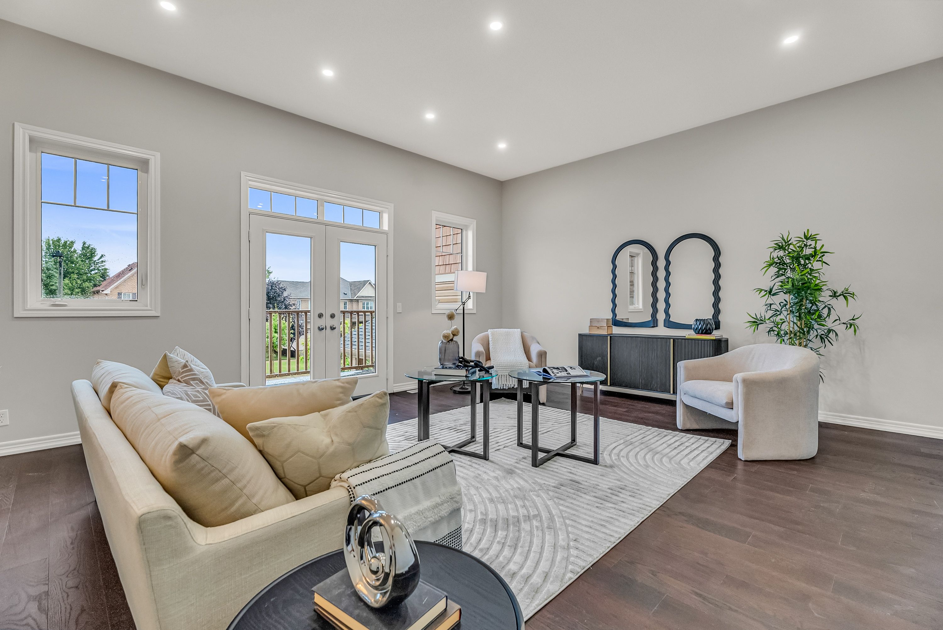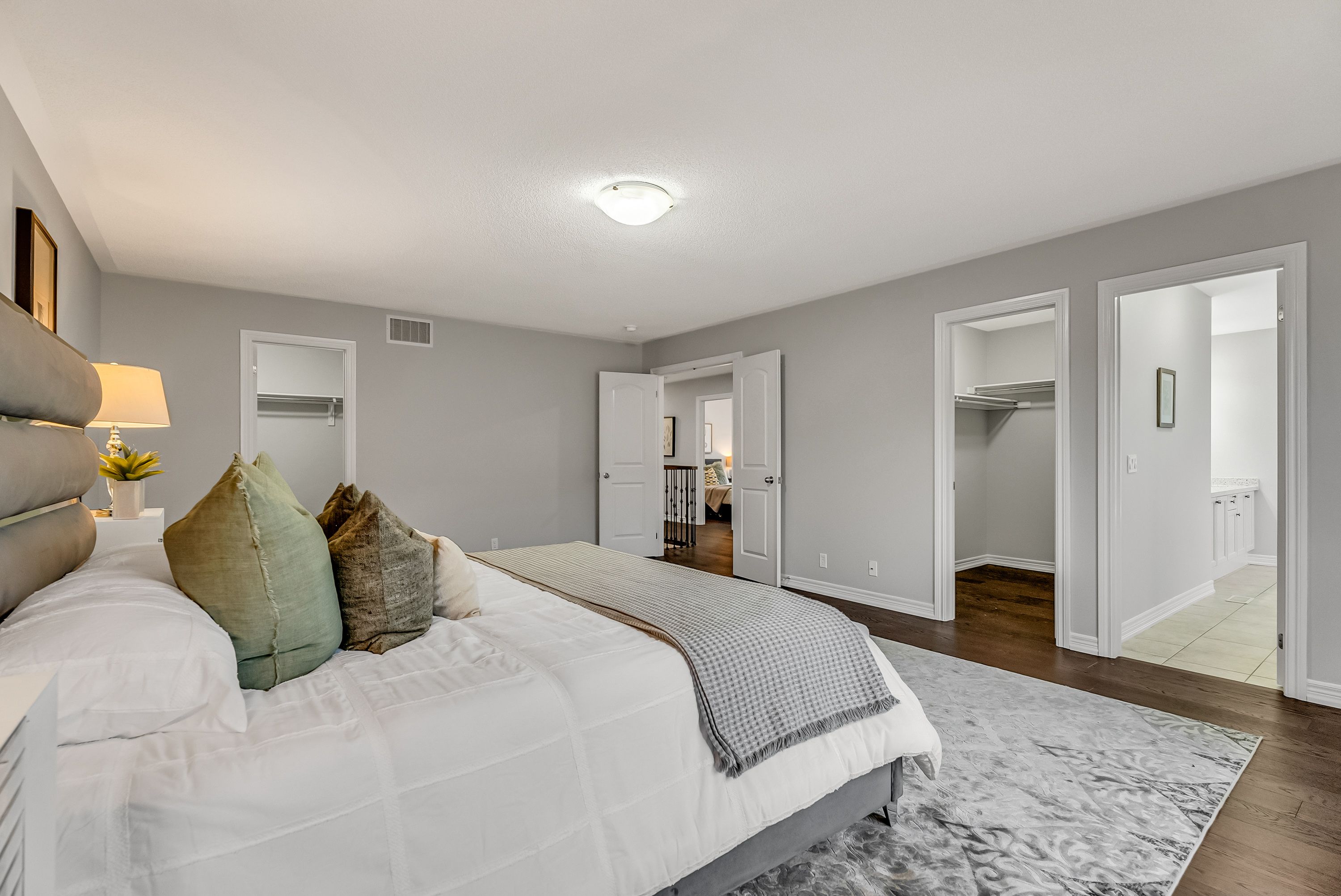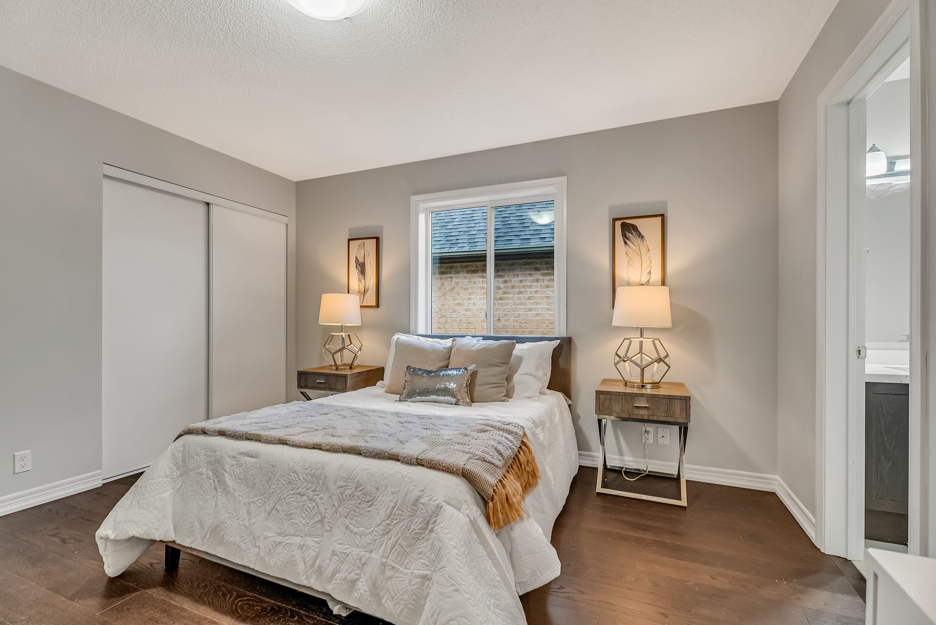 • Spacious bedroom with large windows for natural sunlight.