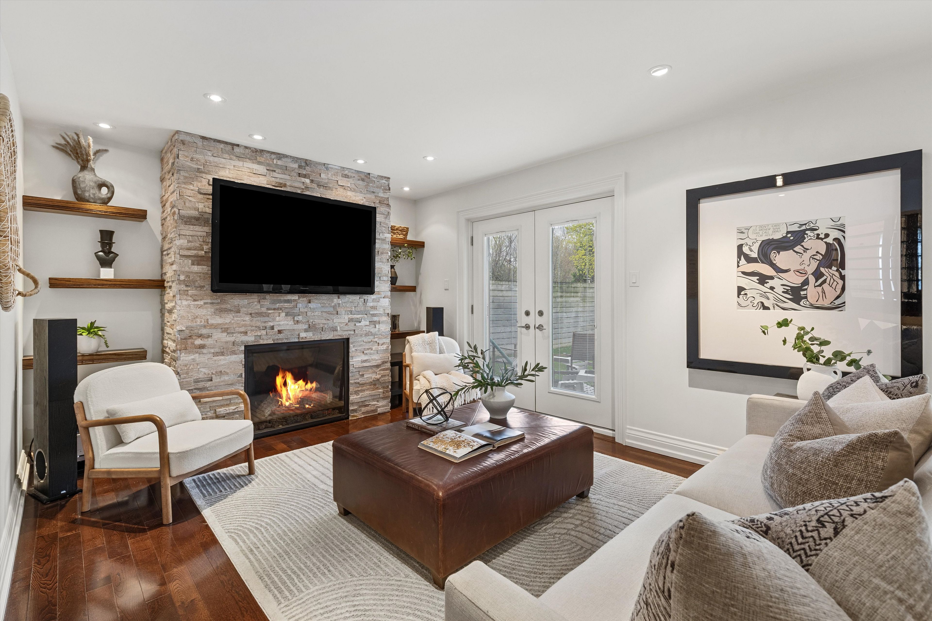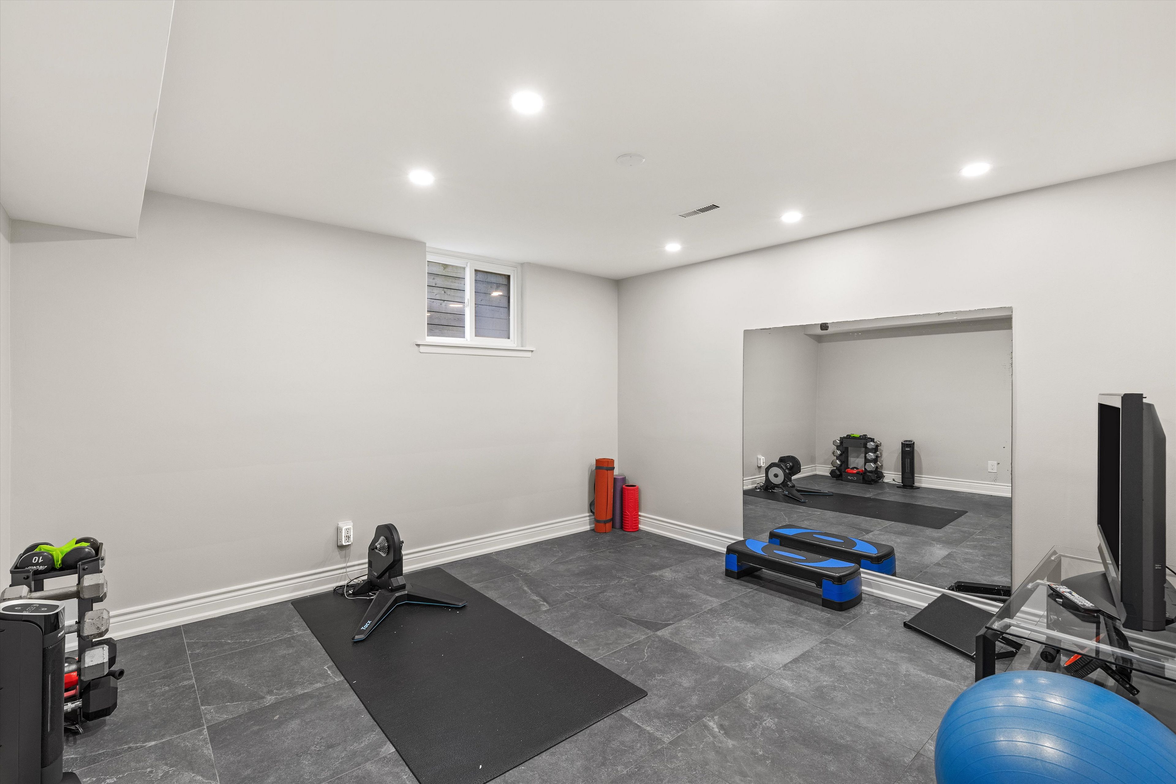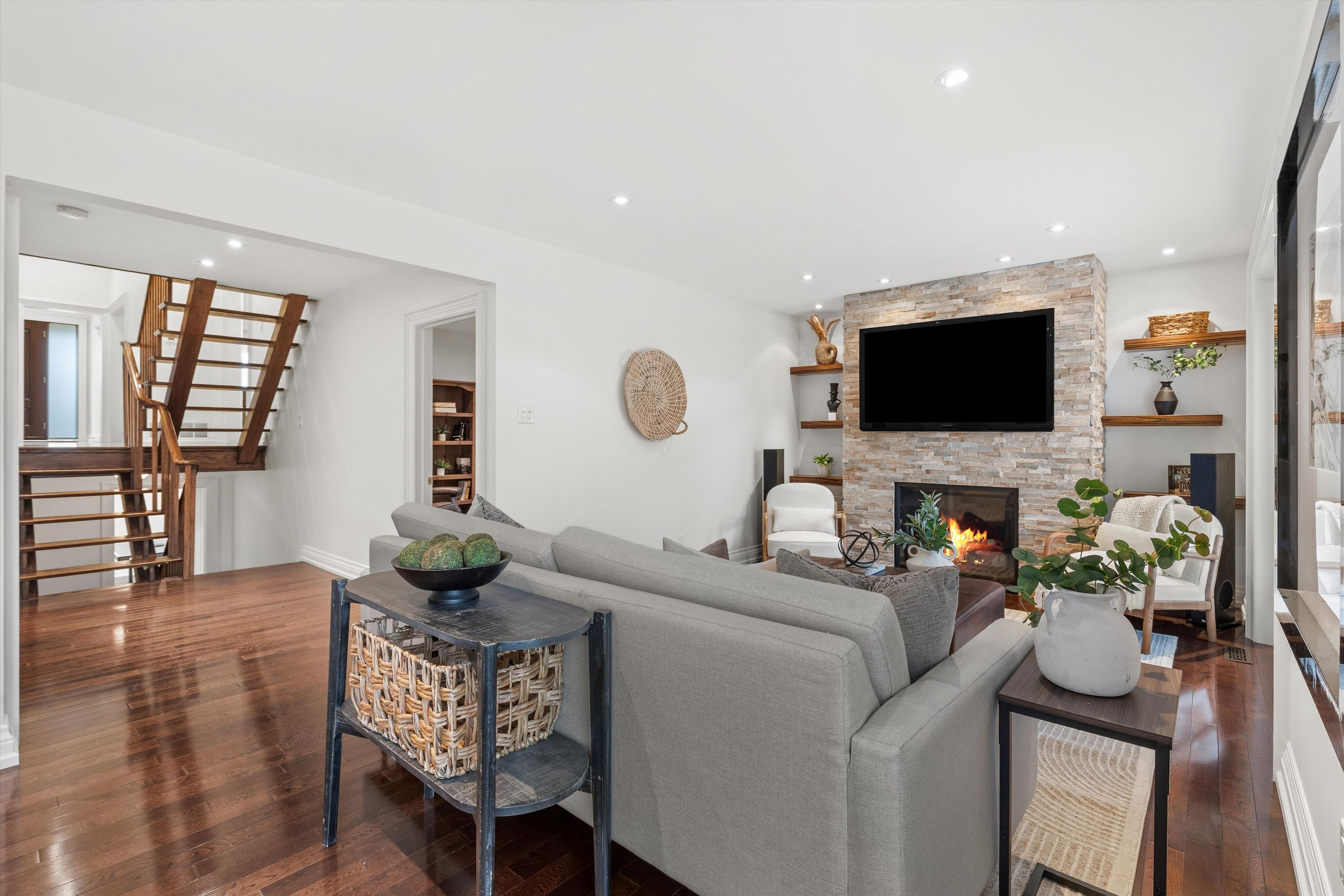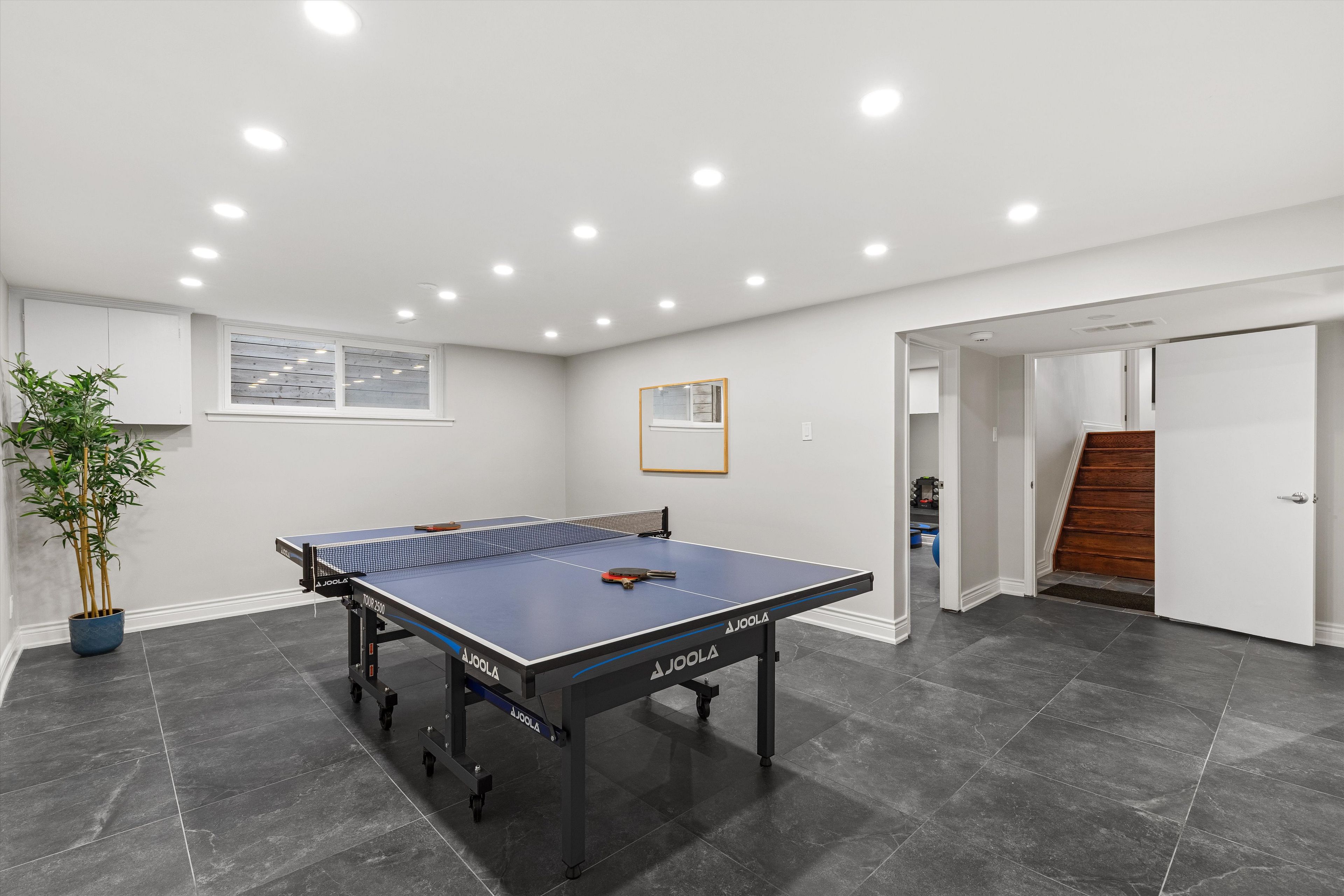 • Fully updated basement includes a kitchen, living area, and potential rental space.