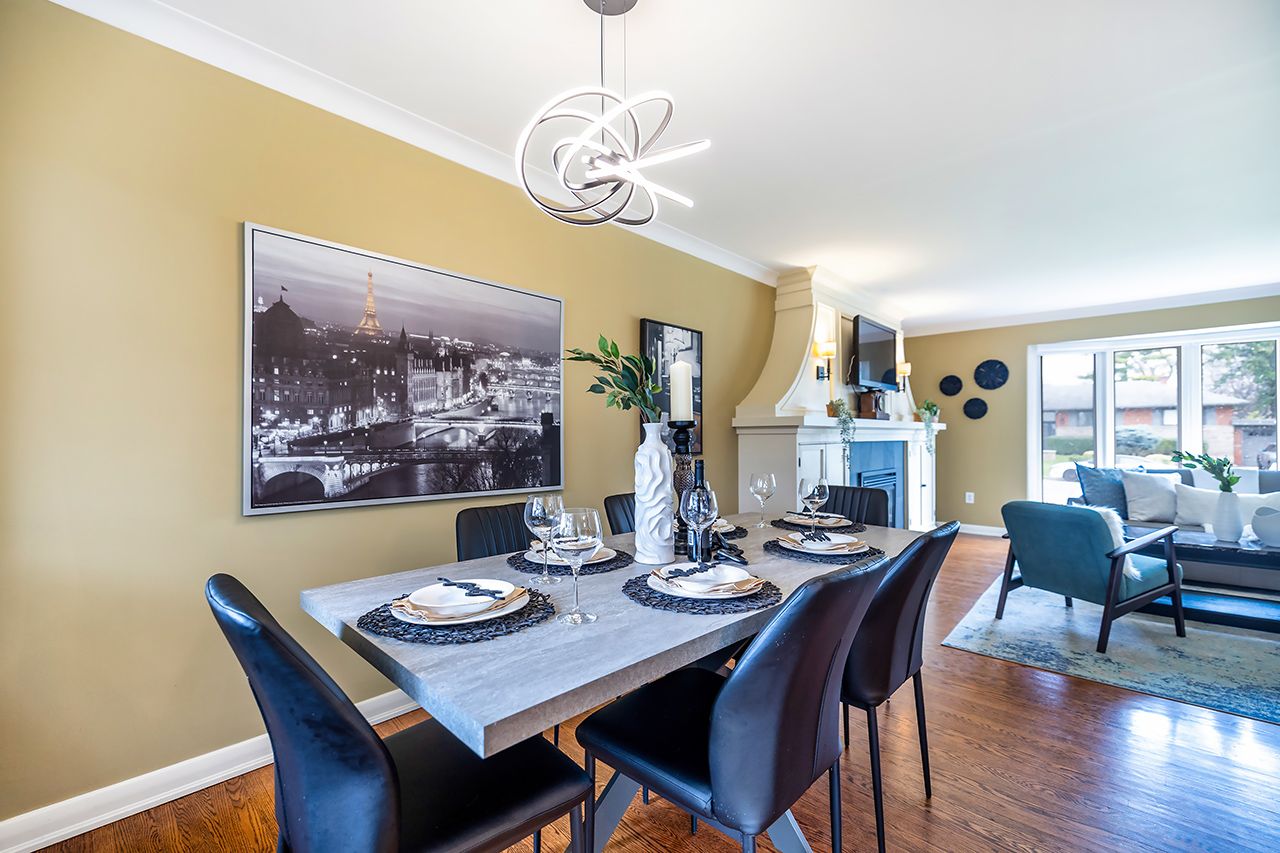 Stylish and thoughtfully upgraded 4-bedroom sidesplit set on a premium pie-shaped lot with a rare separate lower-level entrance. The bright open-concept main floor is anchored by a stunning living room featuring a beautiful gas fireplace framed by custom built-in cabinetry and a south-facing bow window that fills the space with natural light. The chef-inspired kitchen offers quartz countertops, a marble backsplash, stainless steel appliances, a gas stove, and a spacious island with a double sink and electricity-perfect for meal prep, hosting, and everyday convenience.. Enjoy an oversized backyard with a new fence, perfect for entertaining and outdoor living. Several major upgrades including south/east foundation waterproofing, improved insulation in the basement and attic, an electric tankless water heater (owned), upgraded front security. Door, new gutters with guards, high-efficiency natural gas heat pump and ac, and a new washer and dryer. The lower-level rec room features above-grade windows and a cozy wood-burning fireplace. A move-in-ready opportunity in the beautiful neighbourhood of victoria village!