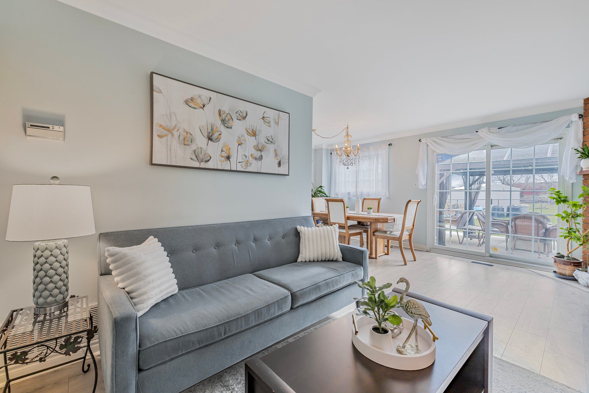 • Thoughtfully renovated kitchen flowing into a sun-filled living and dining area.