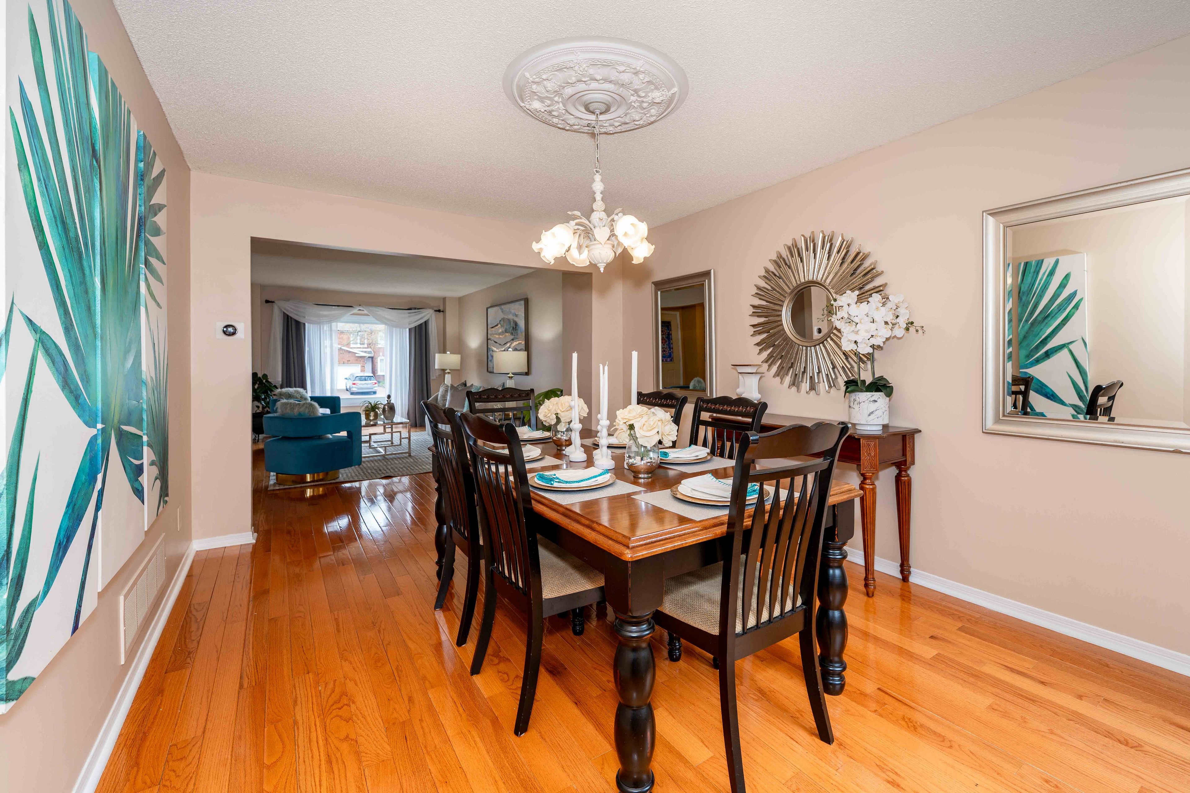 40 dartmoor dr offers the kind of space, setting and location that supports real everyday living. Set in an established morningside/seven oaks pocket, this detached 2-storey home delivers 2,591sf above grade, with generous rooms, a functional layout and an irregular lot that opens up at the rear. The backyard becomes a true extension of the home, with room to gather, garden, play, host summer dinners on the deck or enjoy a quiet coffee. Inside, a welcoming front entry with a large coat closet brings you into a home designed for family rhythm and comfortable entertaining. The living and dining areas offer hardwood flooring, a bow window and an easy connection for larger meals, holidays and everyday conversation. The kitchen features stainless steel appliances, quartz counters and backsplash, while the breakfast area is a daily highlight: a panoramic view of the backyard and walks out to the deck for seamless indoor-outdoor living. The family room adds a relaxed main-floor retreat with gas fireplace. Upstairs, the oversized primary suite feels quiet and private, with multiple large windows overlooking the yard, a walk-in closet and 5-piece ensuite with double vanity, built-in tub and separate shower. Three additional bedrooms, hardwood floors, closets and a second 5-piece bath with double vanity complete the upper level. The unfinished basement offers workbench space, storage and future potential, giving the next owner flexibility to shape the lower level over time. A standout location just 800m to utsc and centennial college, making daily life easier for students, faculty, staff or families who want access to education and amenities. Convenient access to hwy 401 keeps commuting practical, while nearby parks, schools, transit, toronto pan am sports centre, guildwood go, groceries and scarborough town centre add everyday ease without giving up the feel of an established residential street.
