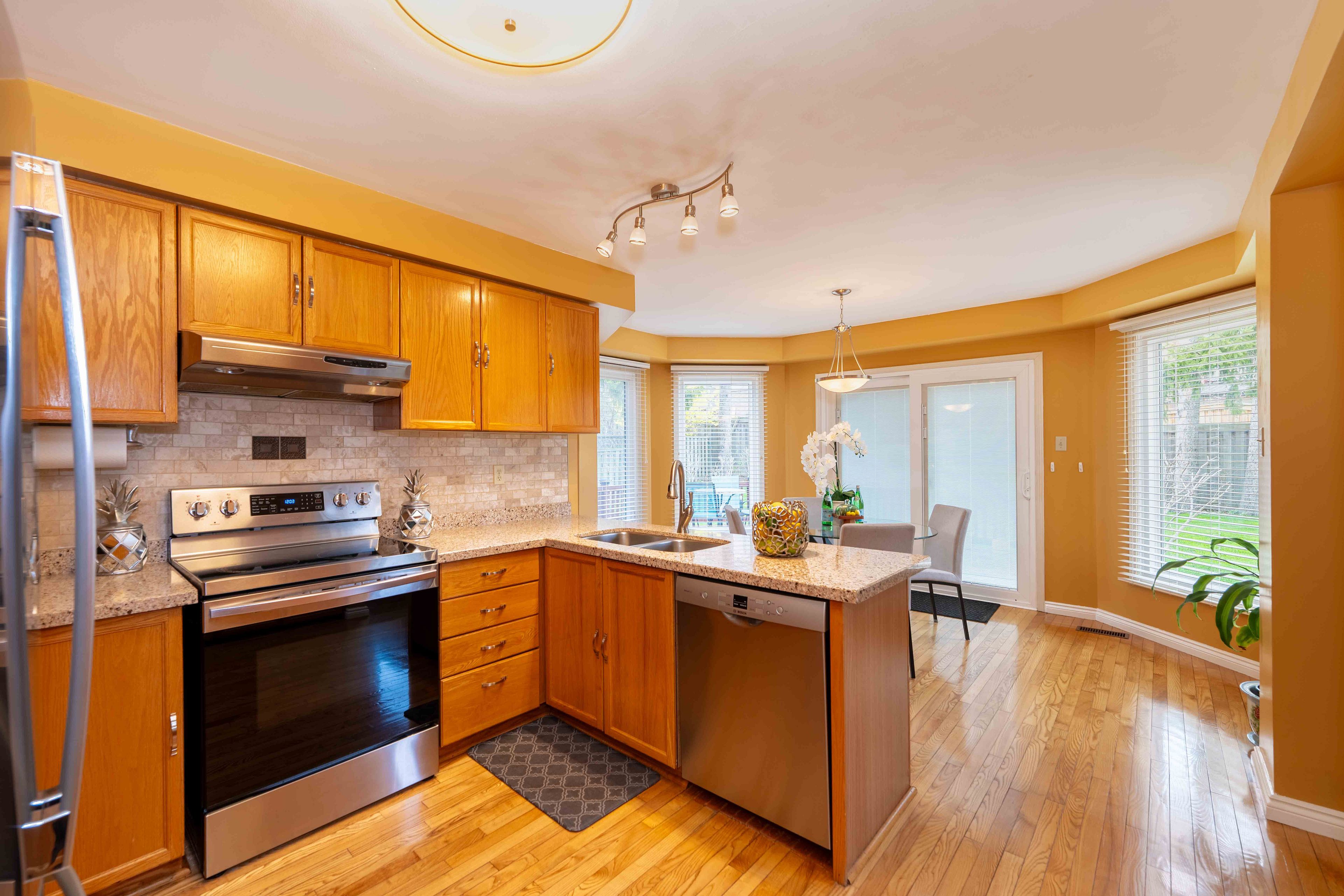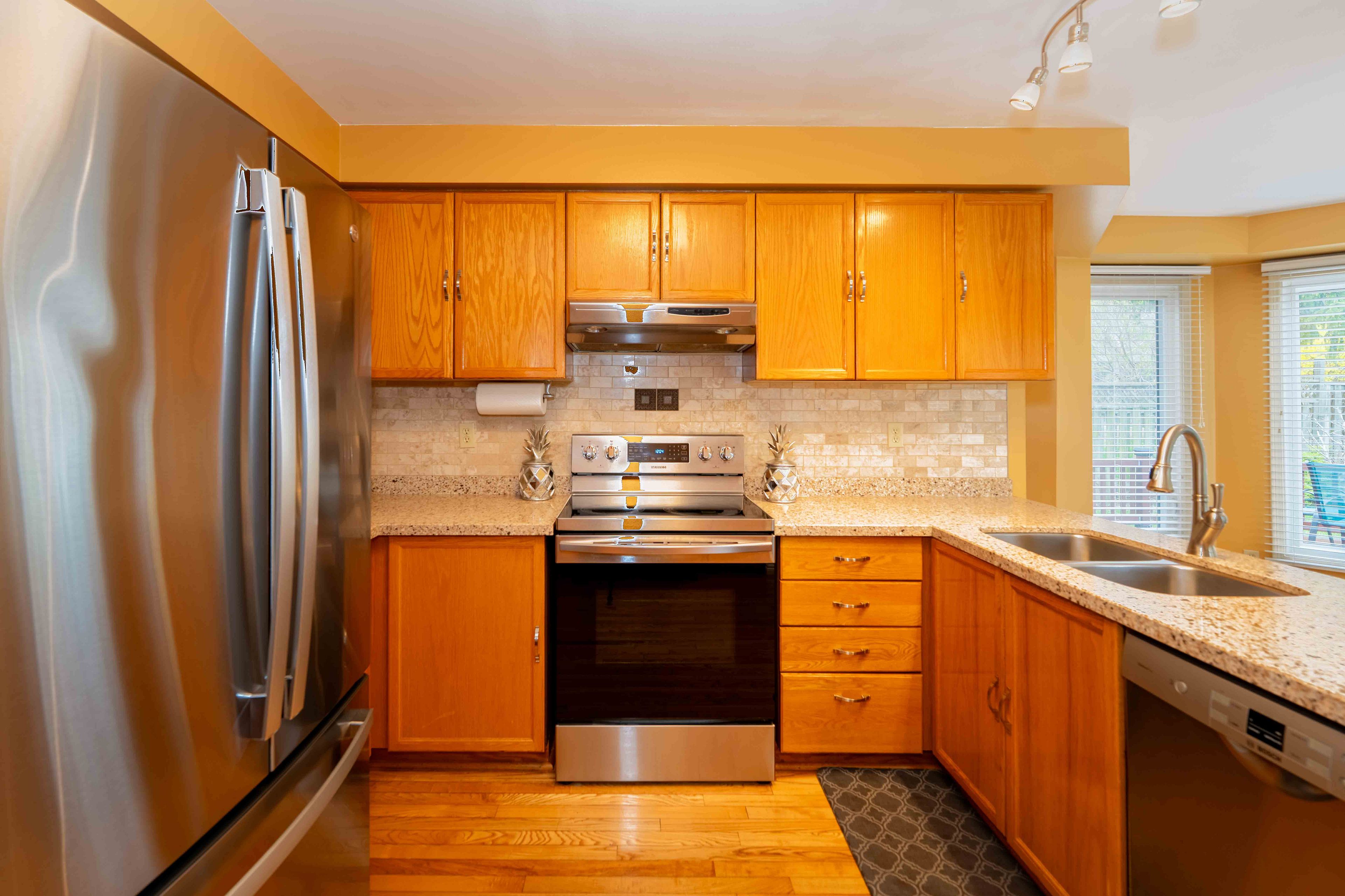 • Bright kitchen with stainless steel appliances and views of the yard.