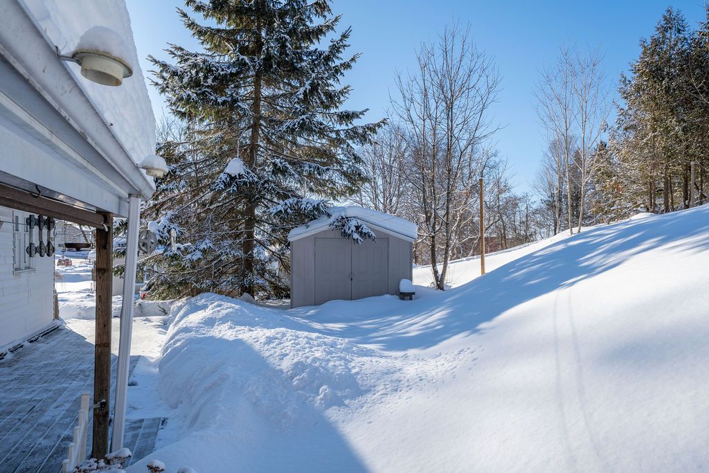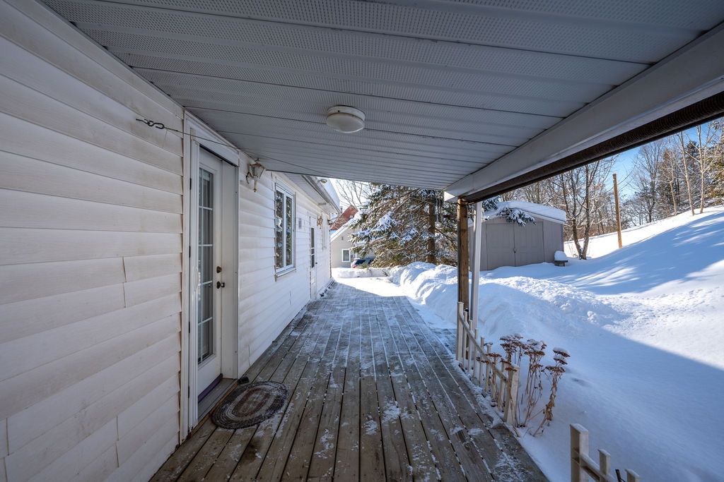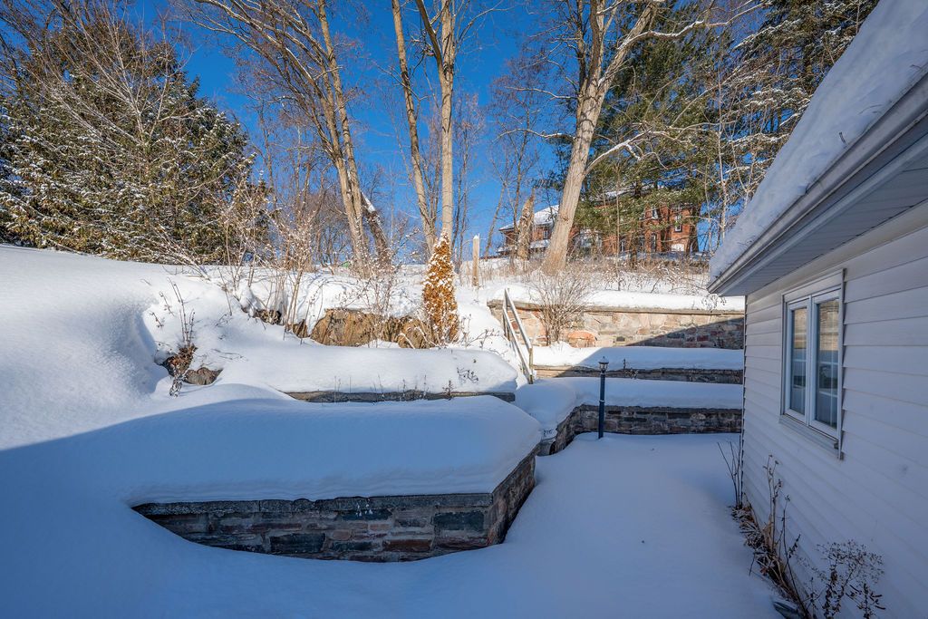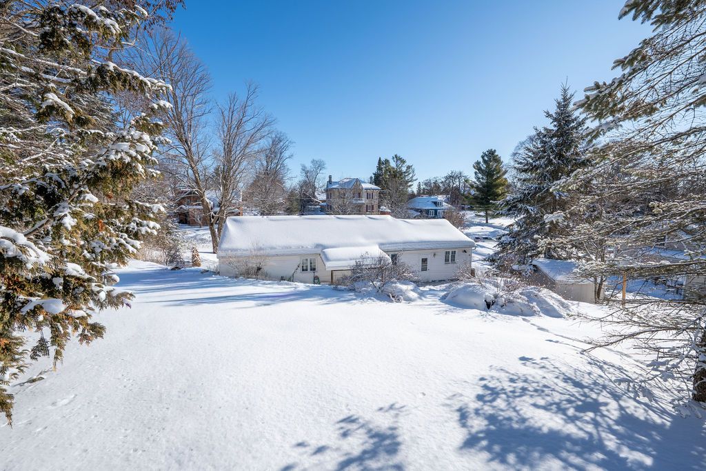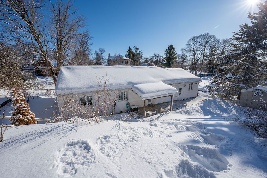 Set on a beautiful terraced lot surrounded by charming historic homes in the heart of centre hastings, this classic ranch bungalow offers warmth, character, and comfortable everyday living. The inviting main floor features a bright living room with hardwood floors, anchored by a cozy fireplace, perfect for relaxing evenings or gathering with family and friends. The garden door in the dining room opens to a covered patio deck and terraced stone landscaping that leads to an elevated backyard framed by mature trees - a peaceful setting to unwind and enjoy views over the village. Three well-sized bedrooms and convenient main-floor laundry complete the functional layout. A full unfinished basement provides excellent potential for future living space, a workshop, or generous storage. Located in the welcoming village of madoc, this home is within walking distance to parks, shops, cafés, and local amenities. Outdoor recreation is close by, including the heritage trail, west highland golf course, o'hara mill homestead and conservation area, and nearby moira lake for boating and paddling. Whether you're starting out, downsizing, or planning your retirement, this property offers a wonderful balance of small-town charm and convenience, just south of highway 7 at highway 62, approximately 30 minutes to belleville and about an hour to peterborough.