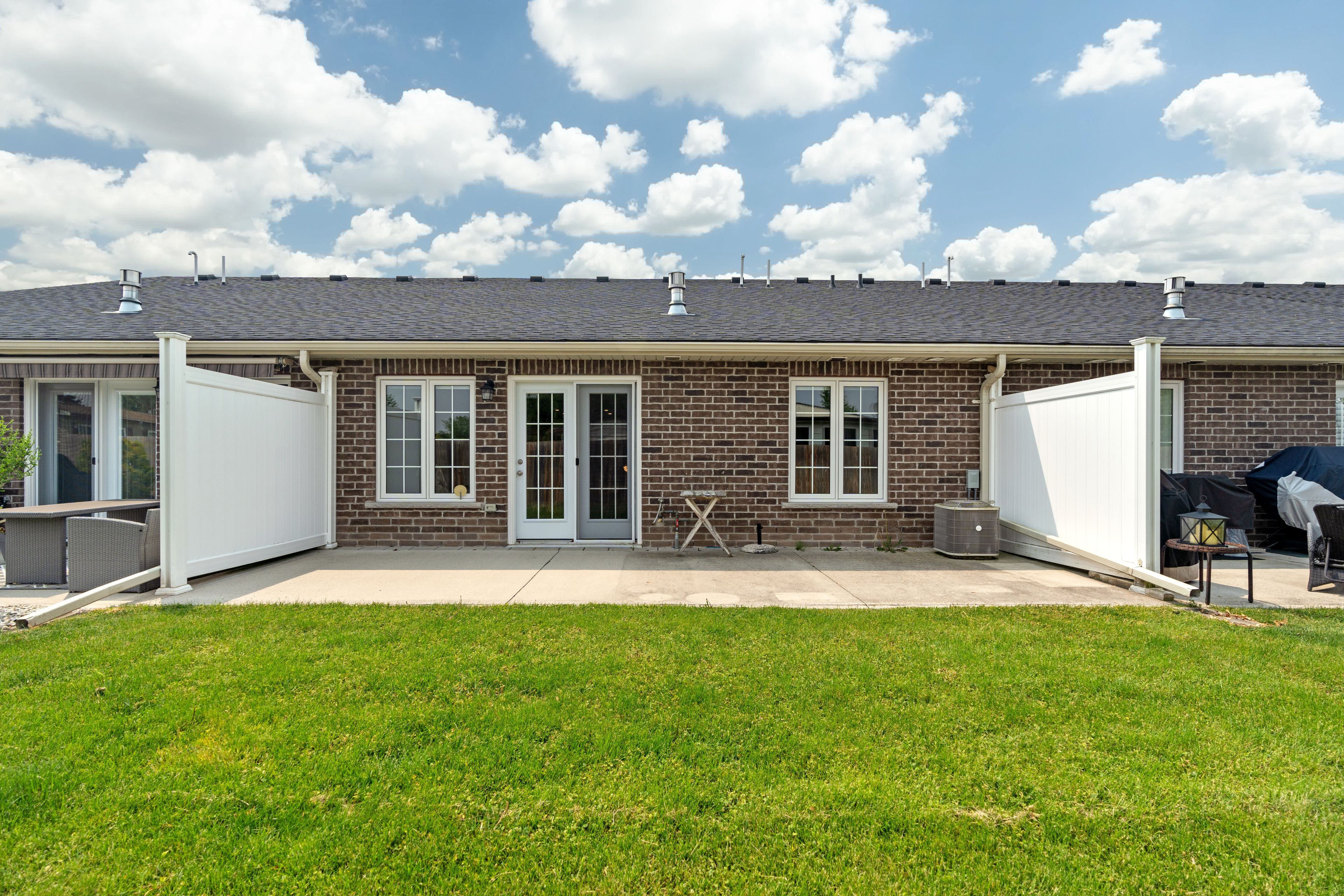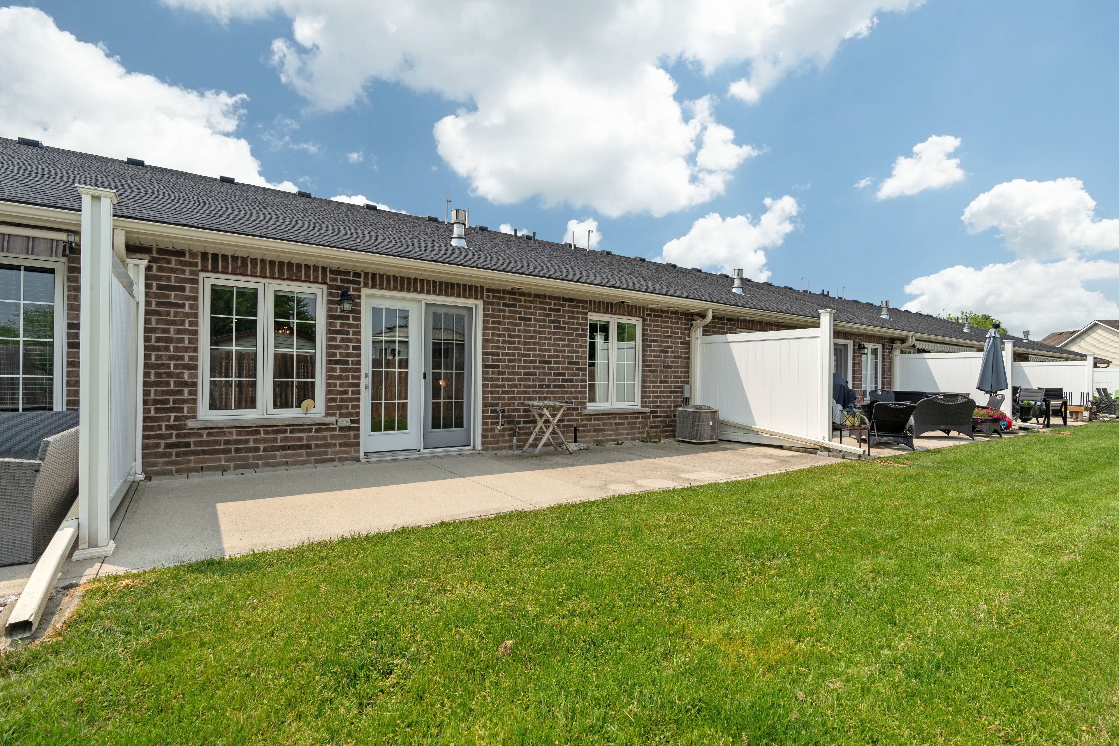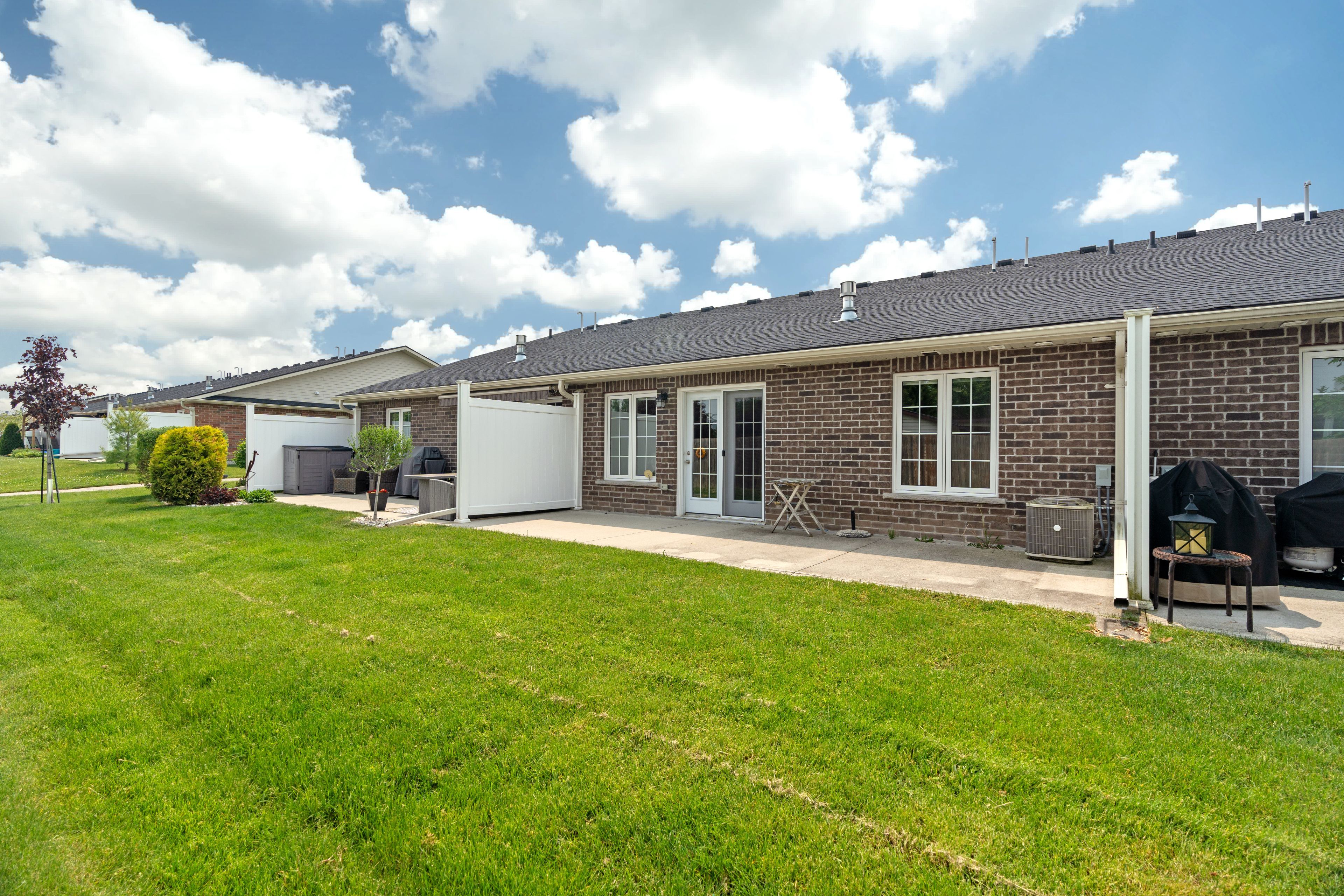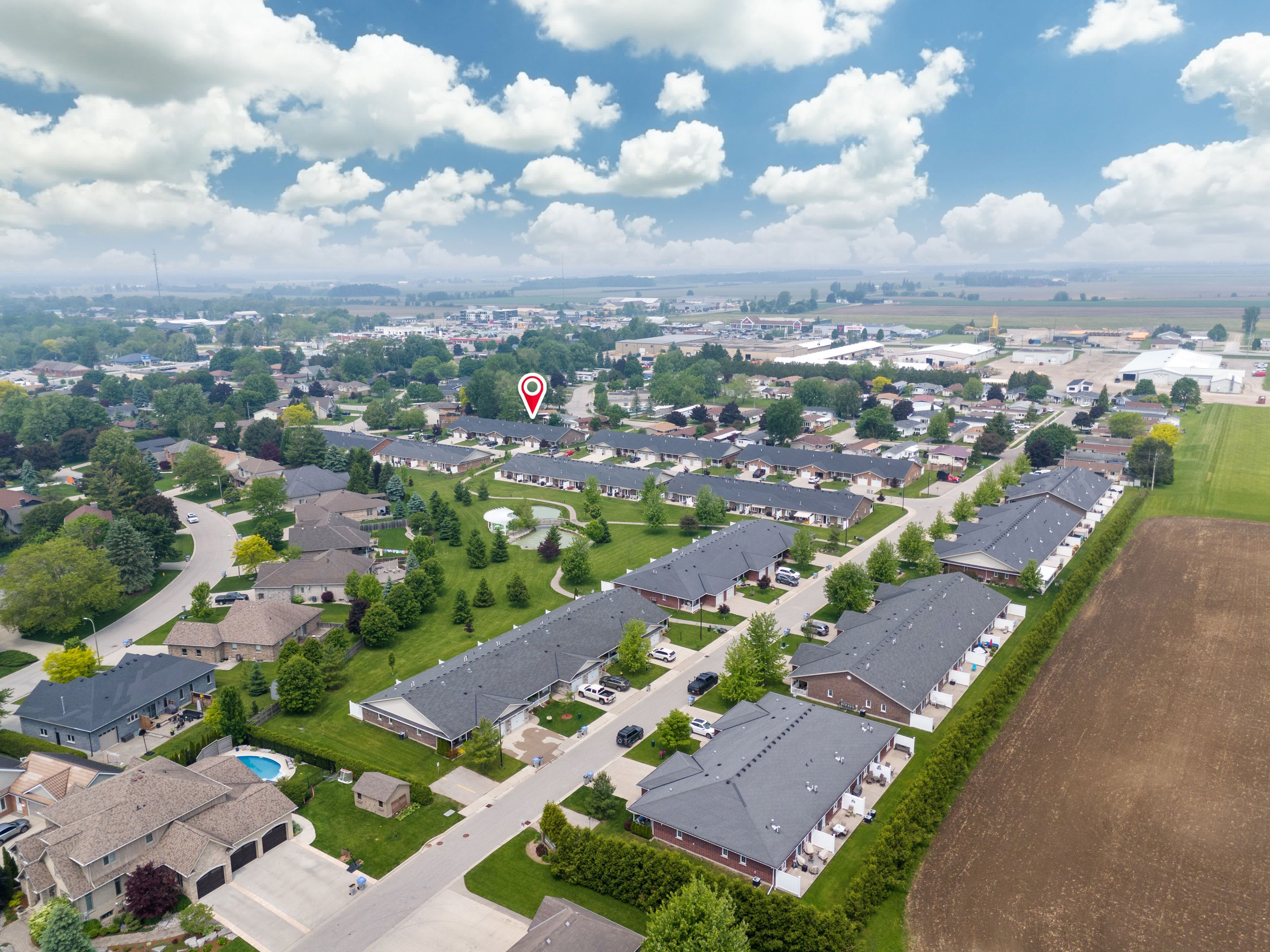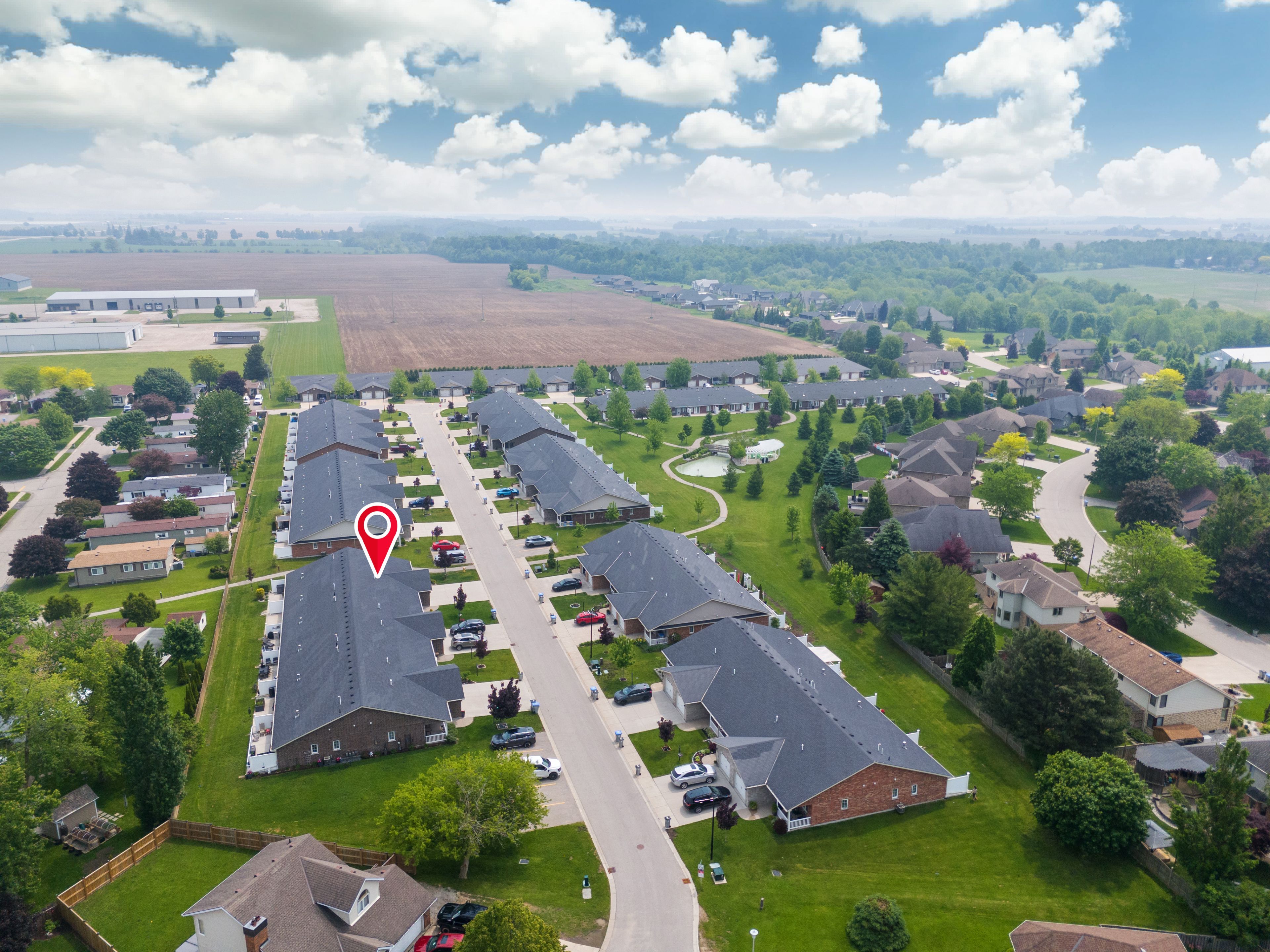 Discover easy, worry-free living in this well-maintained one-floor townhouse, ideal for downsizing or enjoying your retirement years. Thoughtfully designed for comfort and convenience, this home features an open-concept layout that blends the kitchen, dining, and living areas into one cohesive and welcoming space. The kitchen offers bright white cabinetry, ample counter space, and a large island with bar seating perfect for casual dining or entertaining guests. The spacious living room is highlighted by a soaring cathedral ceiling and large windows that fill the space with natural light. The primary suite includes a walk-in closet with built-in shelving and a private ensuite bath, offering everyday comfort and ease. A second bedroom provides flexibility for guests, a home office, or additional living space. Step outside to a private concrete patio, with direct access to scenic walking trails and the community's clubhouse. Located in riverview meadows, this home is part of a vibrant adult lifestyle community offering exceptional amenities. Residents enjoy access to a community gazebo, picturesque riverside trails, and a well-equipped clubhouse featuring a fitness room, billiards, shuffleboard, darts, media library, and a large gathering space. With nearby golf, shopping, and hospital services, this is relaxed living at its best. Land lease and property taxes are $995. 17 monthly.