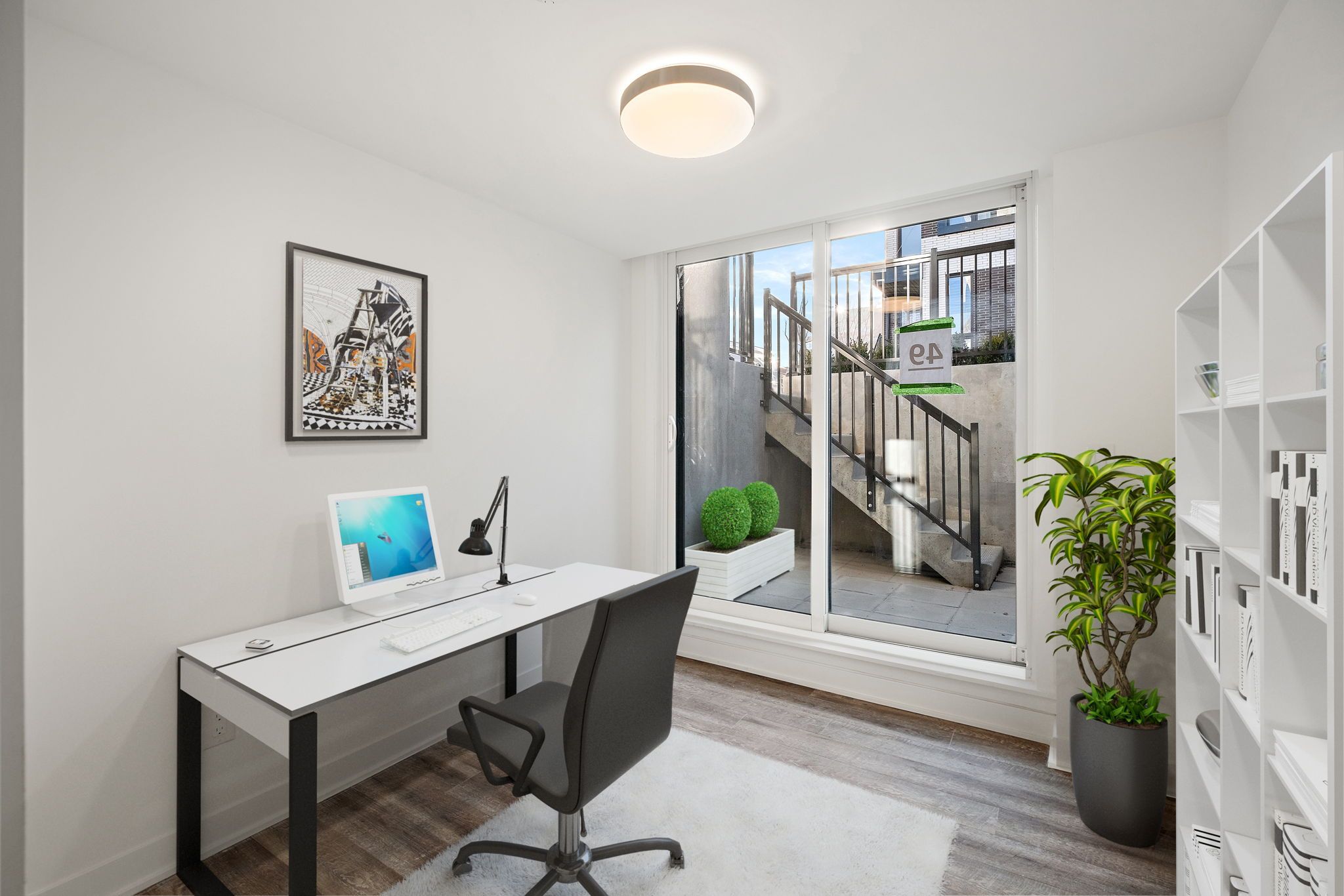 • Private patio and access to various amenities like a fitness centre and lounge.