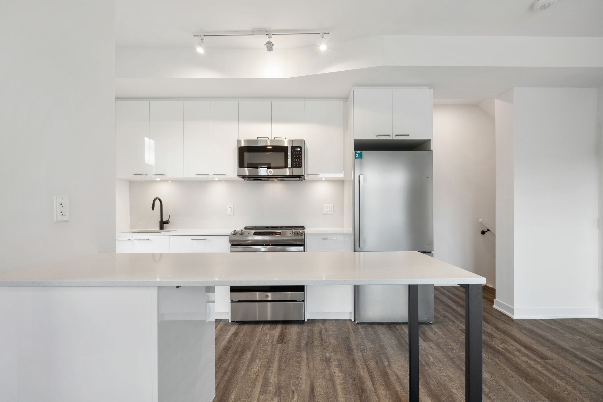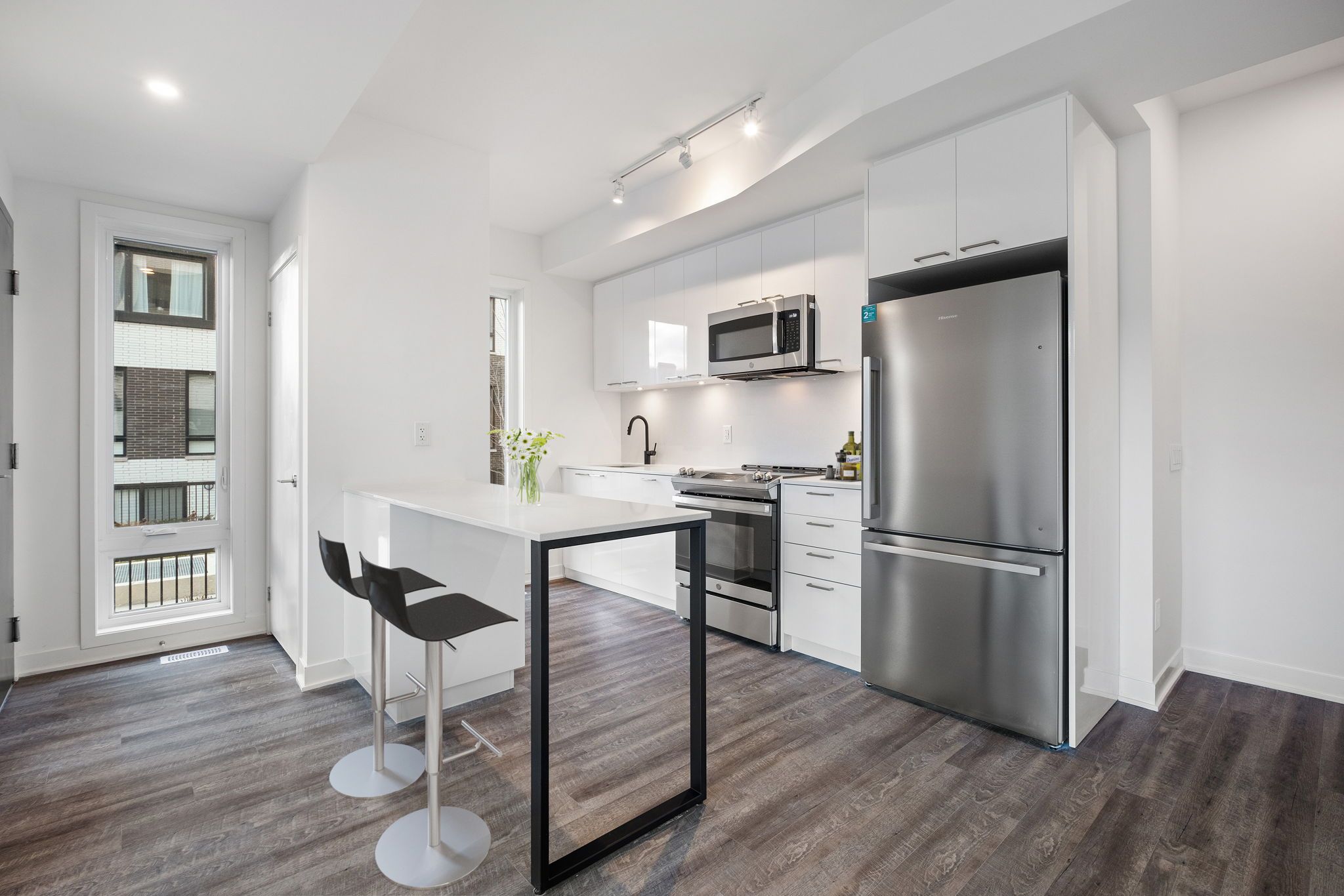 Welcome to this bright modern end unit townhouse, tucked away on a quiet, newly landscaped street. The open-concept living and dining area is filled with natural light from windows on two sides, overlooking a modern galley-style kitchen with new appliances and 9' ceilings. Featuring three spacious bedrooms with plenty of closet space, private 116 sqft. South-facing patio accessed from outside and inside. Includes access to a fitness centre, lounge, urban garage/workshop, pet spa, and a landscaped courtyard with bbq. Minutes to the stockyards, junction, corso italia, restaurants, cafe's, groceries, parks and ttc routes to st. Clair w station, dundas west subway, bloor go and the up express. This home includes a premium parking spot located by the elevator, complete with an ev charger, plus a tandem 11' x 8' storage room.