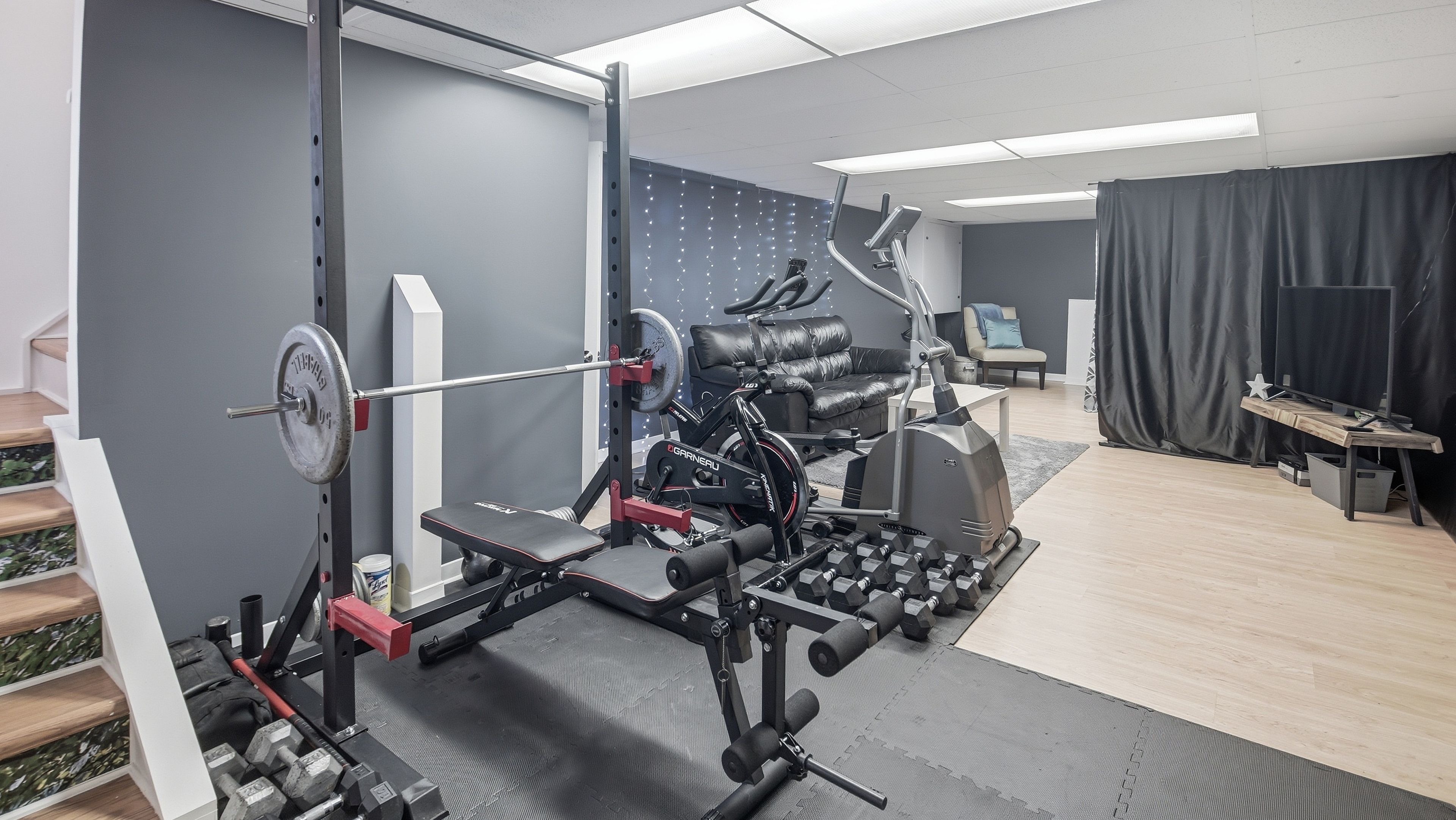 • Fully finished basement adaptable for gym, family room, or storage.