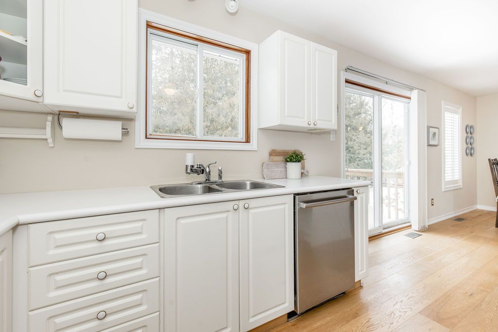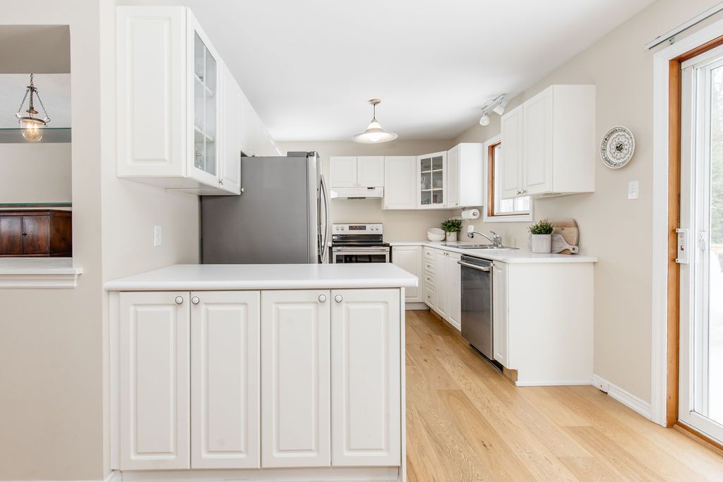 Welcome to this beautifully maintained raised bungalow set on a generous 75 x 145 ft lot in a sought-after location just steps from the golf course. This 3+1 bedroom, 2 bathroom home has been exceptionally cared for and offers a functional layout ideal for families, retirees, or anyone looking for comfortable main floor living with space to grow. The main level features vaulted ceilings and oversized windows that fill the home with natural light. Hardwood flooring flows through the kitchen and dining area, while the spacious primary bedroom offers large closets and a private ensuite with a walk-in glass shower. The bright kitchen includes newer stainless steel appliances and convenient access to the large rear deck, perfect for entertaining or enjoying quiet evenings outdoors. The lower level is partially finished with pot lights, an additional bedroom, and a bathroom rough-in already in place. The large unfinished area offers excellent potential for additional living space depending on your needs. Major updates have already been completed, including the roof (2021), furnace and a/c (2018), windows (2012), newer stainless steel fridge and stove, 200 amp electrical service, and a large rear deck. A move-in ready home in a fantastic location with the flexibility to grow and enjoy for years to come.