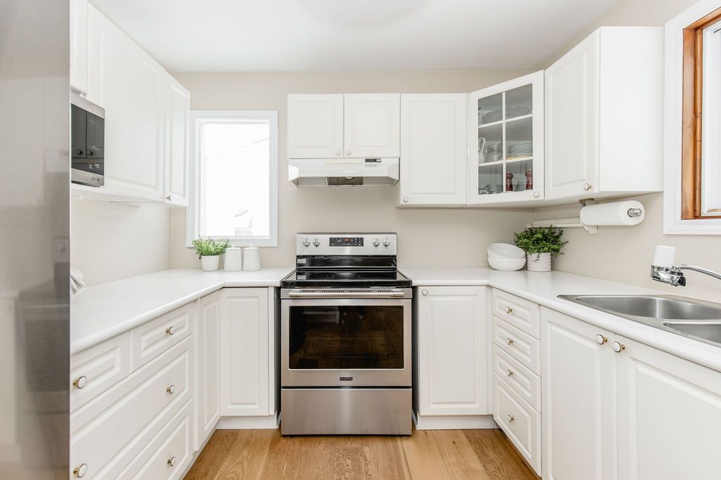 • Bright kitchen with newer stainless steel appliances and access to a large deck.