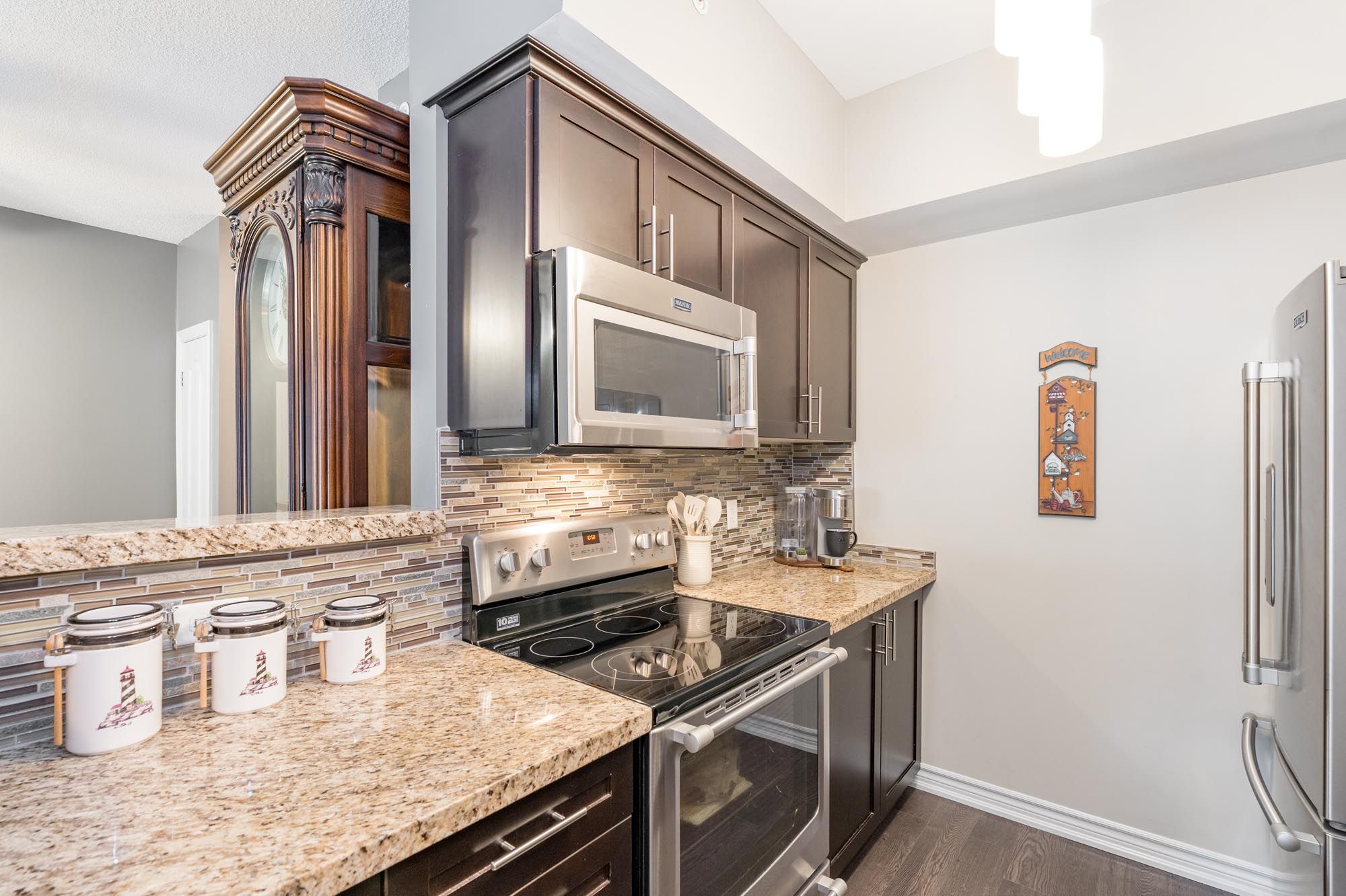 • Modern kitchen with granite countertops and high-end Maytag appliances.