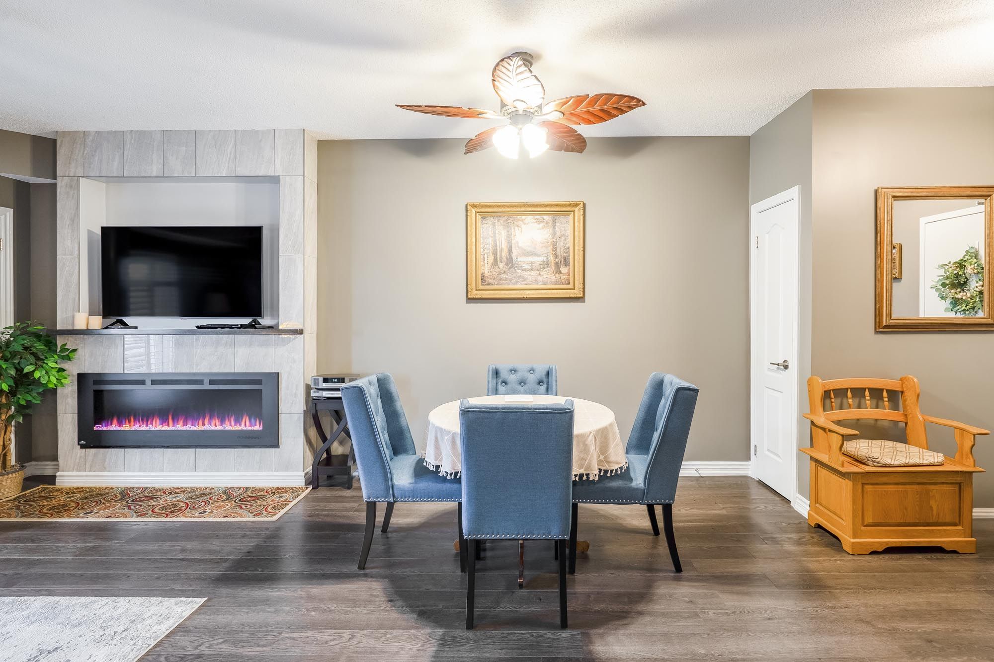 Top 5 reasons you will love this condo: 1) experience effortless everyday living in this beautifully spacious 1,110 square foot condo, featuring two generously sized bedrooms and two full bathrooms, and the ability to accommodate a quick closing, tailored for those who value space, simplicity, and seamless flow 2) beautifully finished with granite countertops in the kitchen and bathrooms, high-end maytag appliances, a whirlpool water softener, an energy star-certified ecobee smart thermostat, designer palm leaf ceiling fans, california shutters, stunning wood accent walls, a gorgeous tiled entertainment wall with tv wall mount and a cozy napoleon 60" electric fireplace with a remote in the living room 3) the open-concept layout includes a modern kitchen and spacious bedrooms, including a primary suite with its own ensuite bathroom 4) enjoy outdoor living on the large private balcony in a pet-friendly building with a gas furnace, central air conditioning, indoor parking, and a personal storage locker 5) conveniently located close to trails, bear creek eco park, schools, shopping, restaurants, community centres and seniors centres, highway 400 access, barrie's downtown core and beaches, and features an outdoor gym area, playground, patio pergola with seating and plenty of visitor parking for guests. 1,110 above grade sq. Ft.