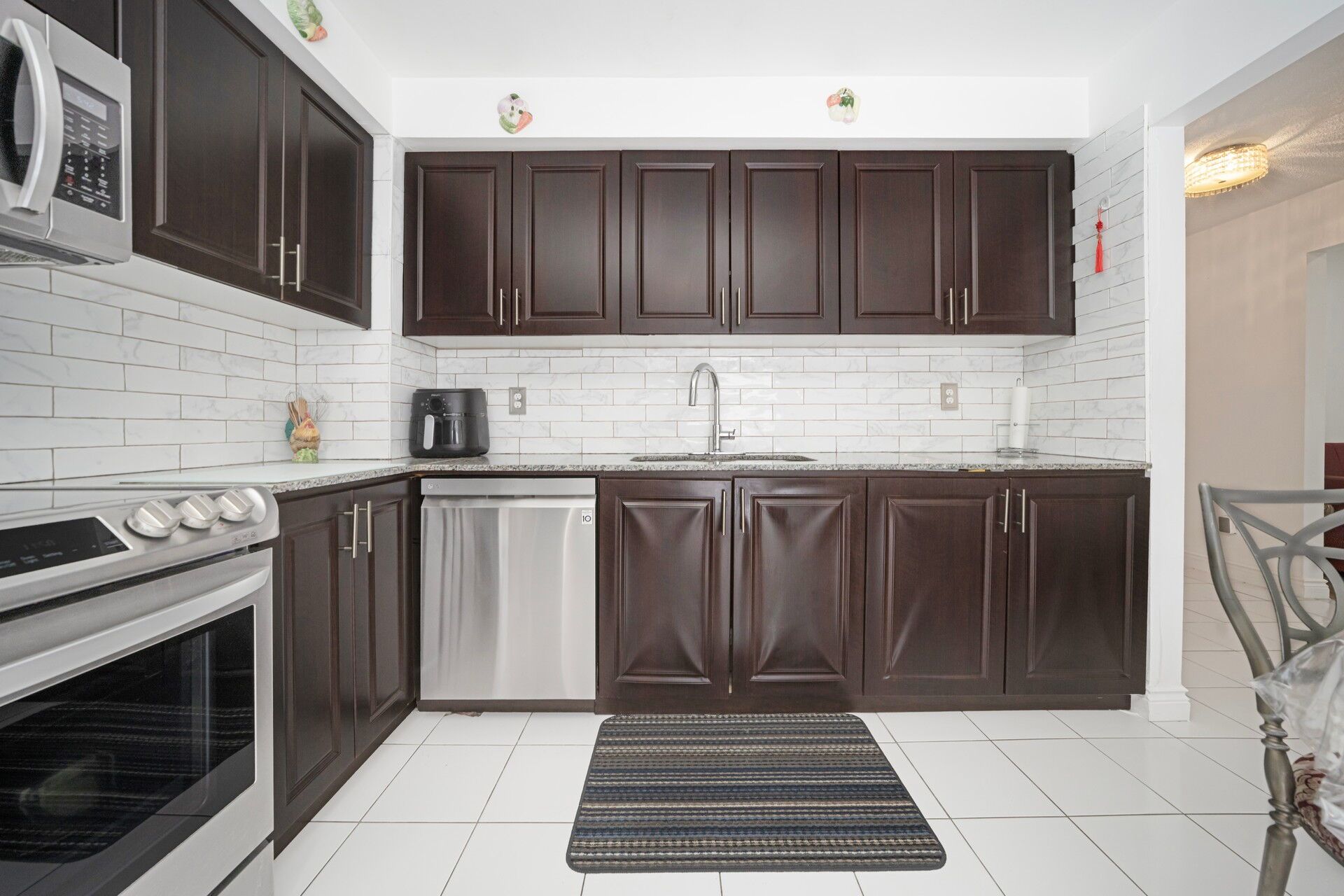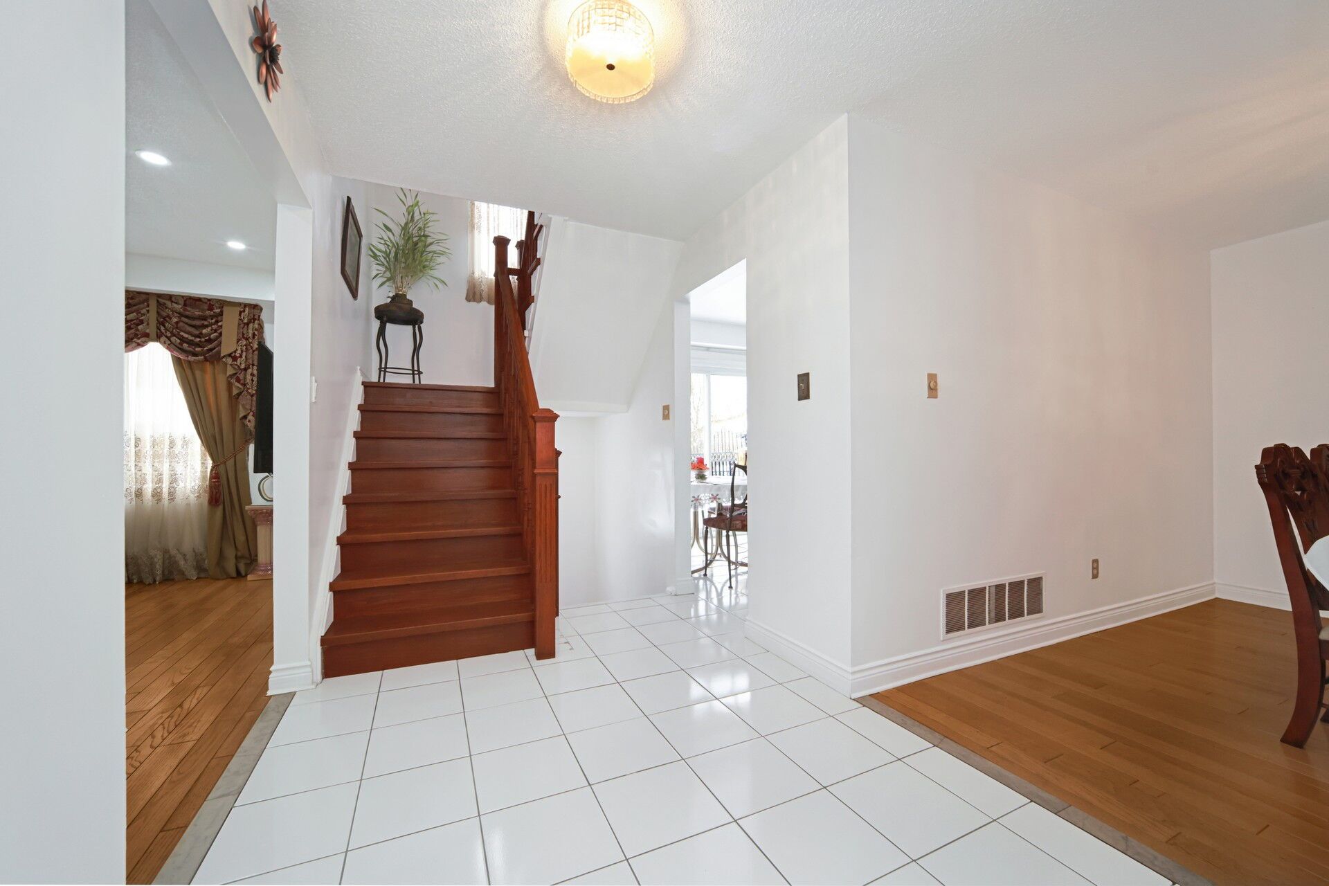Beautifully maintained family home - move-in ready! Welcome to this well-kept and spacious 1,350 sq. Ft. Home, perfect for families, first-time buyers, or investors. Solid s-800 doors throughout, and a sliding glass walk-out from the kitchen to a private south-facing deck with no homes behind-offering privacy and plenty of natural sunlight. Inside, you'll find " light oak hardwood floors in the living and dining areas, along with ceramic flooring in the kitchen and foyer for durability and easy maintenance. Kitchen comes with granite countertops and stainless steel appliances and with the privilege to walk out to a large backyard to dine outside and for tons of natural light. Large window in the living room. A separate dining room can also be converted into another sitting room or as a family room. Upstairs offers 3 family size bedrooms with one full 3 pieces and one 2 pieces washroom. Every room has its own mirror closet and large windows. The home also offers direct access from the house to the garage, making everyday living convenient. The exterior is equally impressive, featuring an extended interlock brick driveway and front patio, a large storage shed, and a spacious backyard -perfect for outdoor enjoyment and family gatherings. Additional highlights include central air conditioning, a high-efficiency furnace, and an automatic garage door opener. Huge basement with an open concept includes a full 4 piece washroom and separate storage room, providing extra space to keep your home organized.