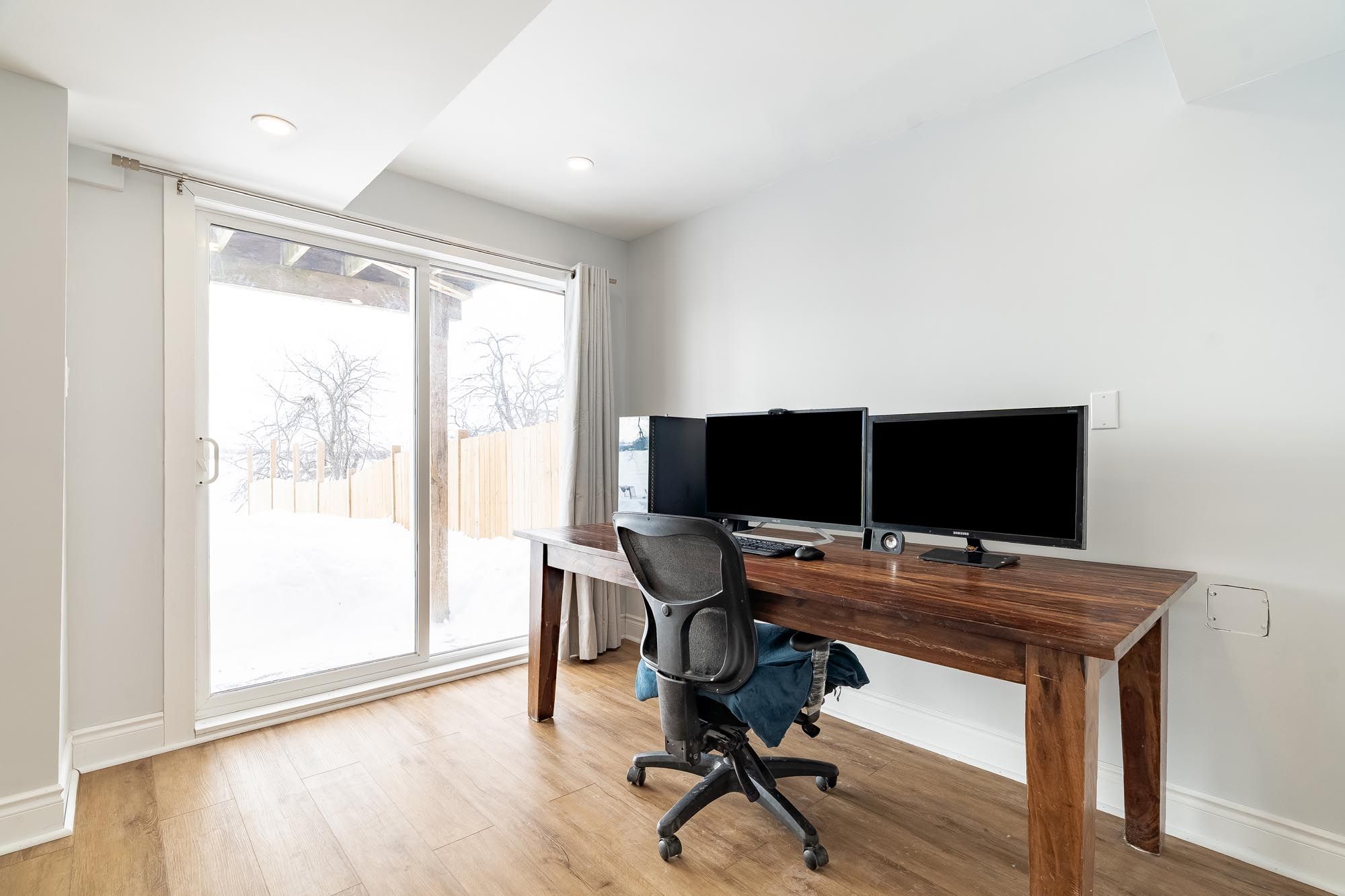 Top 5 reasons you will love this home: 1) beautifully maintained link home offering three well-sized bedrooms, ideally located in barrie's sought-after north end with convenient highway access and peaceful views over open fields, all set on a private pie-shaped lot complete with a desirable walkout basement 2) inside, the welcoming open-concept main level features rich hardwood floors that extend seamlessly through the living spaces, up the staircase, and across the landing, complemented by a walkout to a private main level balcony, ideal for indoor-outdoor living and quiet relaxation 3) convenient inside entry from the garage thoughtfully paired with an additional two-piece bathroom for added functionality and everyday comfort 4) well-appointed and generously sized bedrooms provide comfort and versatility for family or guests, including a relaxing primary retreat highlighted by a spa-inspired private ensuite featuring a sleek walk-in glass shower 5) descent to the finished basement enhanced by a newly installed bathroom offering added living space and versatility, alongside a convenient walkout that leads directly to the backyard. 1,333 above grade sq. Ft. Plus a finished basement.