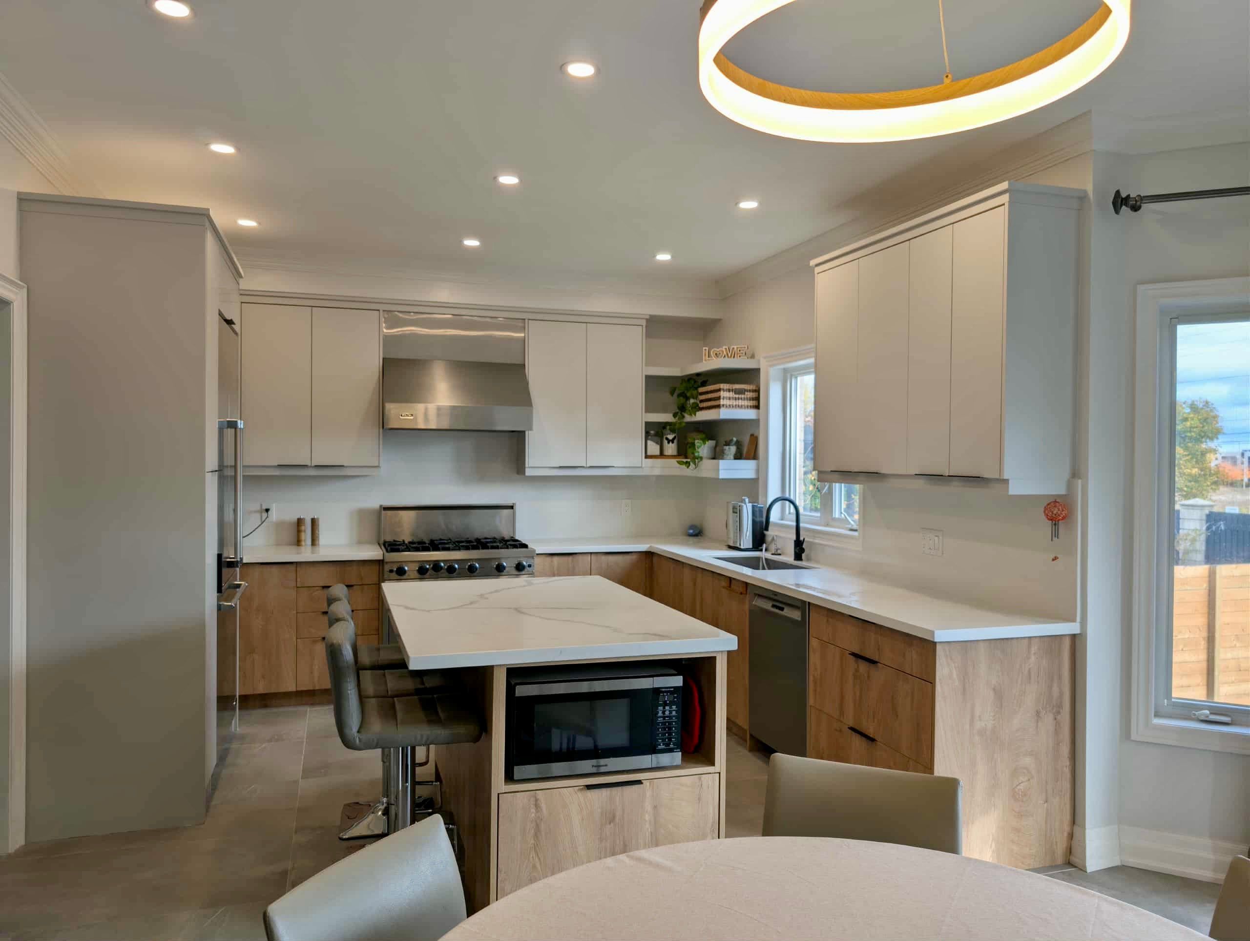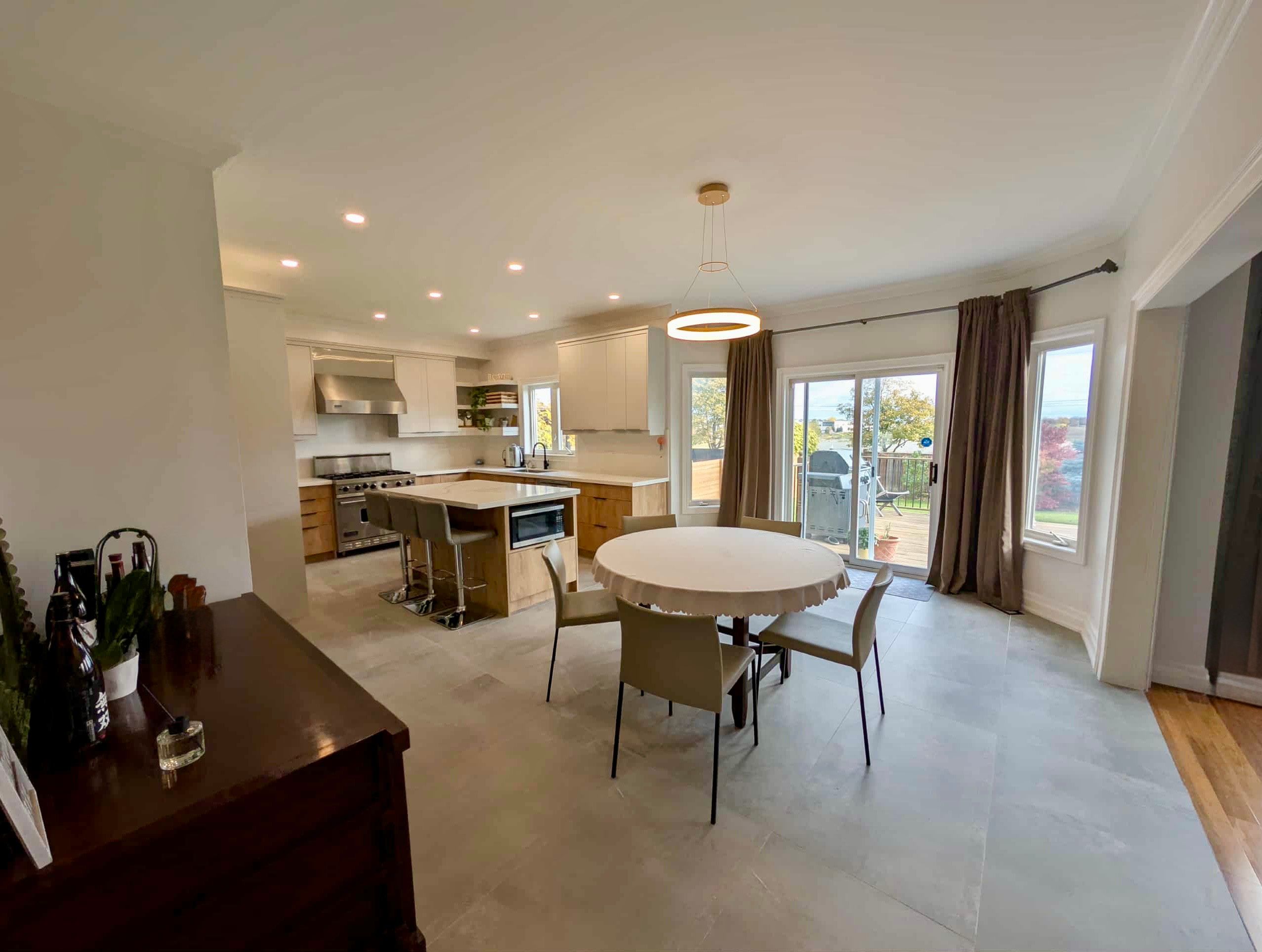 • Modern kitchen renovation featuring premium appliances and a spacious island.