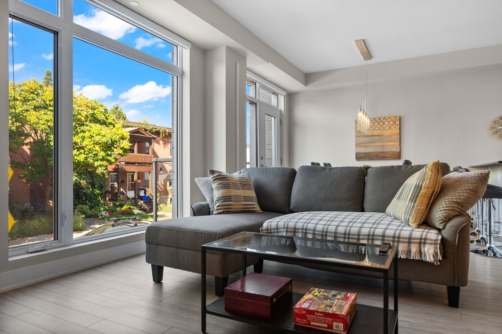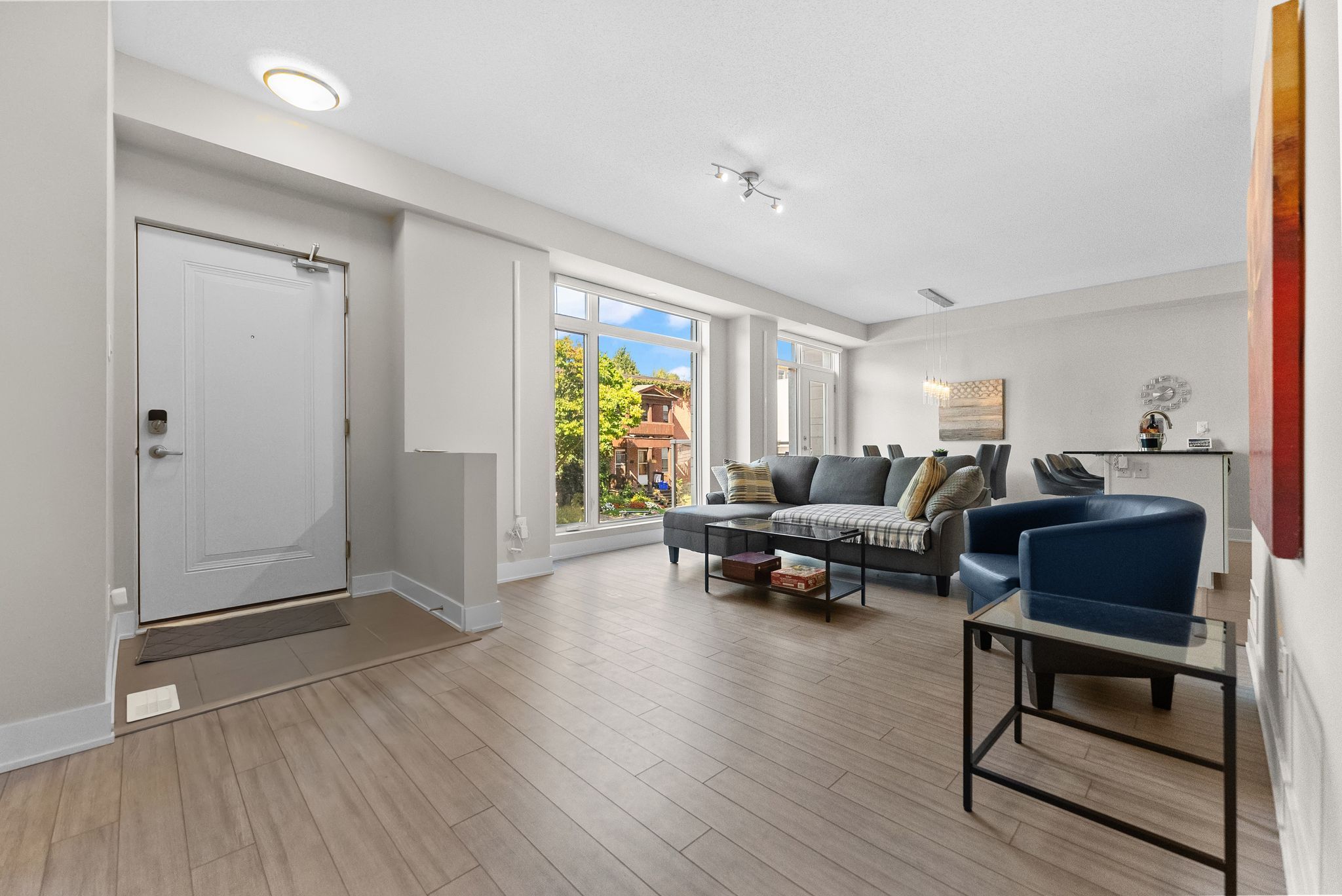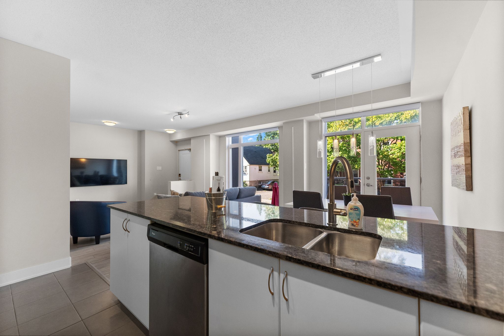 Welcome to beautifully appointed modern 2 bedroom 2. 5 bath townhome in the heart of the glebe just steps away from td place. Live the lifestyle you have been waiting for just steps away from the canal, restaurants, cinema & boutique shopping. Convenient access to transit right outside your front door. 1 underground parking space, convenient balcony off the kitchen/dining area & a patio terrace with a natural gas hook up for your bbq. This townhome boasts over 1200 ft of finished space & features high end finishes. The kitchen has quartz countertops, stainless steel appliances & a large island with a breakfast bar. Gleaming hardwood flooring & ceramic tile throughout the main floor. Spacious primary has oversized windows, a large walk in closet & a 3 pc ensuite. Generously sized 2nd bedroom & another 4 pc bathroom on the lower level. This is the perfect layout for 2 roommates each with their own bathroom. In suite laundry. Just move in & enjoy! This property is turnkey.