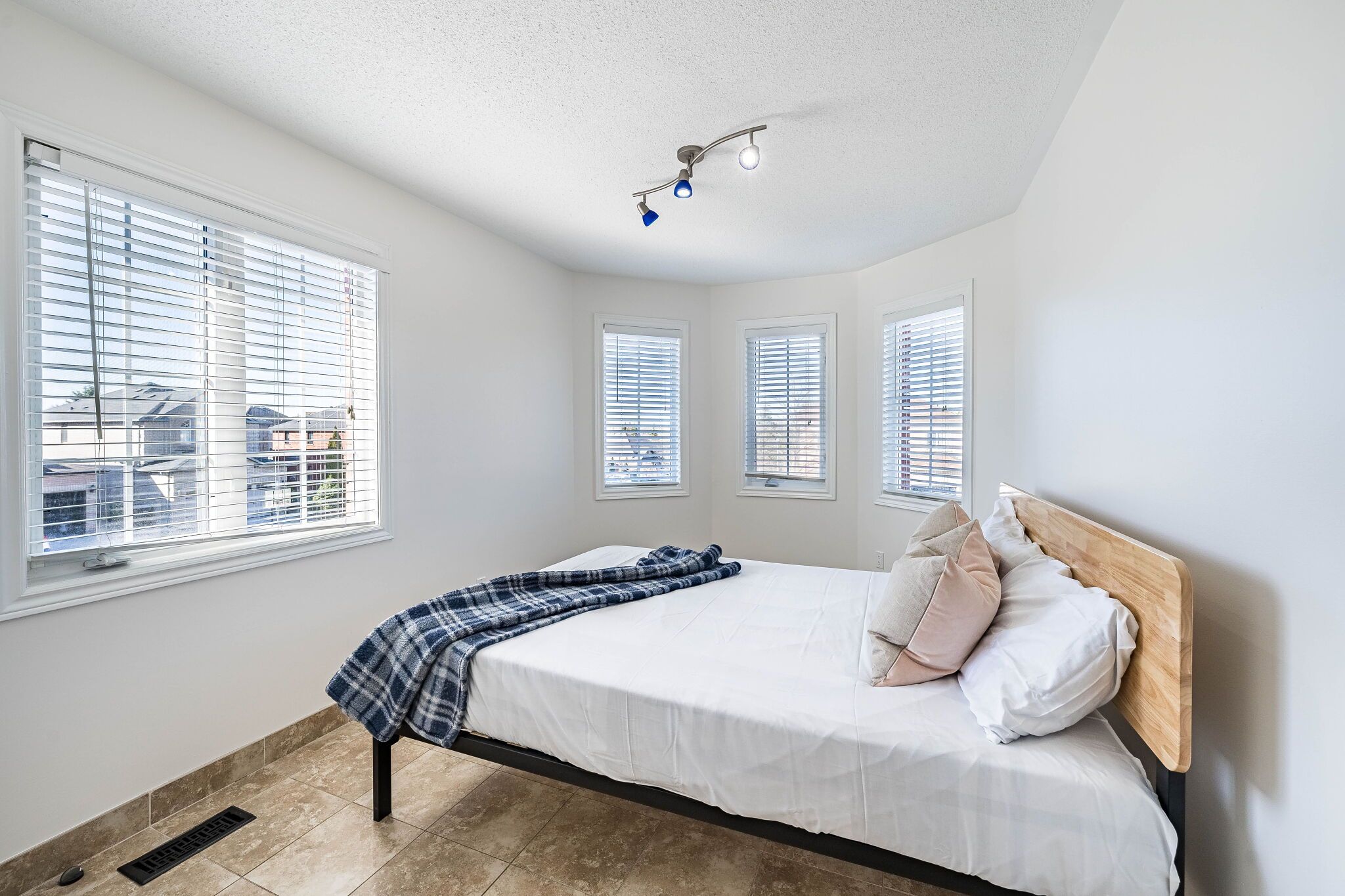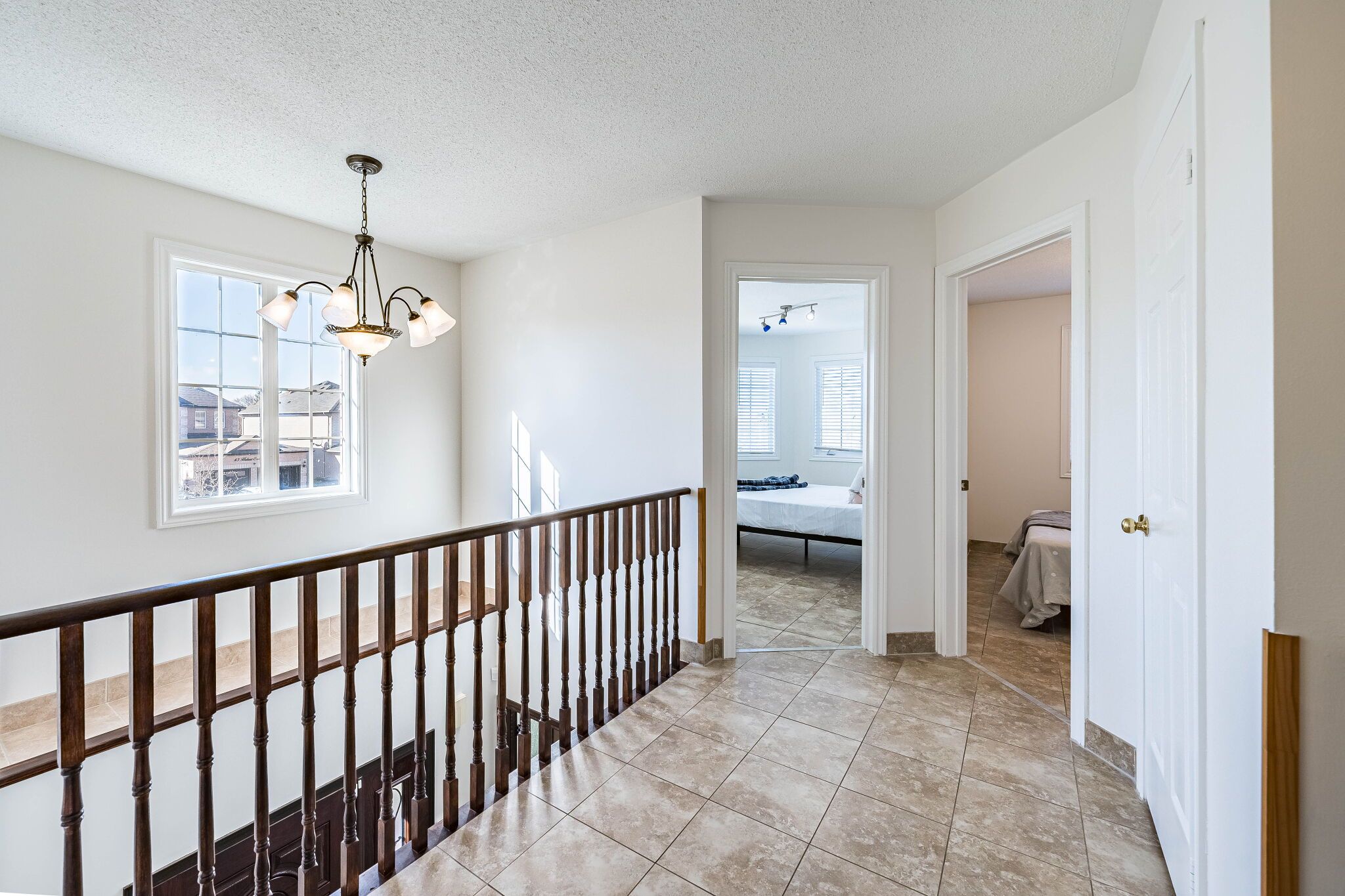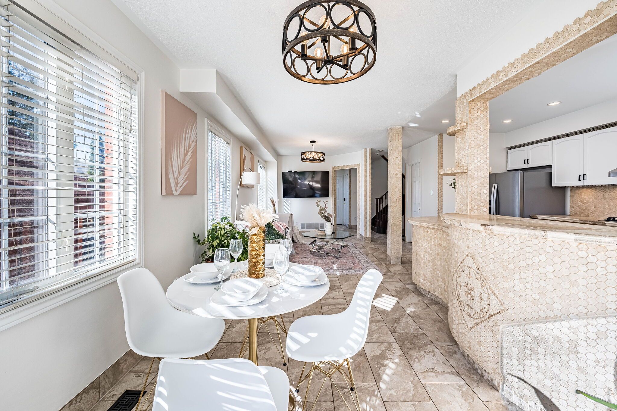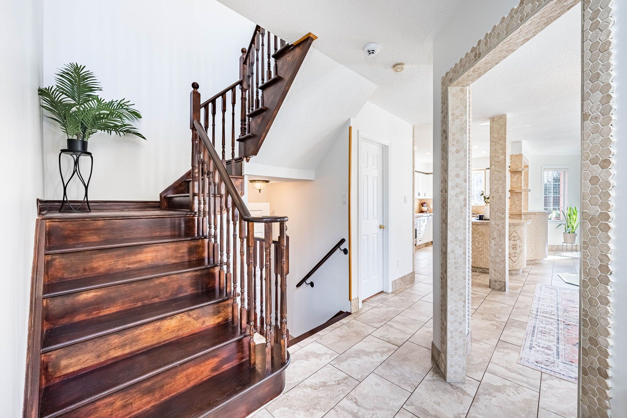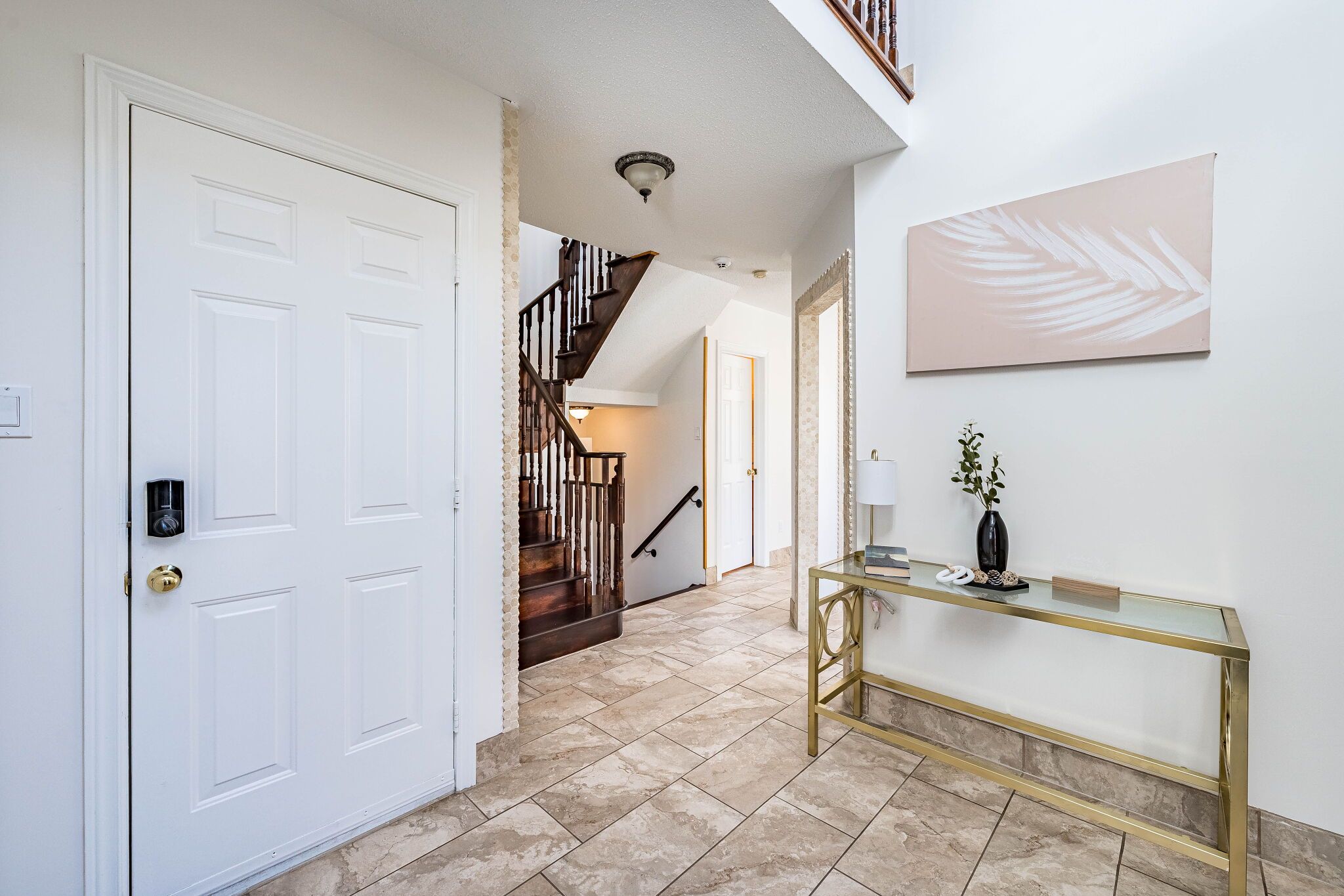 Rare corner lot backing onto a lush park with ultimate privacy and open views. The backyard is a serene retreat surrounded by greenery with no rear neighbors. This freshly painted, move-in ready home is completely carpet-free and features master-crafted porcelain tile artwork throughout. The exterior is beautifully enhanced with professional landscaping and upgraded stamped concrete flooring. All major mechanicals are fully owned, including a high-efficiency furnace (2024), heat pump (2024), and tankless water heater (2023). All appliances are owned with no rentals. Includes a garage plus 3 additional outside car parking spaces. A true turn-key gem combining modern energy efficiency with a premium, private location.