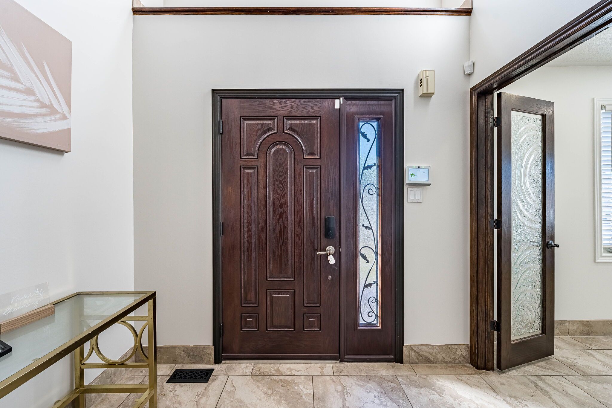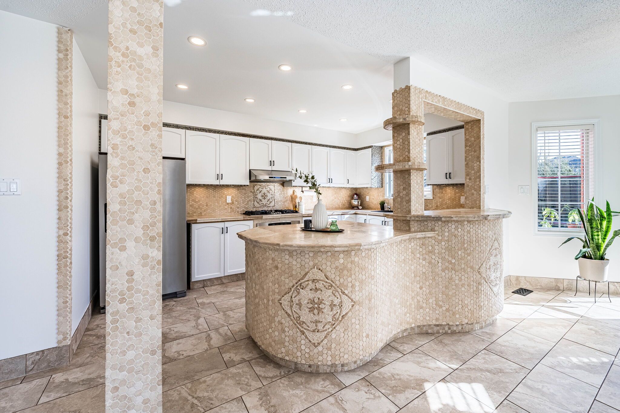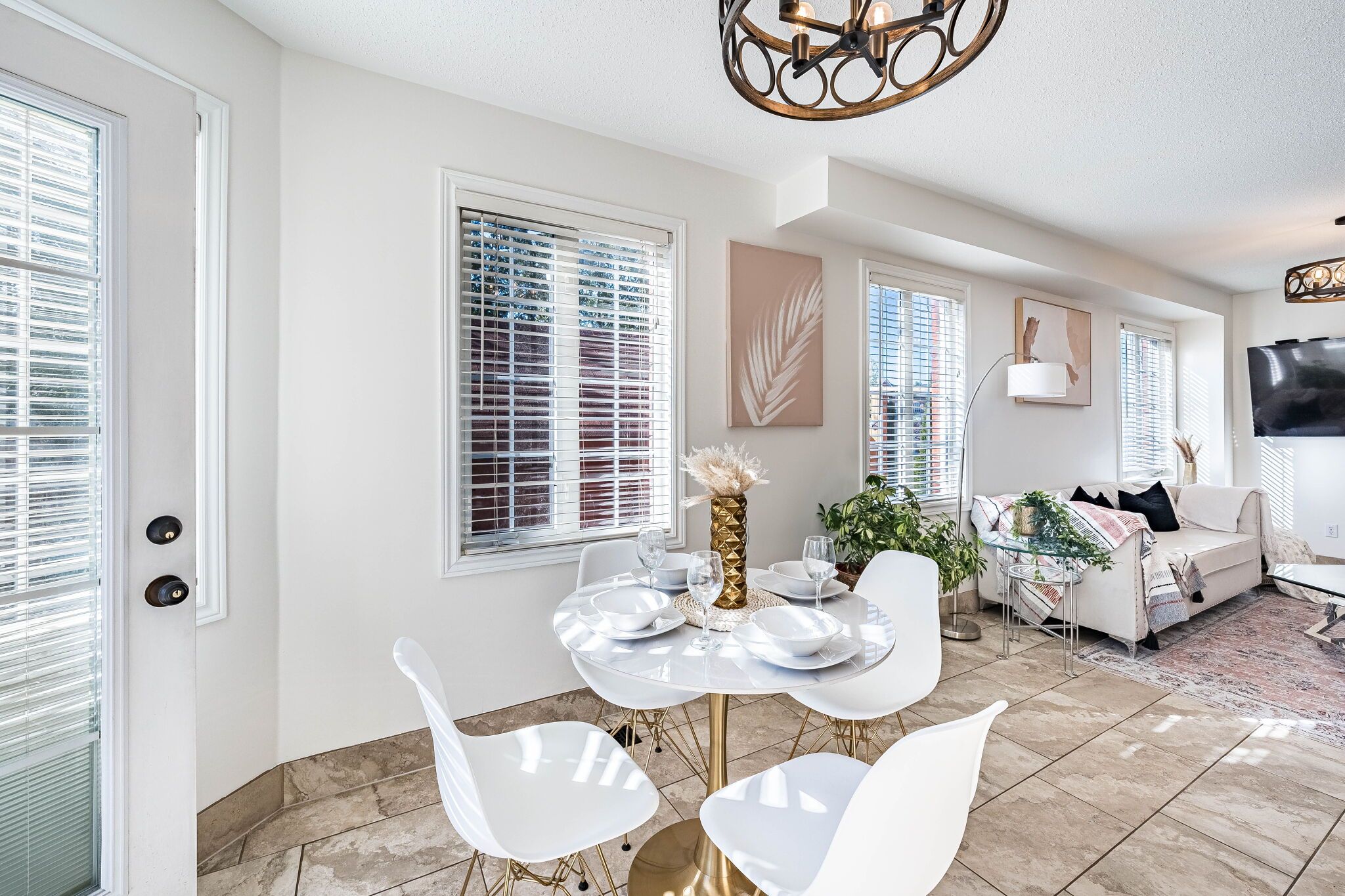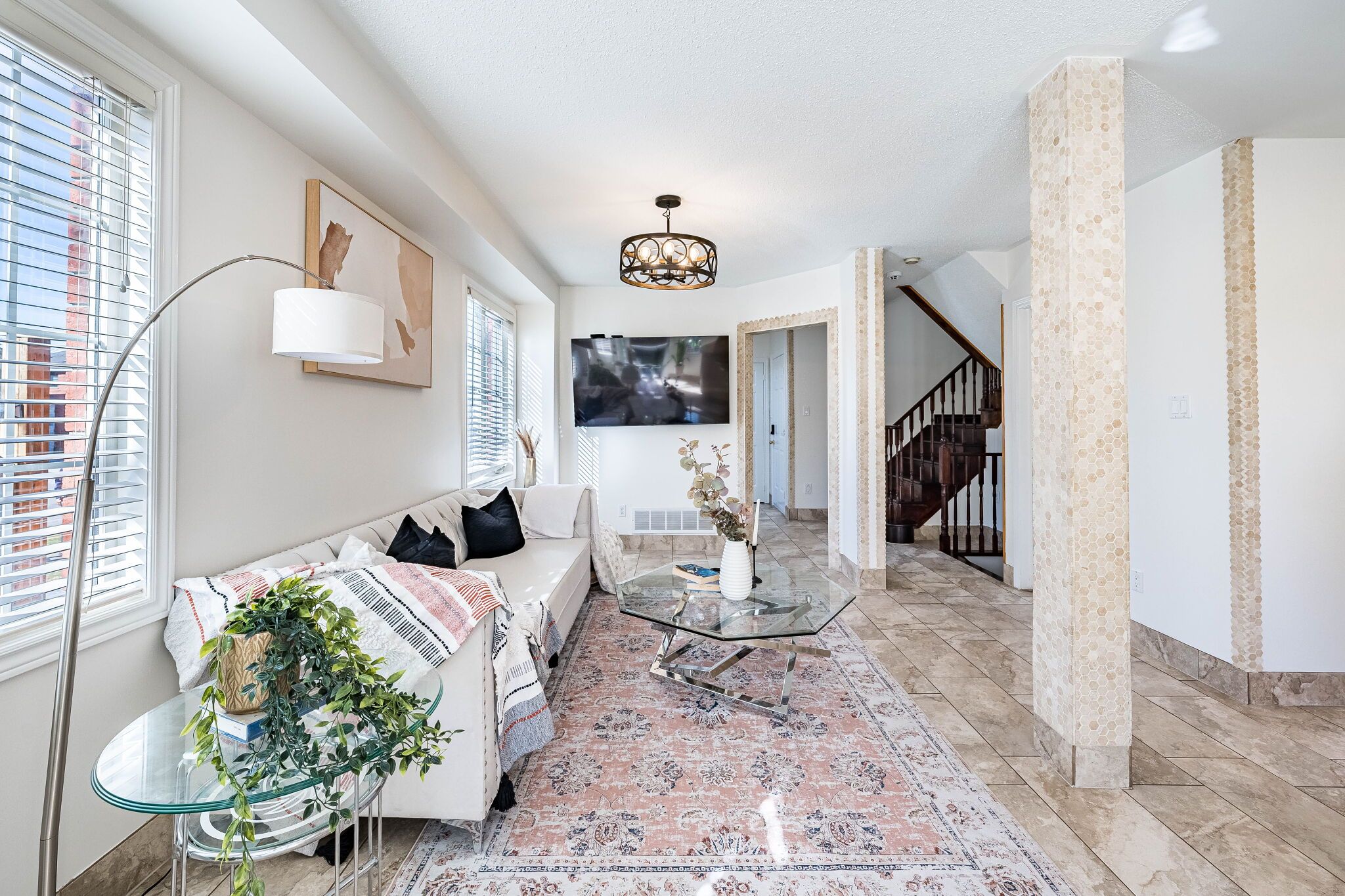 Rare corner lot backing onto a lush park with ultimate privacy and open views. The backyard is a serene retreat surrounded by greenery with no rear neighbors. This freshly painted, move-in ready home is completely carpet-free and features master-crafted porcelain tile artwork throughout. The exterior is beautifully enhanced with professional landscaping and upgraded stamped concrete flooring. All major mechanicals are fully owned, including a high-efficiency furnace (2024), heat pump (2024), and tankless water heater (2023). All appliances are owned with no rentals. Includes a garage plus 3 additional outside car parking spaces. A true turn-key gem combining modern energy efficiency with a premium, private location.