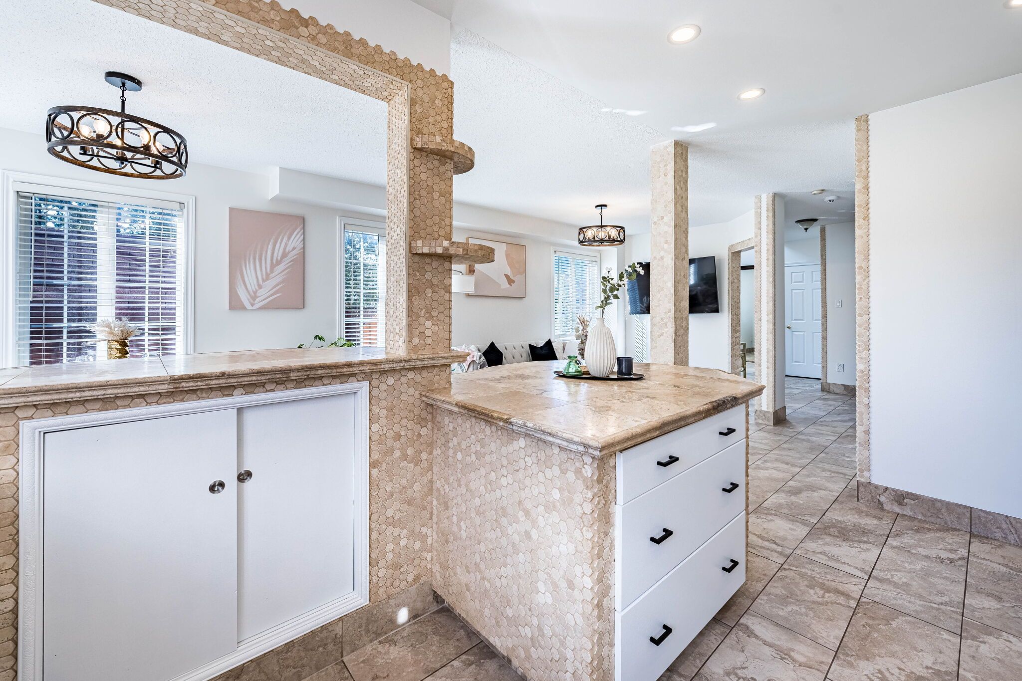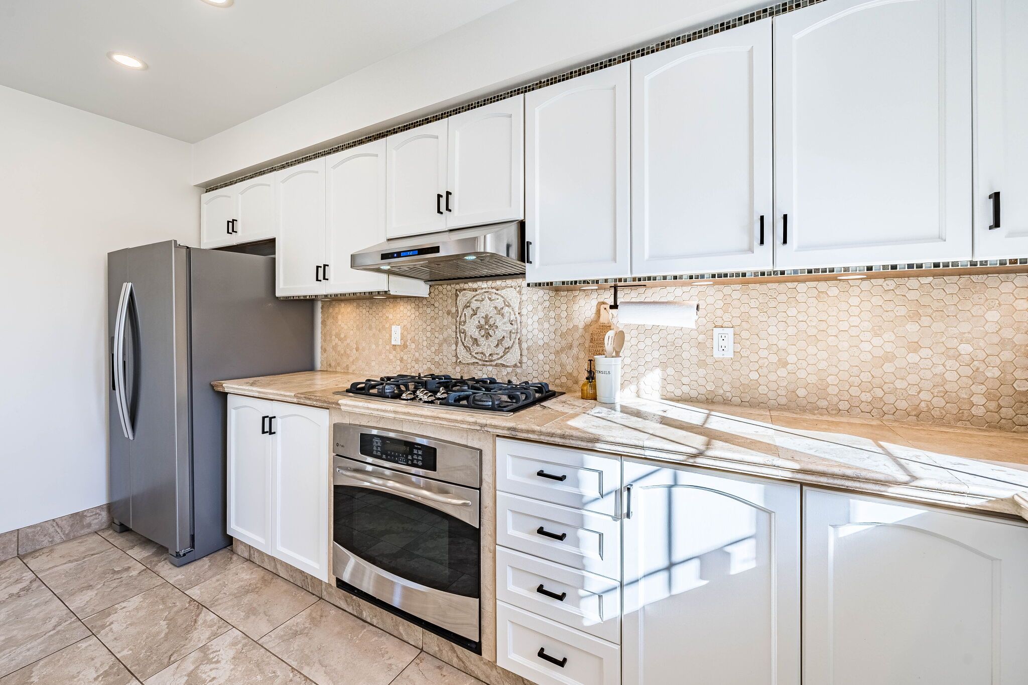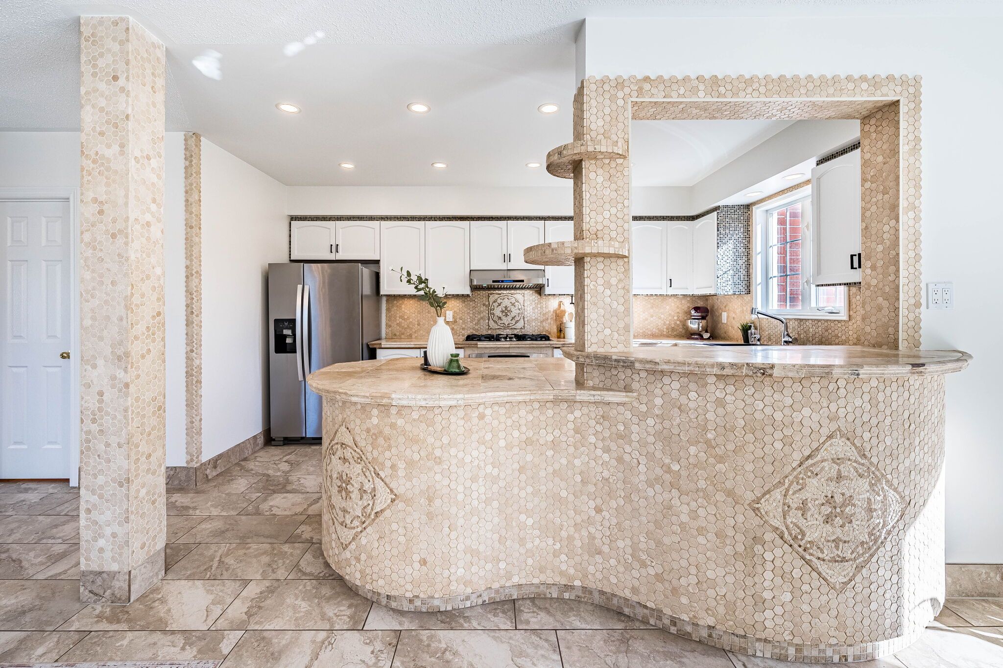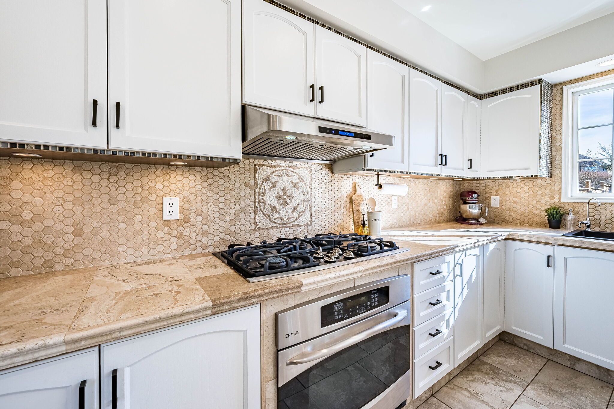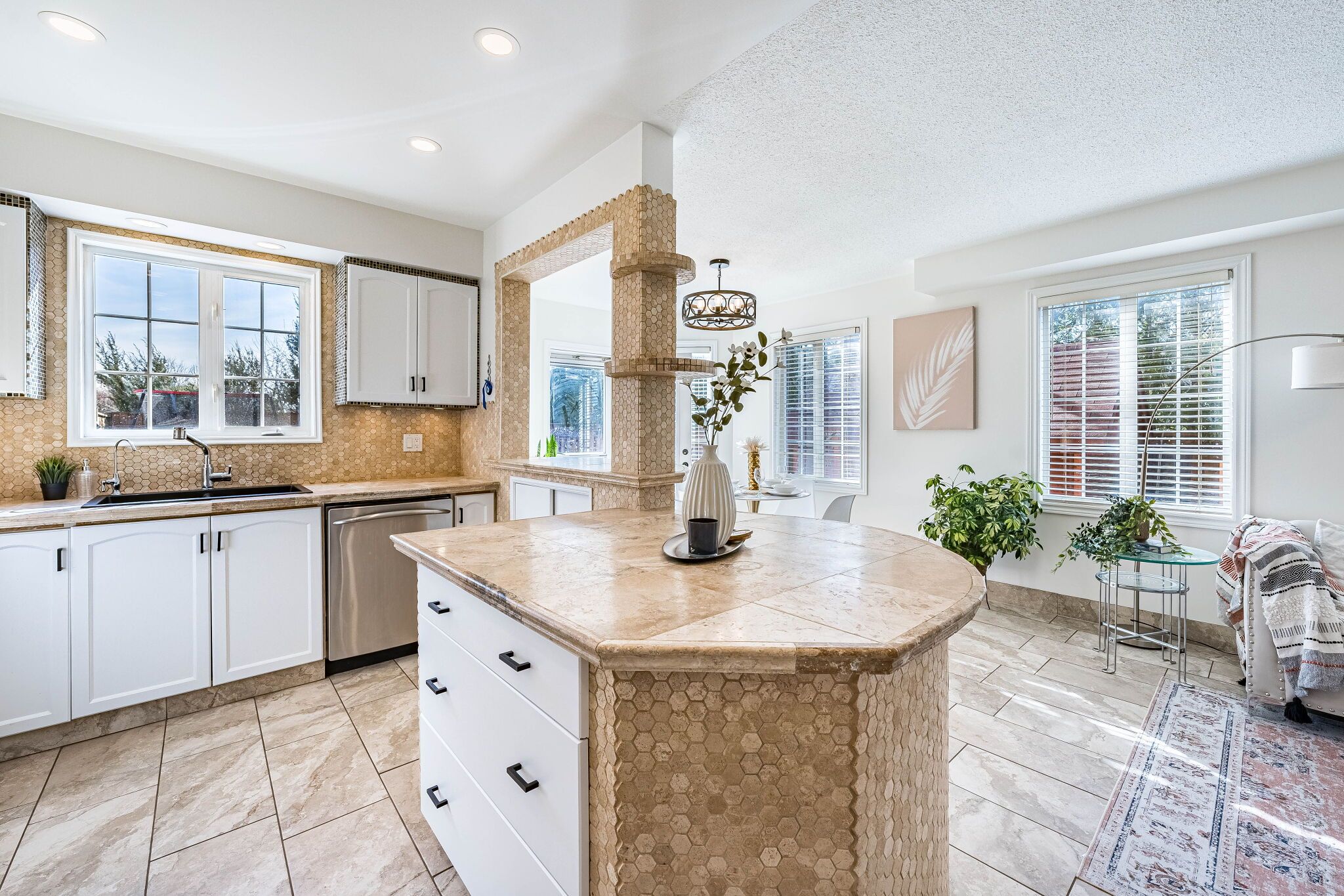 Rare corner lot backing onto a lush park with ultimate privacy and open views. The backyard is a serene retreat surrounded by greenery with no rear neighbors. This freshly painted, move-in ready home is completely carpet-free and features master-crafted porcelain tile artwork throughout. The exterior is beautifully enhanced with professional landscaping and upgraded stamped concrete flooring. All major mechanicals are fully owned, including a high-efficiency furnace (2024), heat pump (2024), and tankless water heater (2023). All appliances are owned with no rentals. Includes a garage plus 3 additional outside car parking spaces. A true turn-key gem combining modern energy efficiency with a premium, private location.