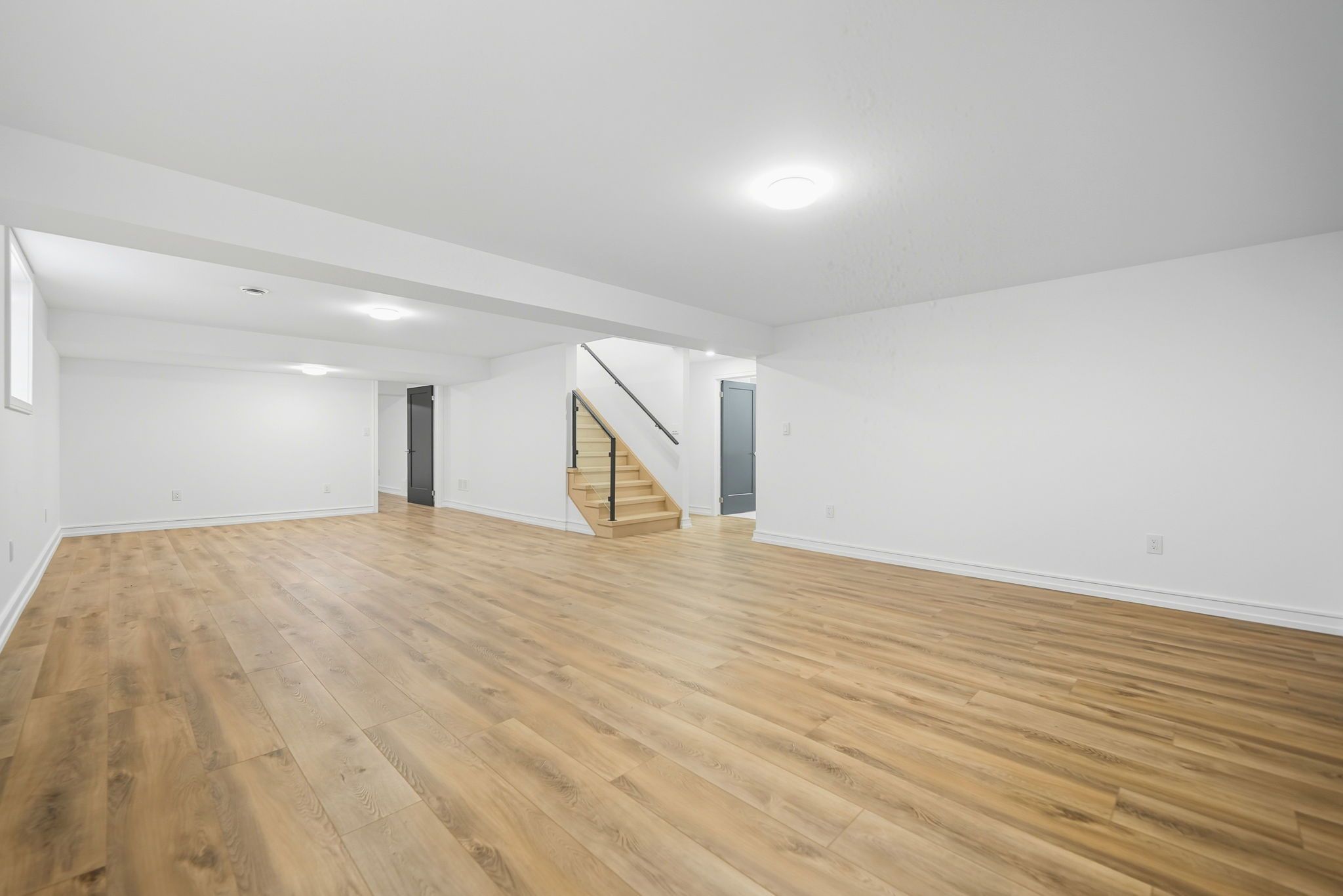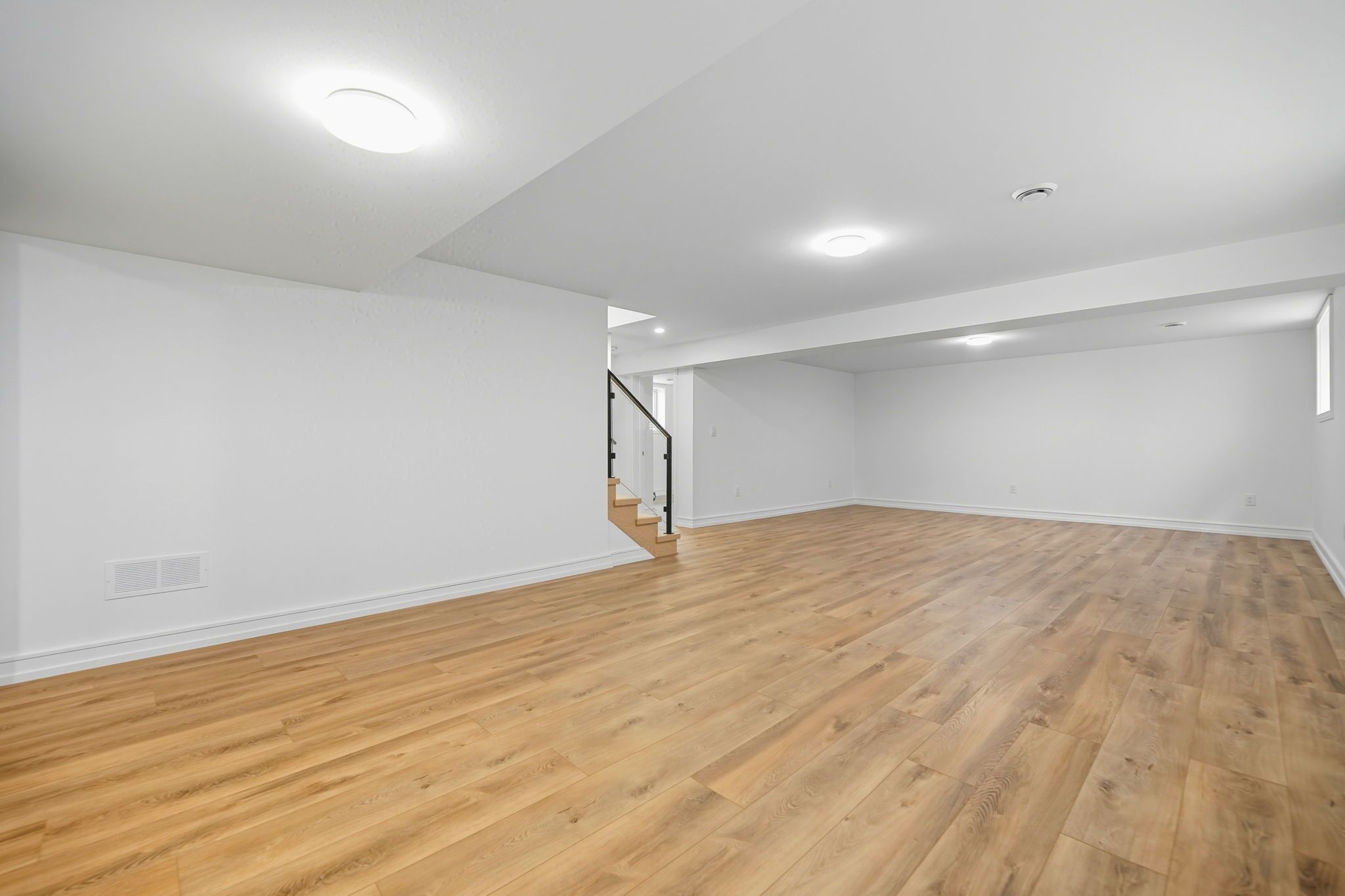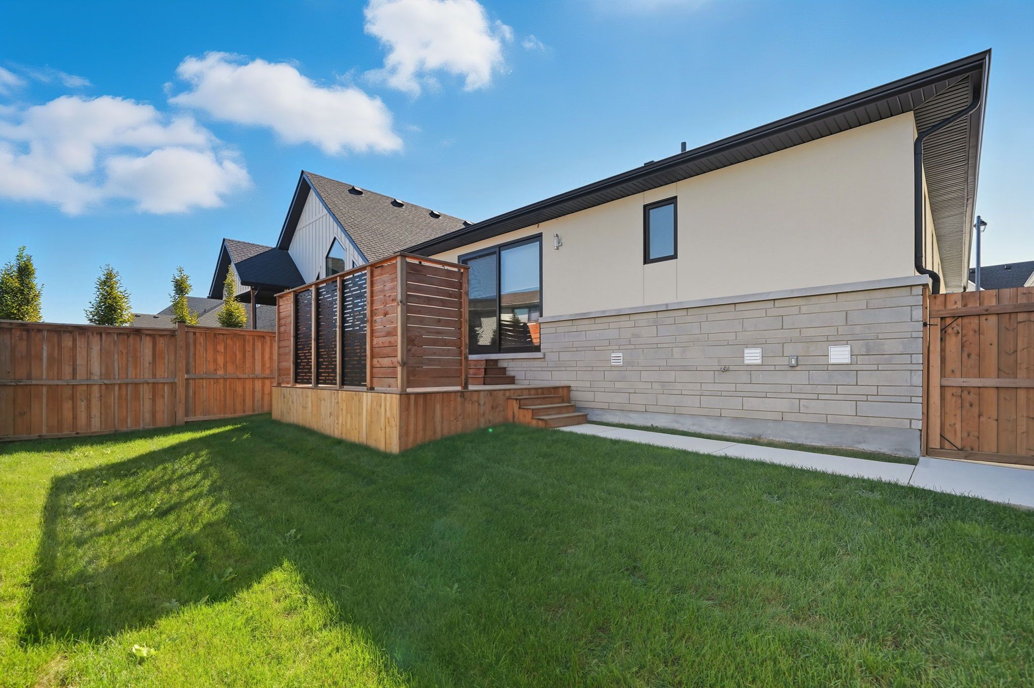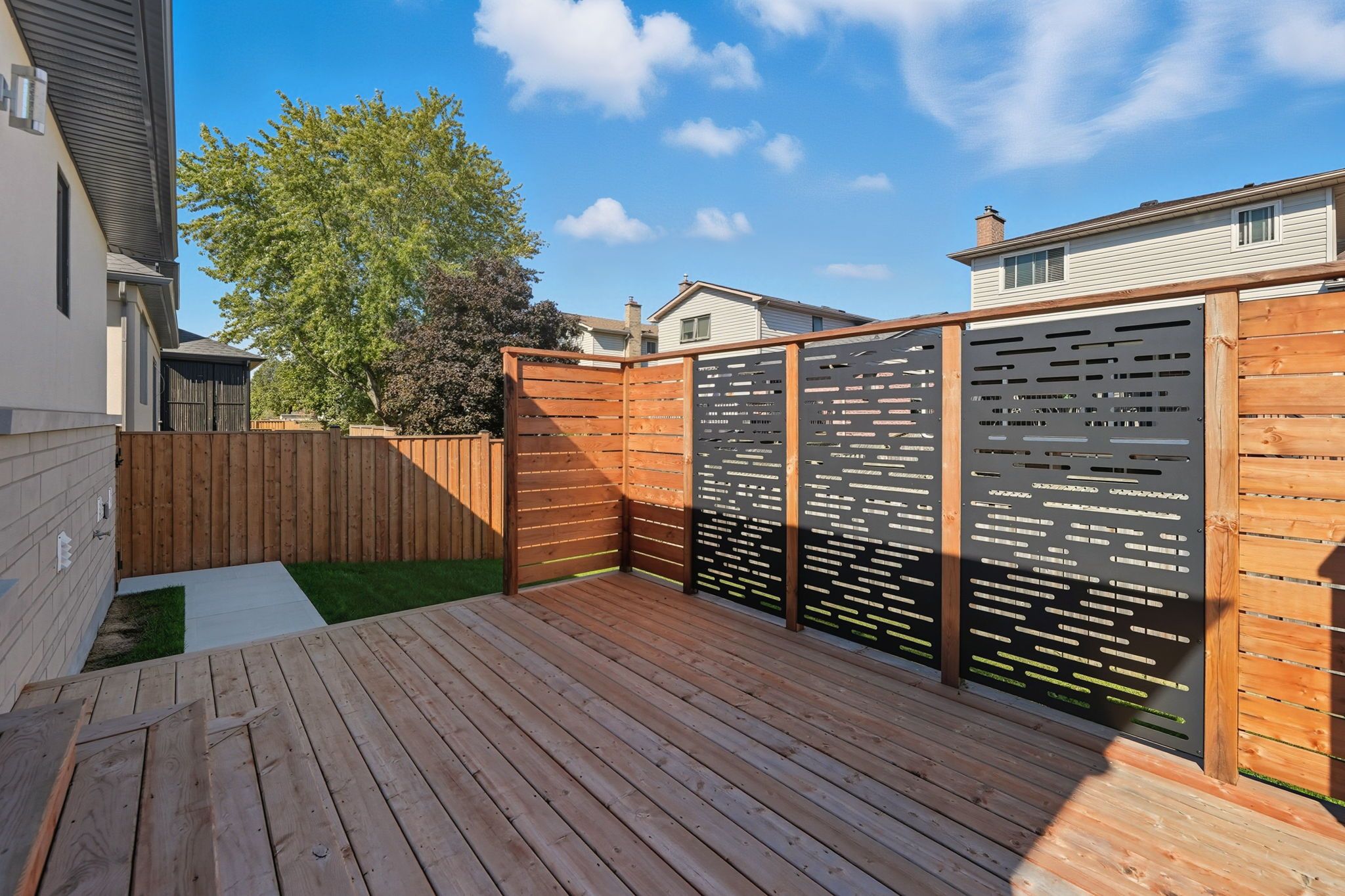 Welcome to this stunning custom-built bungalow in thorold, designed with style, function, and comfort in mind. The open-concept layout highlights a chefs kitchen with custom cabinetry, painted glass backsplash, a striking quartz double waterfall island, and brand-new stainless steel appliances. An additional espresso bar with wine fridge off the dining area adds the perfect touch for entertaining. The bright living room features a sleek linear gas fireplace and oversized double patio doors (9x8) that flood the space with natural light and lead to a 16x12 wooden deck complete with privacy screening. The main floor offers two bedrooms, including a primary suite with a walk-in closet and a spa-like ensuite boasting a custom double vanity and large glass walk-in shower. A main 4-pc bathroom, mud/laundry room, and italian tile with engineered hardwood flooring complete this level. The fully finished lower level expands your living space with two additional bedrooms with egress windows, a 3-pc bathroom, and a large recreation area, all finished with durable vinyl flooring. Additional features include battery-powered window coverings on the main floor, an attached single-car garage, and a double-wide driveway. Set in a prime location close to shopping, amenities, and with easy highway access, this home is within walking distance to scenic trails and lake gibson conservation park. A true blend of modern design and everyday convenience, move in and enjoy!
