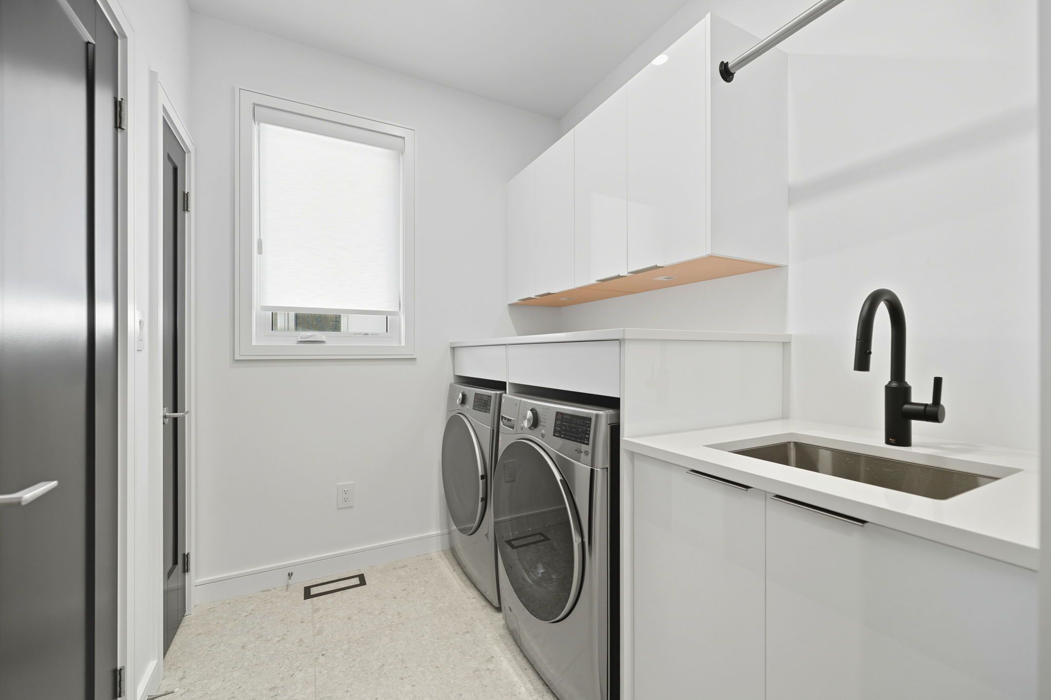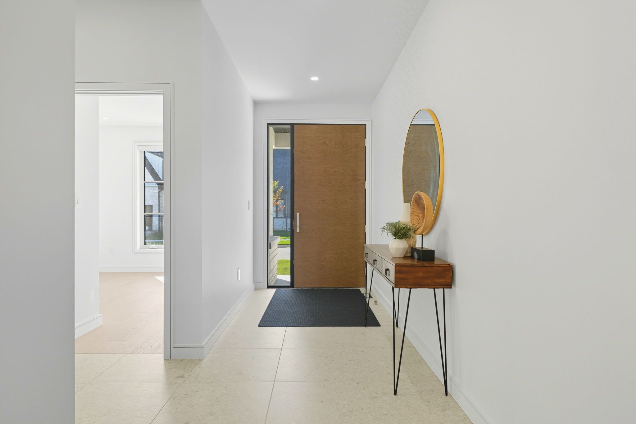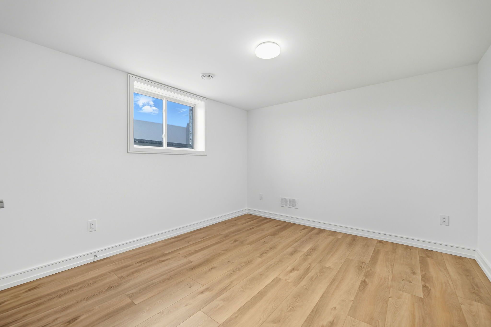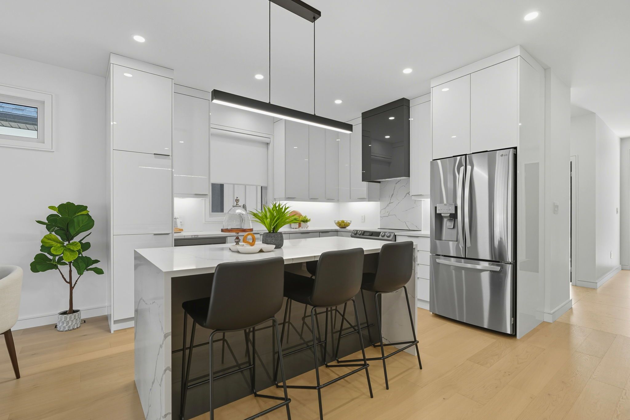 Welcome to this stunning custom-built bungalow in thorold, designed with style, function, and comfort in mind. The open-concept layout highlights a chefs kitchen with custom cabinetry, painted glass backsplash, a striking quartz double waterfall island, and brand-new stainless steel appliances. An additional espresso bar with wine fridge off the dining area adds the perfect touch for entertaining. The bright living room features a sleek linear gas fireplace and oversized double patio doors (9x8) that flood the space with natural light and lead to a 16x12 wooden deck complete with privacy screening. The main floor offers two bedrooms, including a primary suite with a walk-in closet and a spa-like ensuite boasting a custom double vanity and large glass walk-in shower. A main 4-pc bathroom, mud/laundry room, and italian tile with engineered hardwood flooring complete this level. The fully finished lower level expands your living space with two additional bedrooms with egress windows, a 3-pc bathroom, and a large recreation area, all finished with durable vinyl flooring. Additional features include battery-powered window coverings on the main floor, an attached single-car garage, and a double-wide driveway. Set in a prime location close to shopping, amenities, and with easy highway access, this home is within walking distance to scenic trails and lake gibson conservation park. A true blend of modern design and everyday convenience, move in and enjoy!