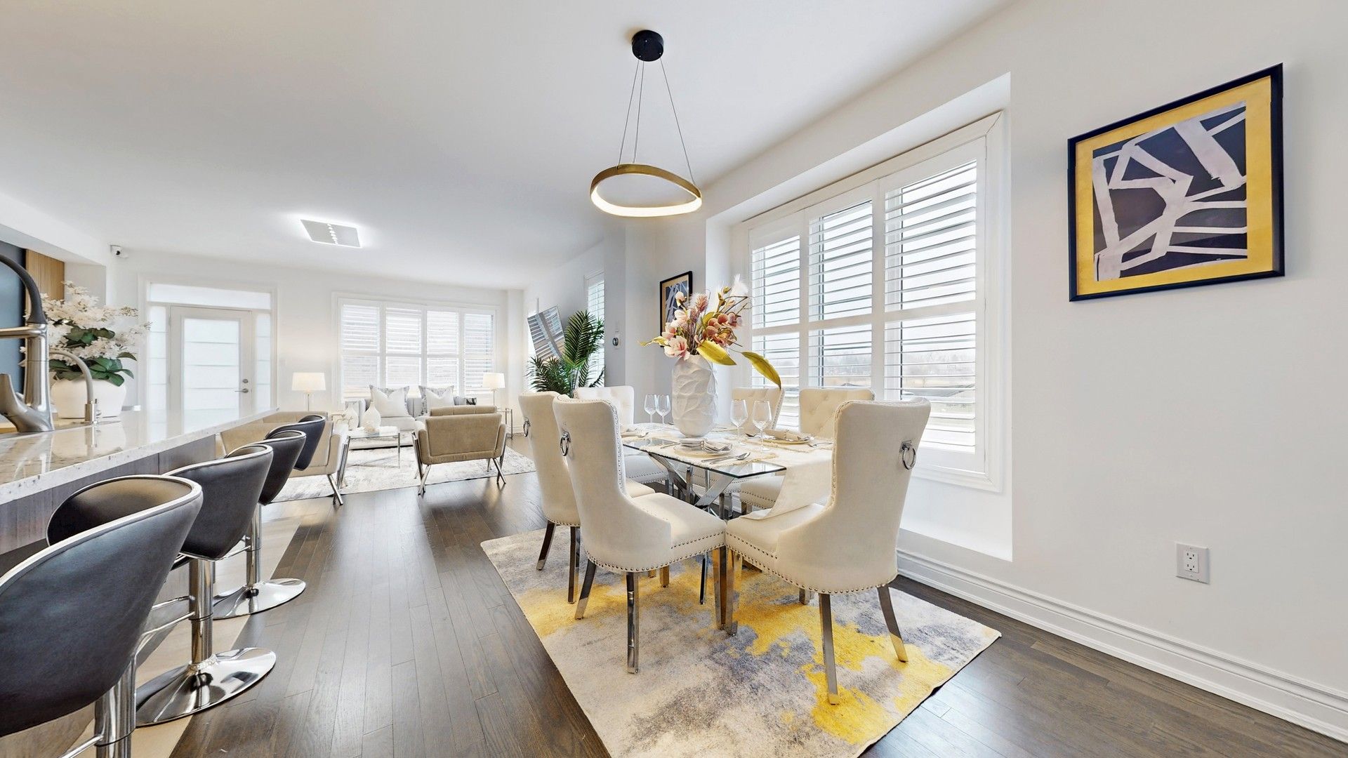 Welcome to this beautiful freehold end unit townhome in highly sought-after sharon community! Premium corner lot. Bright & spacious layout, 9' ceilings & hardwood flooring on main. Extra long parking garage. Direct access to garage, long driveway with no side walk can park 2 cars. Family room walk out to backyard. Modern goumet kitchen features a oversized centre island, quartz countertop, waterfall sink workstation, backsplash & breakfast bar. Oak staircase with iron pickets. Primary bdrm w/4 pcs en-suite & w/i closet. Surrounded by parks and trails! Walking distance to sharon public school. Close to hwy 404, go-train station, community centre, costco & shopping plazas. Family friendly neighborhood! Do not miss this opportunity!