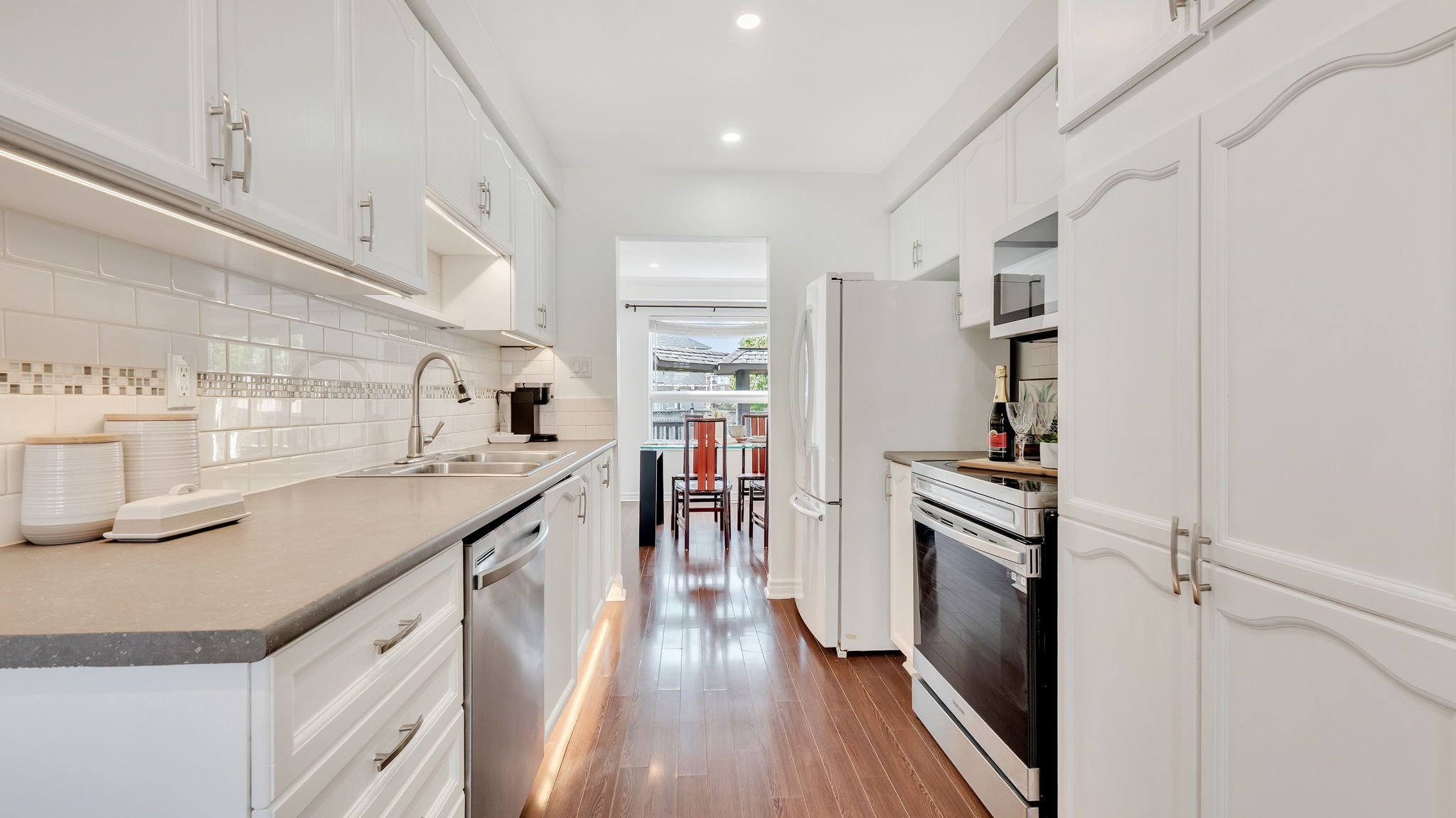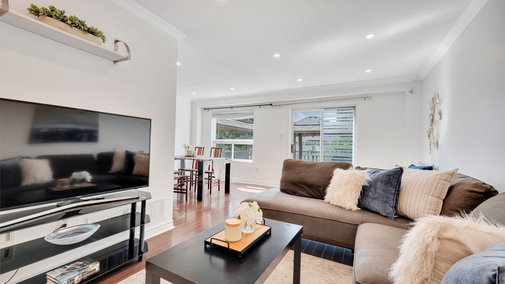 Welcome to this stunning freehold all-brick end-unit townhome, offering style, space, and convenience in one of bowmanville's most sought-after family neighbourhoods. Thoughtfully maintained, this home is perfectly suited for first-time buyers or those looking to downsize. Featuring 3+1 bedrooms, 3 bathrooms, and a fully finished basement, it offers the perfect balance of comfort and functionality for modern family living. The main floor boasts a bright and spacious living & dining area with large windows, filling the home with natural light-perfect for family meals and gatherings and a walkout to a huge deck overlooking green space. The generous kitchen with breakfast area provides plenty of room for your family. Upstairs, the primary bedroom impresses with a skylight, walk-in closet, and a private 4-piece ensuite. Two additional bedrooms are well-sized with ample closet space and large windows, ideal for families. The finished basement is a true highlight, offering a cozy recreation room with pot lights and an additional spacious bedroom with a window for bright ness and safety. Outside, the fully fenced backyard delivers privacy and space-perfect for entertaining, relaxing, or barbecuing. The private driveway accommodates two cars plus one in the garage. This ideal location is within walking distance of french, montessori, public, and catholic schools, as well as beautiful parks and trails. Just minutes from downtown bowmanville, the future south bowmanville rec centre, clarington fields, shopping, restaurants, and all major amenities. Five minute drive to highway 401 and walk to public transit makes commuting a breeze. Nearby, you'll also find healthcare, places of worship, grocery stores (canadian & ethnic), banks, and more. This family-friendly townhome blends style, comfort, and convenience-make this your home today!