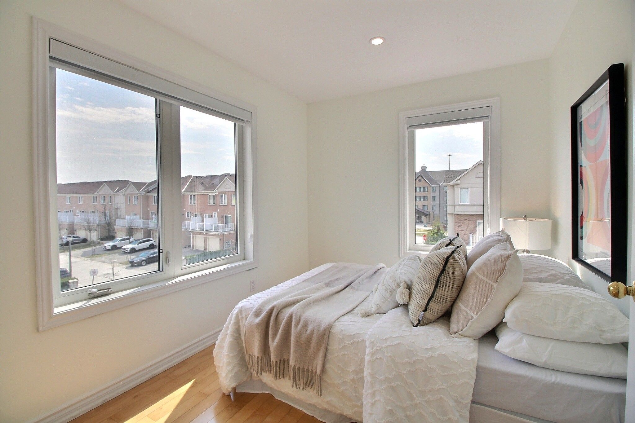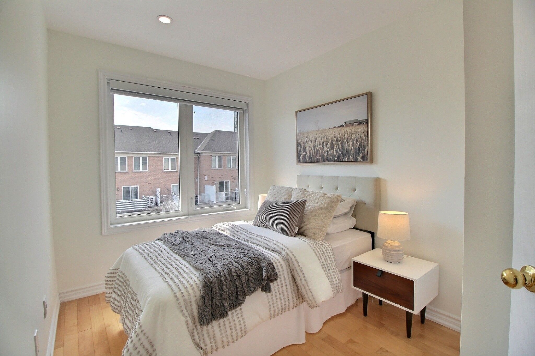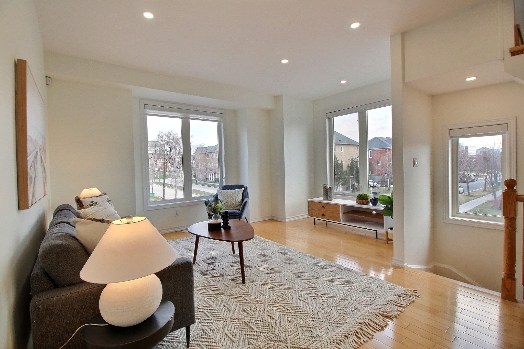 Open house on 11 & 12 april 2026. Rare end-unit gem - feels like a semi! Sun-drenched 3-storey townhome with windows on 3 sides and beautiful streetscapes from every room. Boasting smooth ceilings, led pot lights on all 3 levels and custom blinds. Modern open concept layout features maple hardwood floors & stunning wood stairs. Renovated gourmet kitchen with granite counters, valance lighting, pantry & walk-out to balcony where you can have friends and family bbq parties. Dual primary suites: 3rd floor master retreat with walk-in closet & renovated 3-piece ensuite featuring walk-in shower. Rare ground floor bedroom with 4-piece ensuite and dual aspect windows, perfect for in-laws or home office! Direct access to garage with extra storage plus private driveway parking. Main floor laundry. Prime location walkable to parks, shops & transit near highway 7 and leslie. Move-in condition! Including: stainless steel fridge, stove, dishwasher, washer and dryer, all electric light fixtures and window coverings.