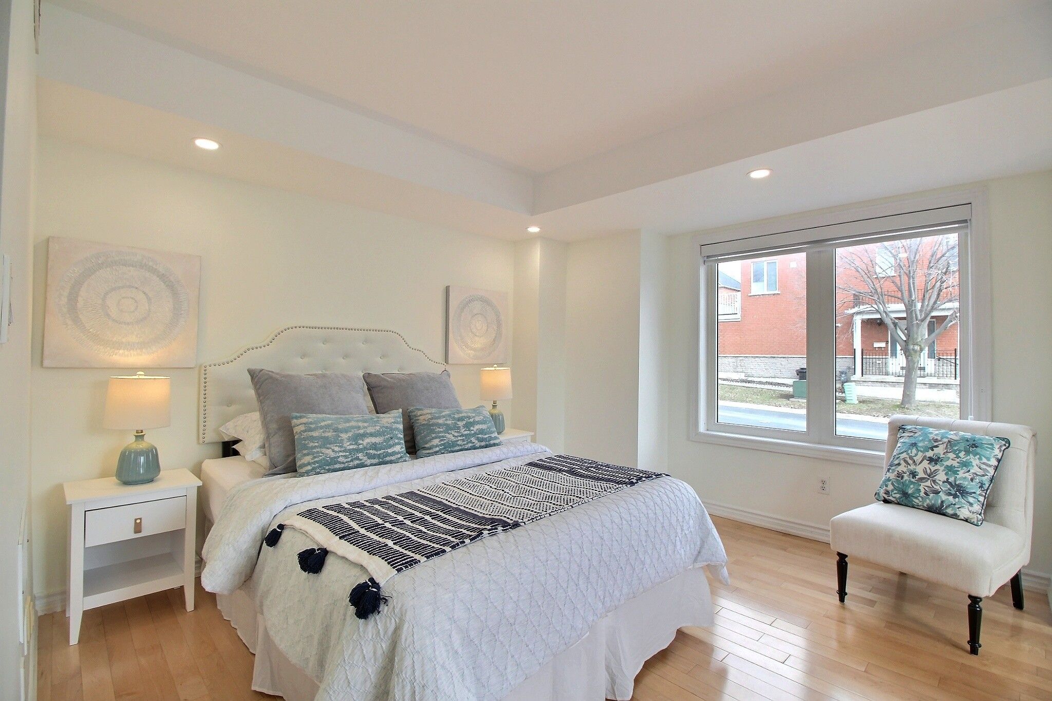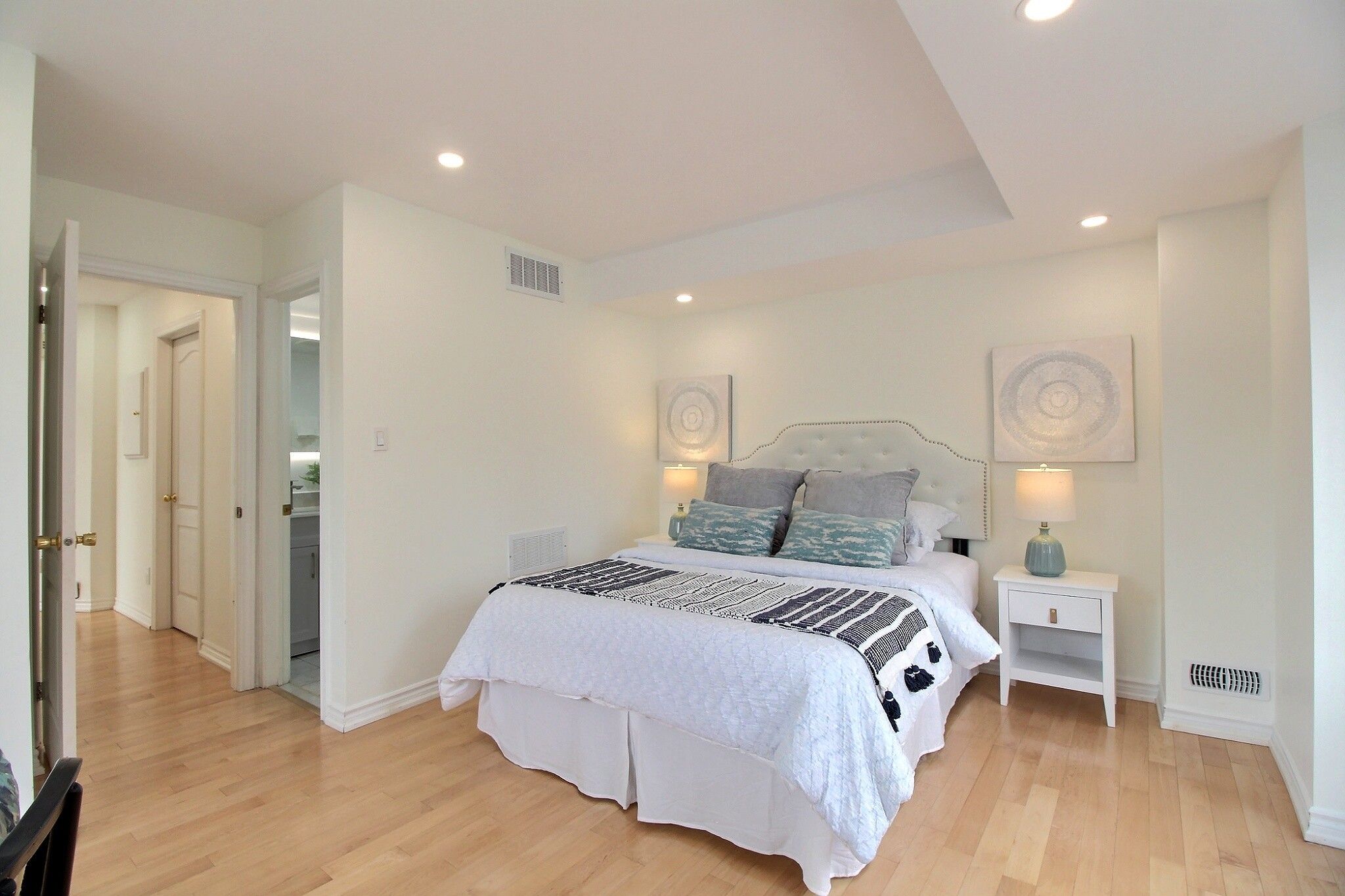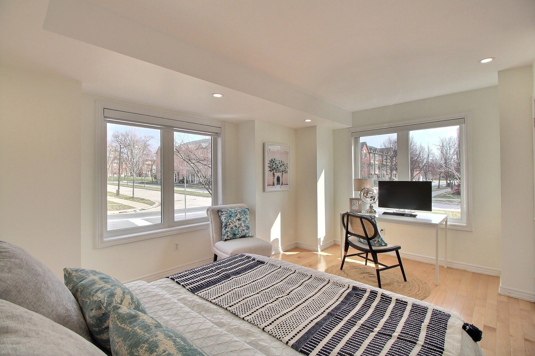 Open house on 11 & 12 april 2026. Rare end-unit gem - feels like a semi! Sun-drenched 3-storey townhome with windows on 3 sides and beautiful streetscapes from every room. Boasting smooth ceilings, led pot lights on all 3 levels and custom blinds. Modern open concept layout features maple hardwood floors & stunning wood stairs. Renovated gourmet kitchen with granite counters, valance lighting, pantry & walk-out to balcony where you can have friends and family bbq parties. Dual primary suites: 3rd floor master retreat with walk-in closet & renovated 3-piece ensuite featuring walk-in shower. Rare ground floor bedroom with 4-piece ensuite and dual aspect windows, perfect for in-laws or home office! Direct access to garage with extra storage plus private driveway parking. Main floor laundry. Prime location walkable to parks, shops & transit near highway 7 and leslie. Move-in condition! Including: stainless steel fridge, stove, dishwasher, washer and dryer, all electric light fixtures and window coverings.