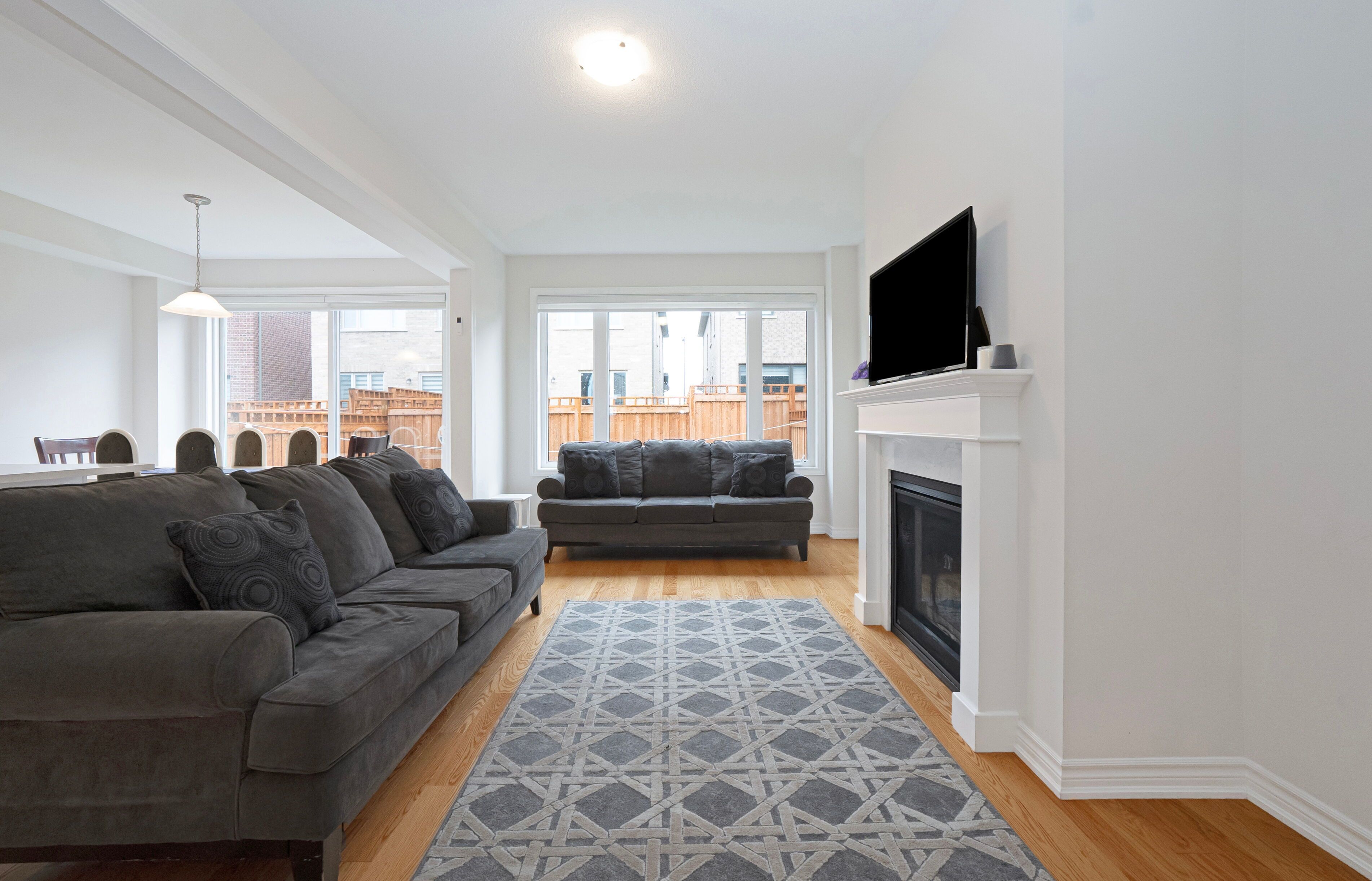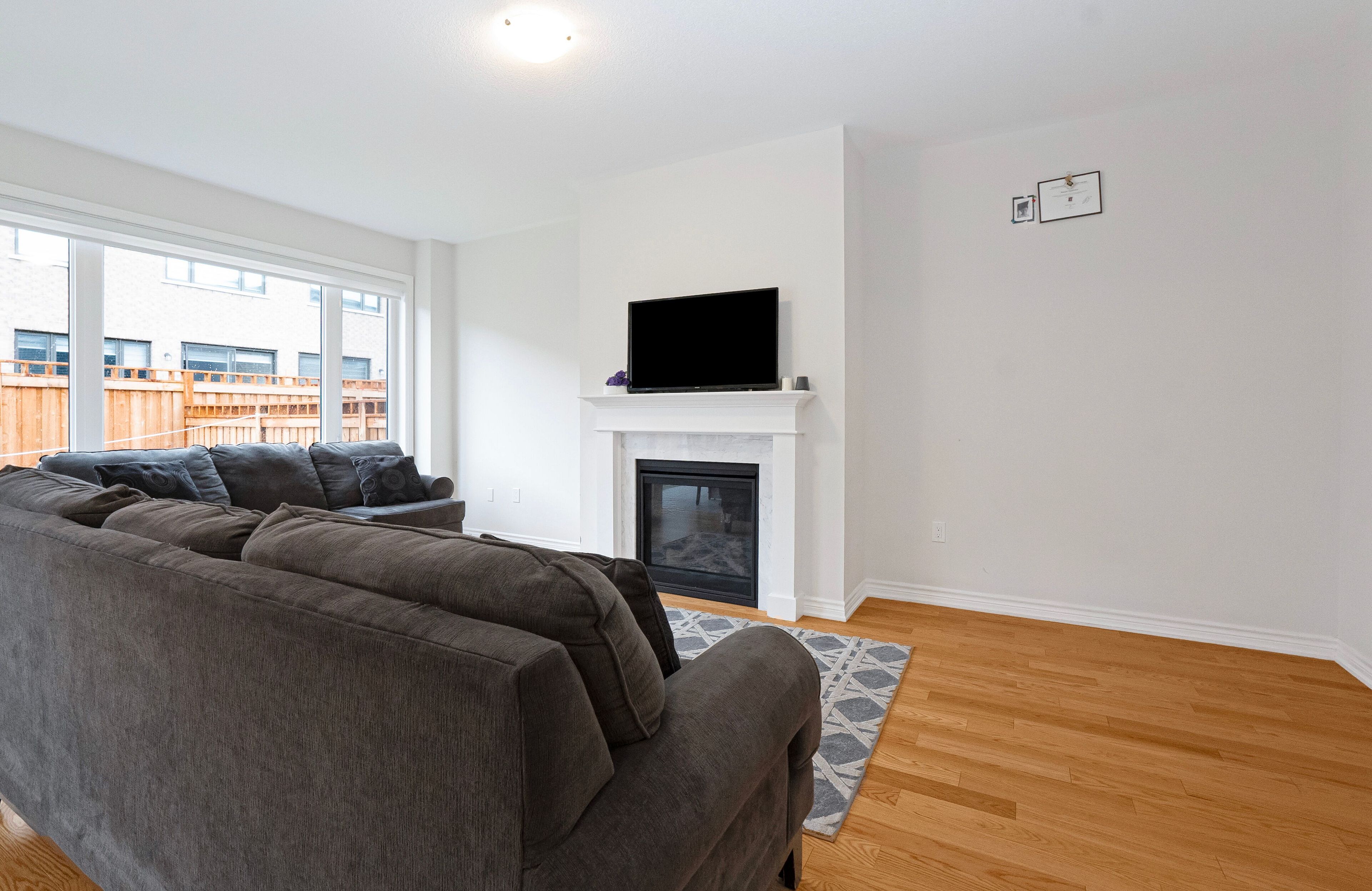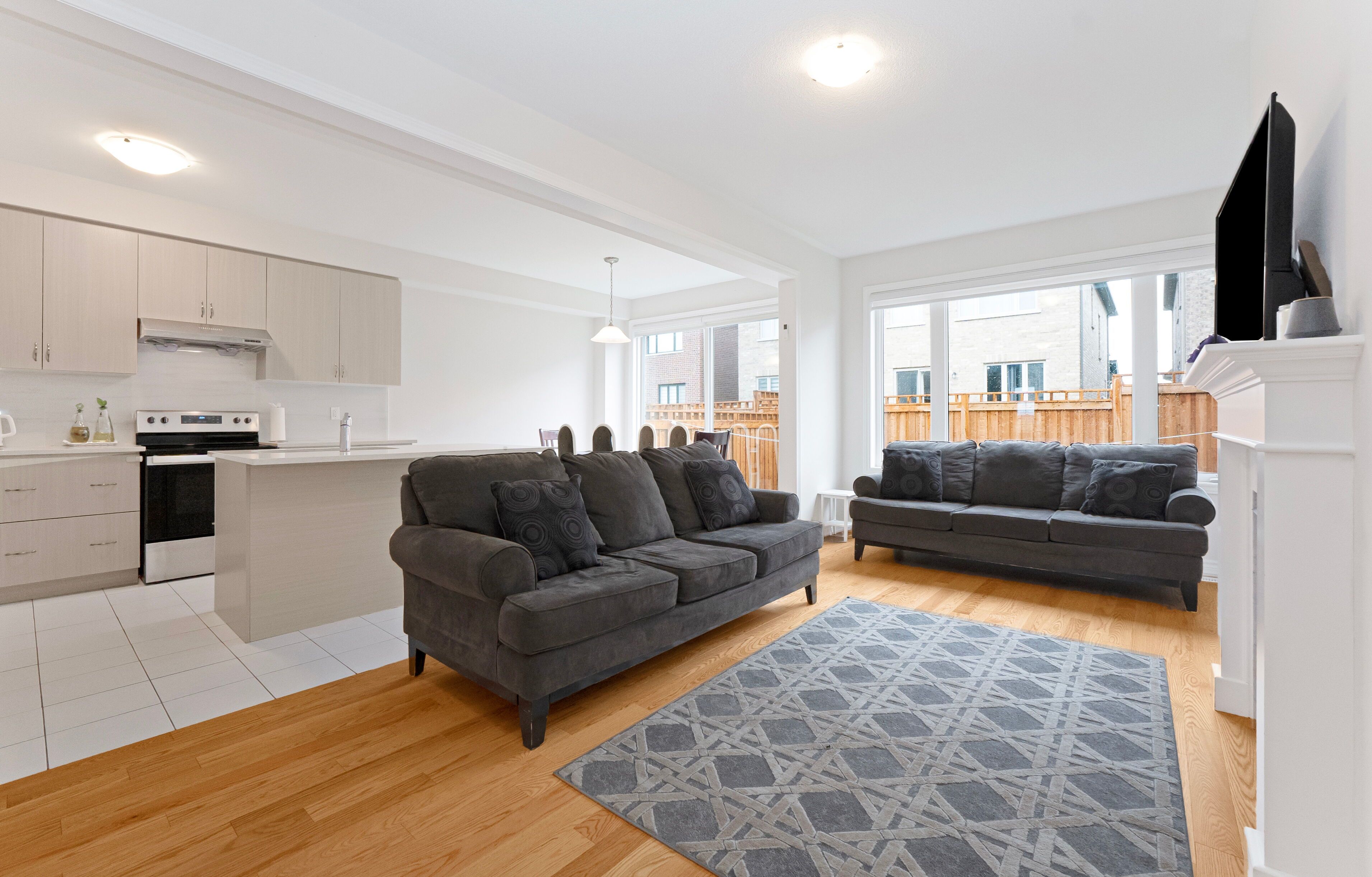 • Bright open-concept design with 9-ft ceilings and large windows.