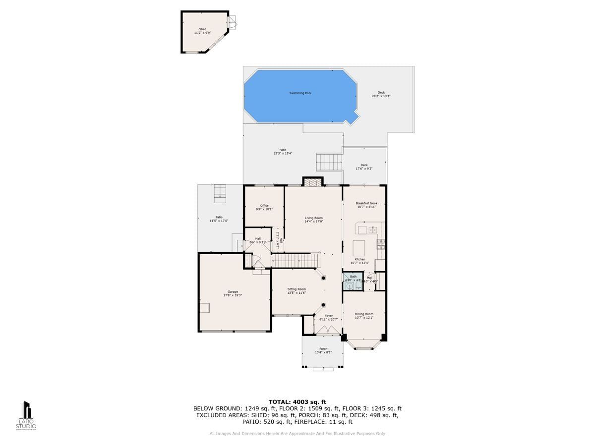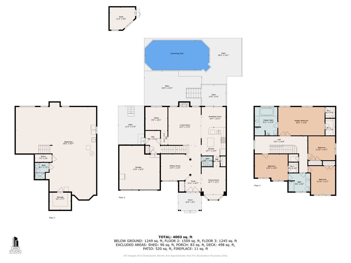 • Large saltwater pool with two decks and three patio areas for relaxation.