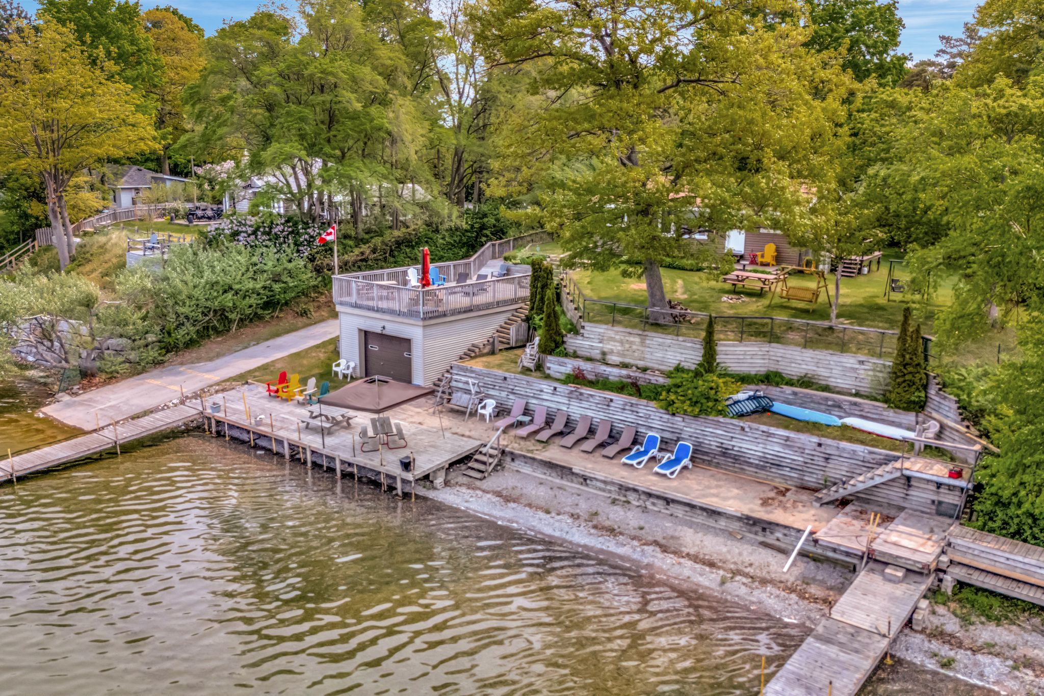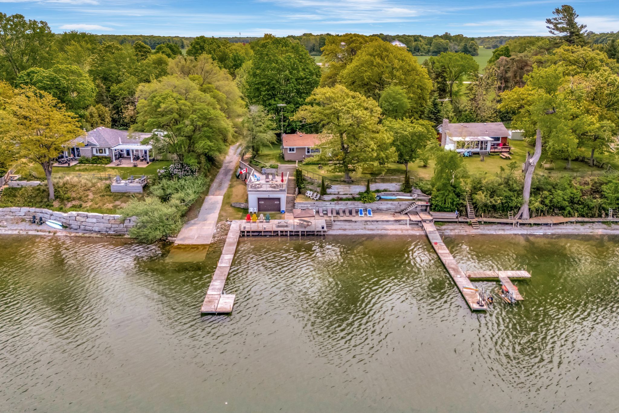 • Private beachfront for swimming, boating, and fishing adventures.