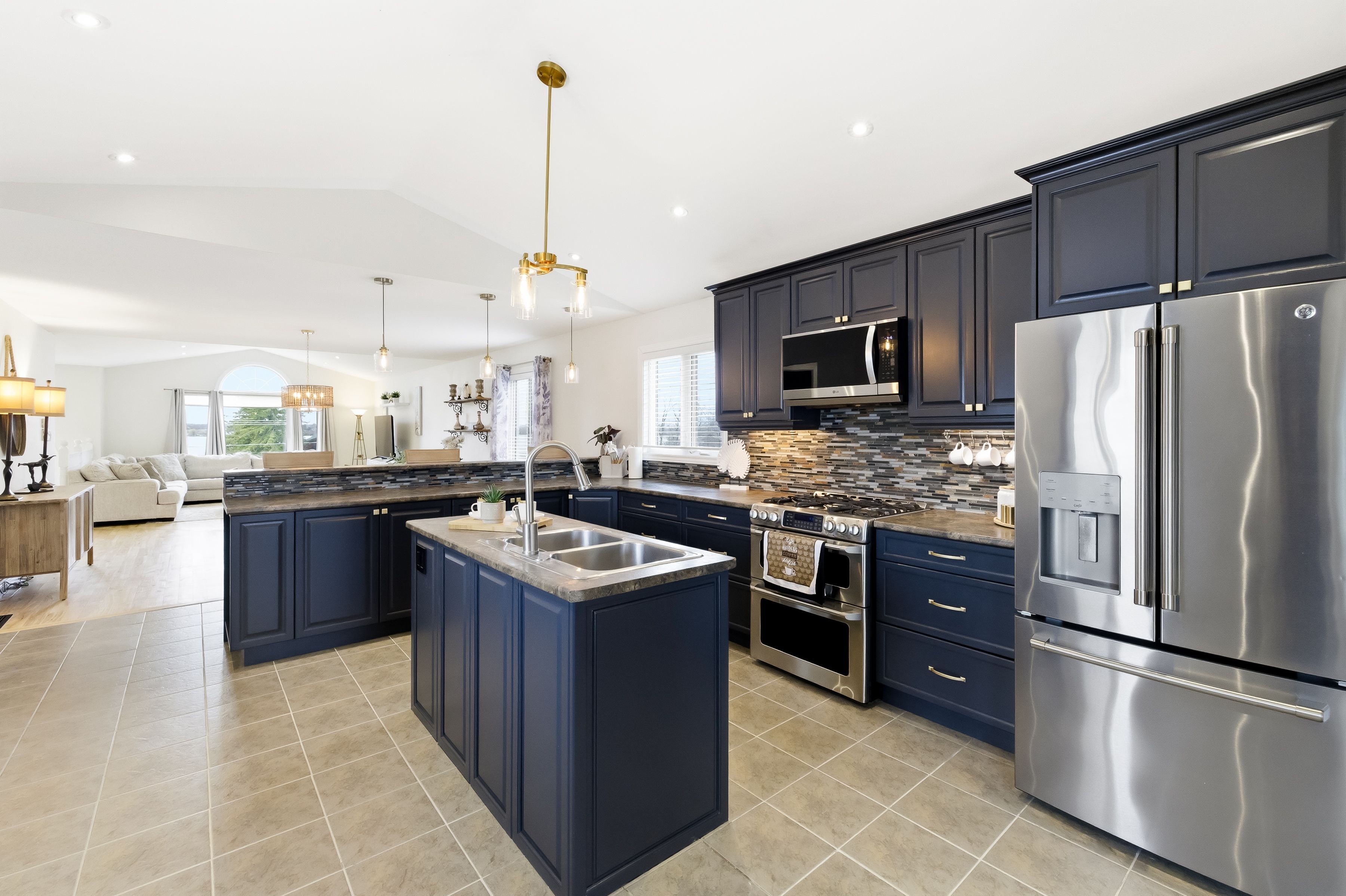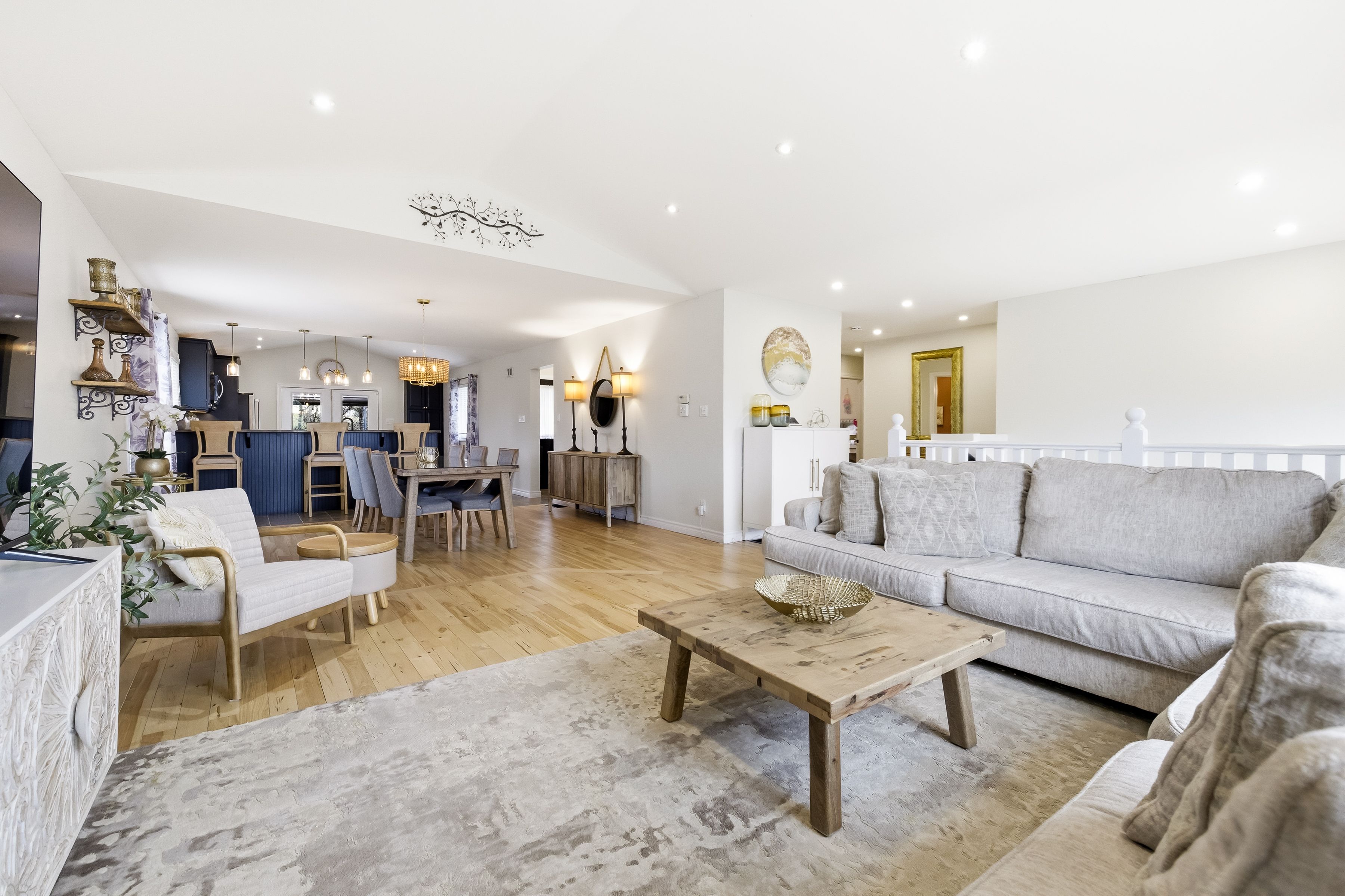 Majestic quality custom-built raised bungalow (2006) offering over 2,500 sqft of finished living space in a prime lake-view setting! Thoughtfully designed with spacious principal rooms, this property features 3+2 beds, 2 kitchens, 2 laundry, 4 full bathrooms and bonus studio loft offering exceptional versatility including that for home-based professionals. The main level showcases expansive open concept living, drenched in picturesque lake views, with dramatic cathedral and vaulted ceilings, maple hardwood flooring and 2 full bathrooms, including a primary ensuite with walk in closet, along with 2 additional generously sized bedrooms. The bright lower level offers 9-ft ceilings, a large family/recreation room, a rough in for future wet bar/additional kitchen, 2 bedrooms, a full bath, laundry and a walk-out to the attached garage - creating a seamless extension of living space ideal for recreation, guests, or office use. Set on a premium lot and offering elevated panoramic views of the lake while backing onto a golf course, this property delivers both privacy and lifestyle. A standout feature is the detached 20'x40' insulated garage/workshop with upgraded electrical service, impressive 14+ft ceiling height, 10'x12' overhead door and storage - ideal for hobbyists, contractors or outdoor enthusiasts. Adding further value to this exceptional space, is a studio loft with 4pc bath, kitchenette and second laundry - offering a highly versatile space with endless potential suited to a range of lifestyle needs. Additional highlights include parking for 12+ vehicles across two driveways, metal roof, multi level rear deck with 2 gas outlets, hot tub, gazebo in a fully fenced yard. Topping it all off - you are just mere steps from the lake access and 400m away from the local boat launch and park! This is a rare opportunity to live, work, and play in one desirable property.