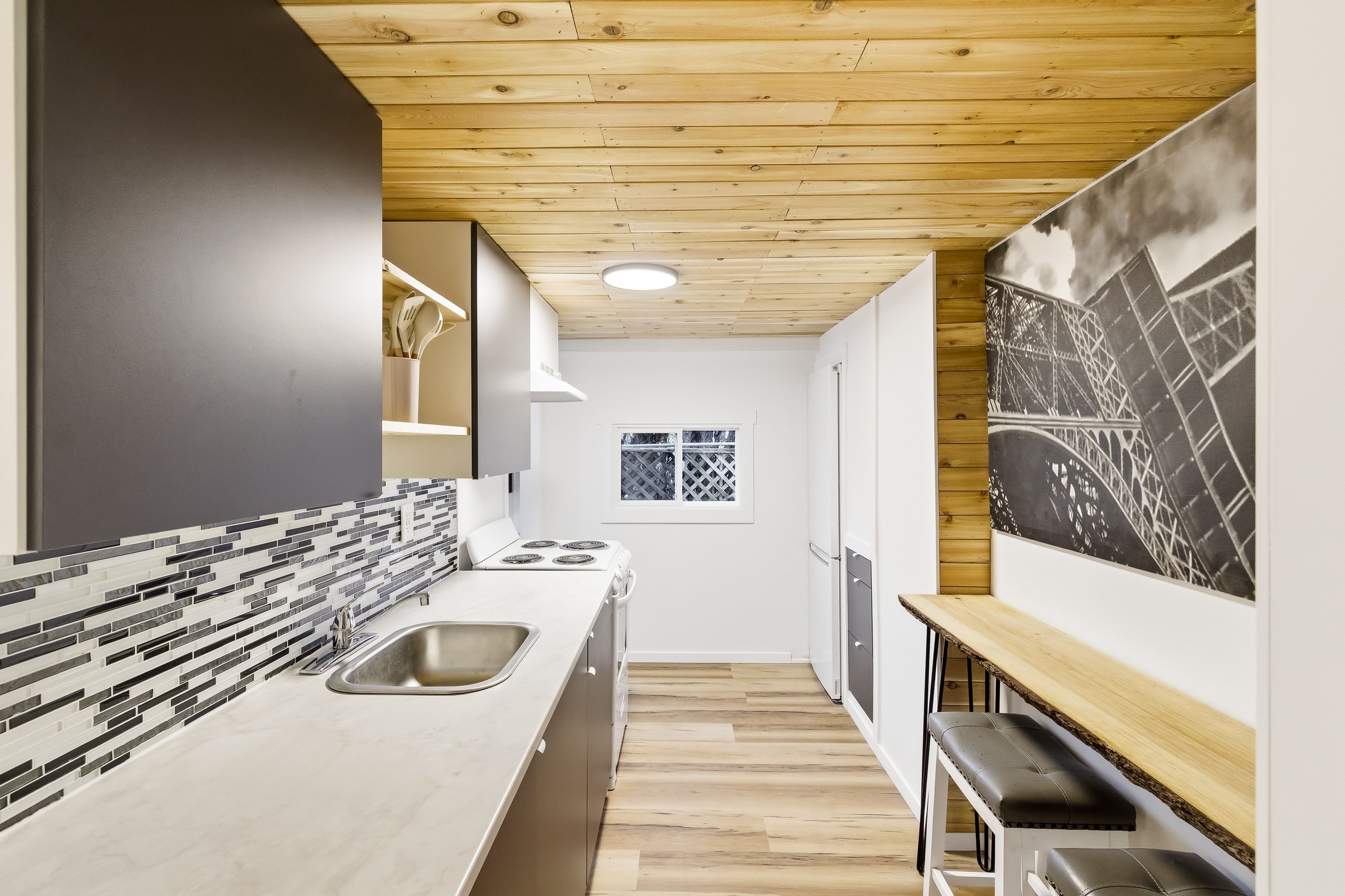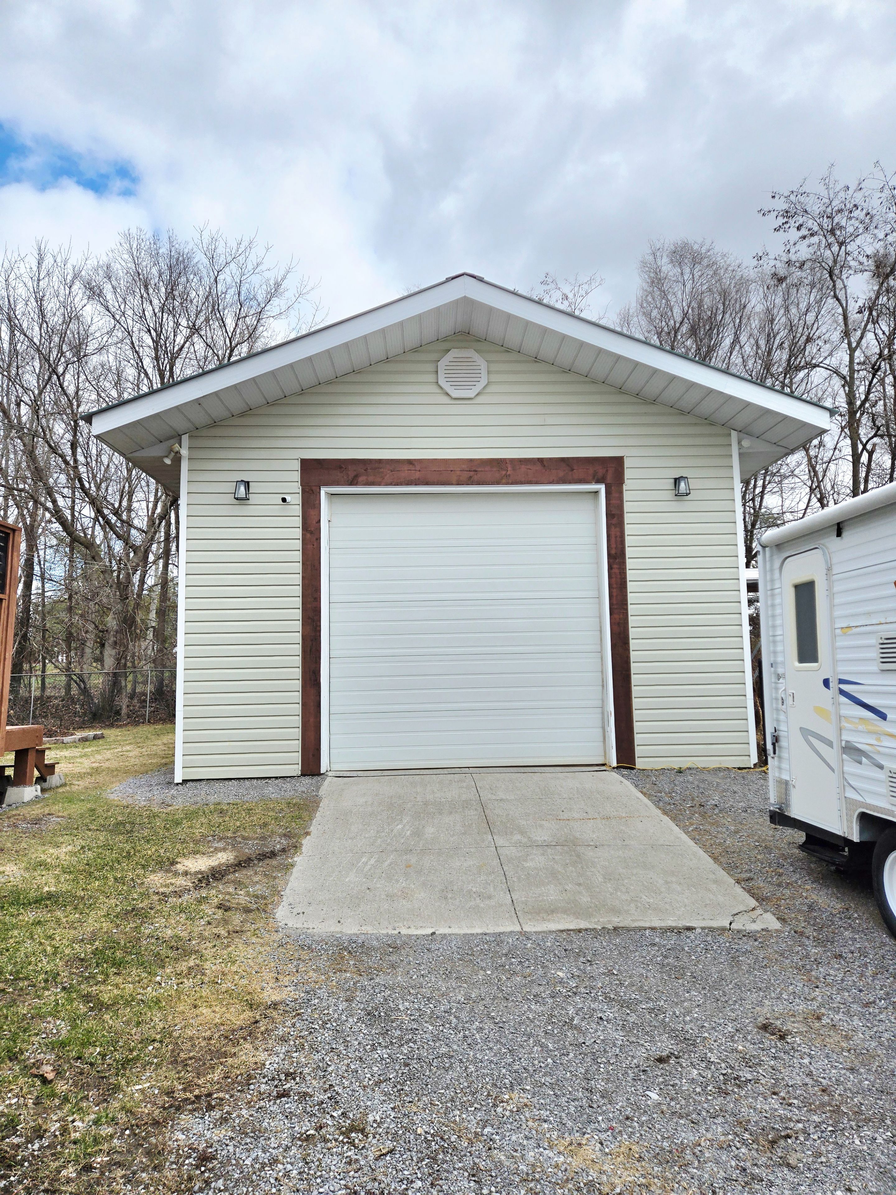 • Detached garage/workshop with high ceilings, ideal for hobbyists or contractors.