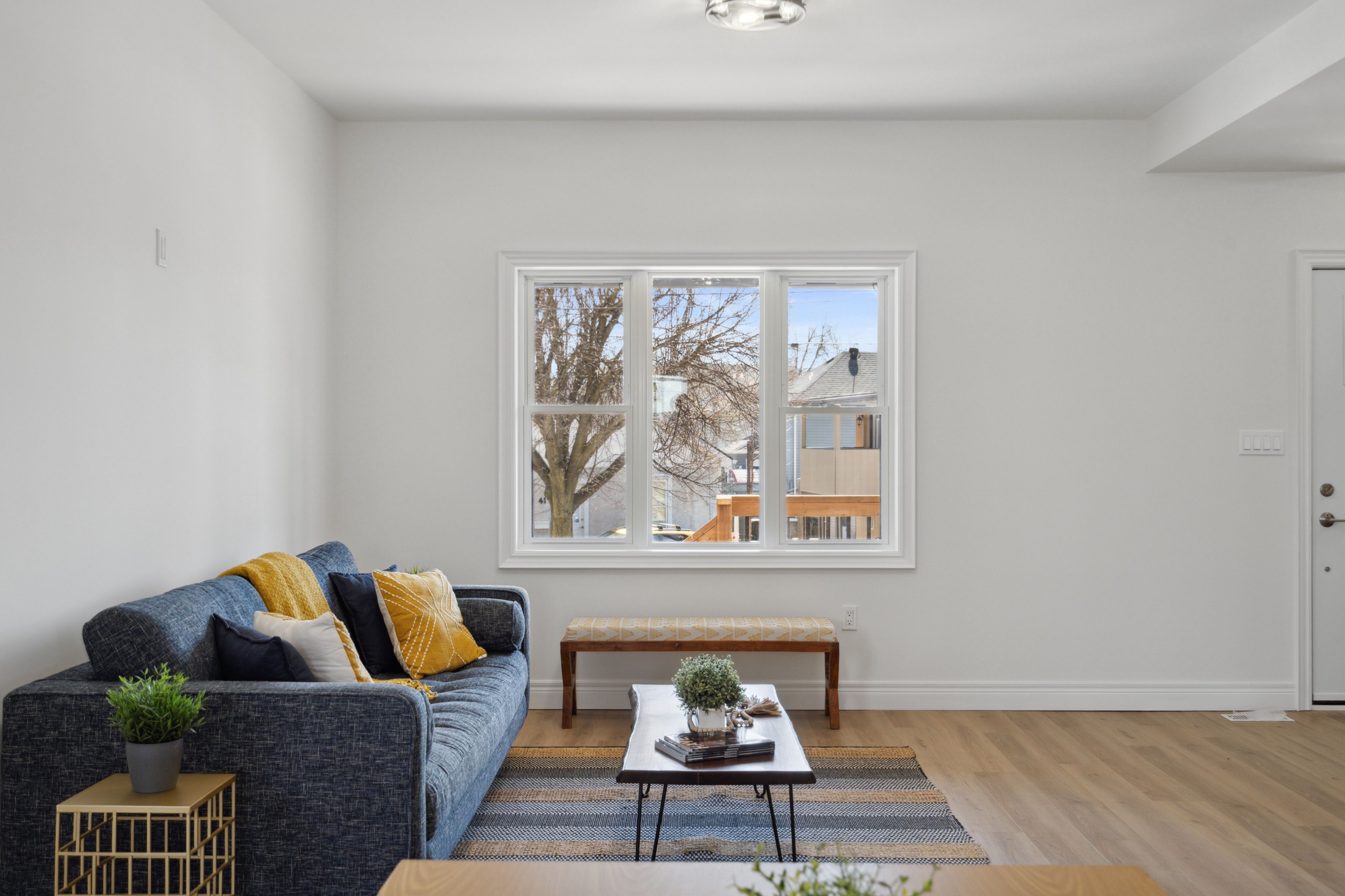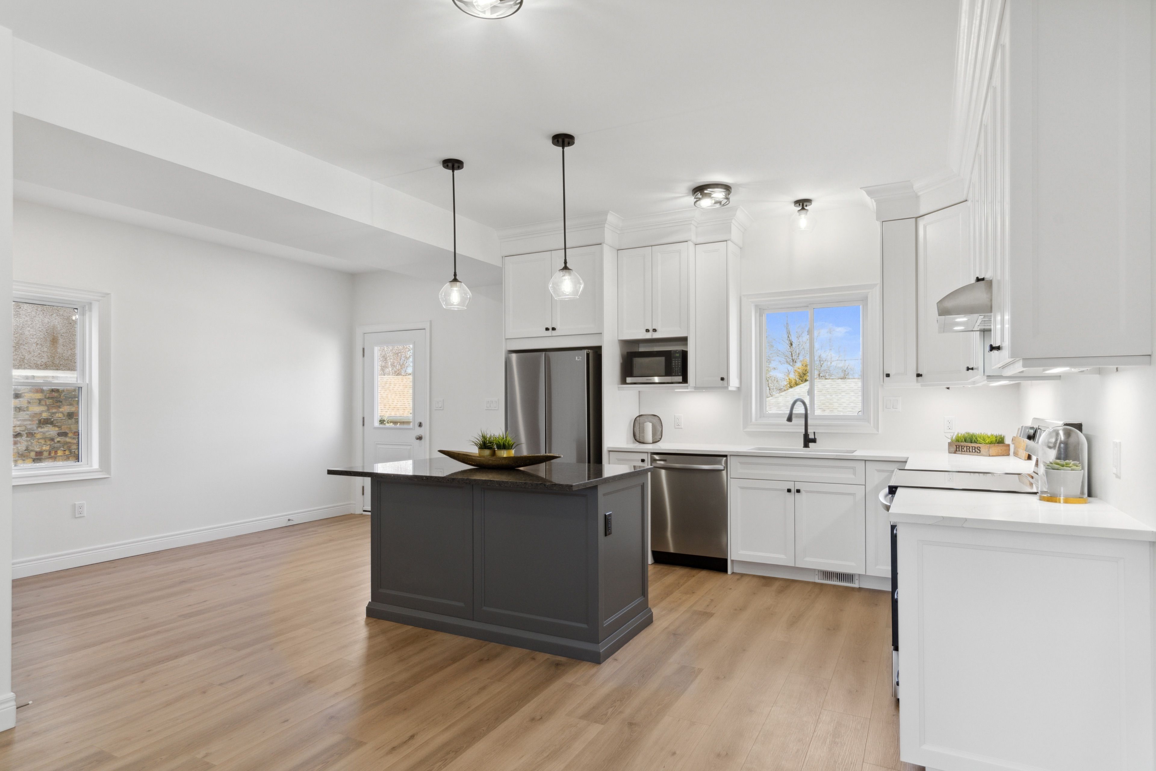 • Bright, open-concept main floor with high ceilings and luxury vinyl flooring.