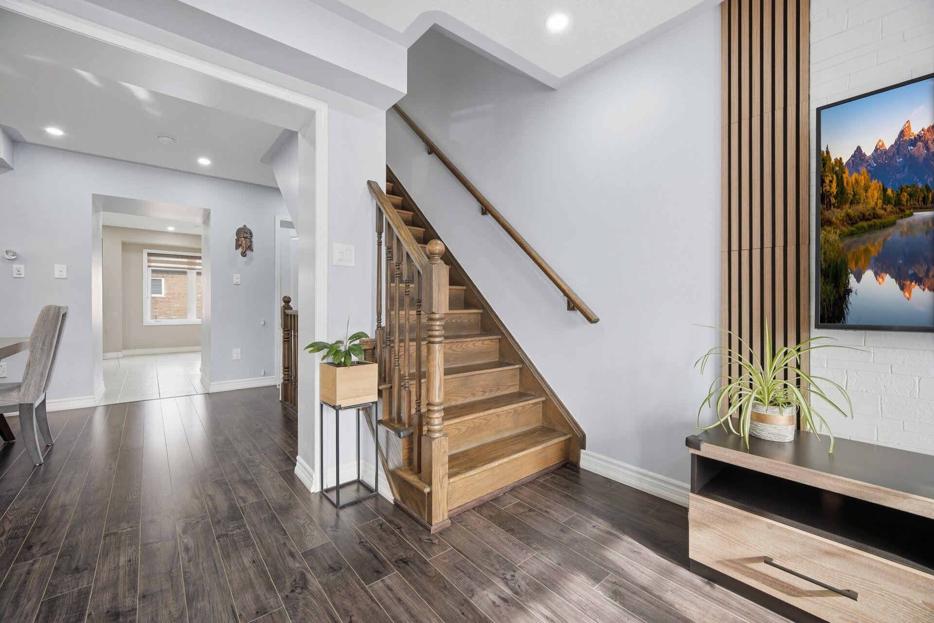 Welcome to 40 memory lane - a stunning 3+1 bedroom, 4 bathroom freehold townhome in the heart of mount pleasant village, one of brampton's most sought-after communities. Just minutes from mt. Pleasant go station, this beautifully crafted 1,778 sq ft markdale model is designed for families who love both comfort and style. The main level features high-quality laminate flooring, elegant hardwood stairs, and pot lights in the family room and kitchen that create a warm, inviting atmosphere. The chef-inspired kitchen comes equipped with stainless steel appliances, a brand new dishwasher, centre island, large pantry, and a reverse osmosis system for pure drinking water right at your tap. The finished basement offers a generous family room - perfect as a 4th bedroom or recreational space - along with a 2-piece powder room and a walk-out to your fully fenced private backyard. Enjoy morning sun at the front of the home and beautiful evening sun in your backyard, ideal for entertaining or simply unwinding. Upstairs, the primary bedroom is a true retreat with a luxurious 4-piece ensuite, pot lights, and a custom closet organizer. Additional upgrades include a wifi garage door opener, beam central vac, water softener, brand new washer, extended driveway, and full house drain cleaning. Steps to schools, parks, library, cassie campbell community centre, and transit. This turnkey home truly has it all - come make your memories down memory lane!