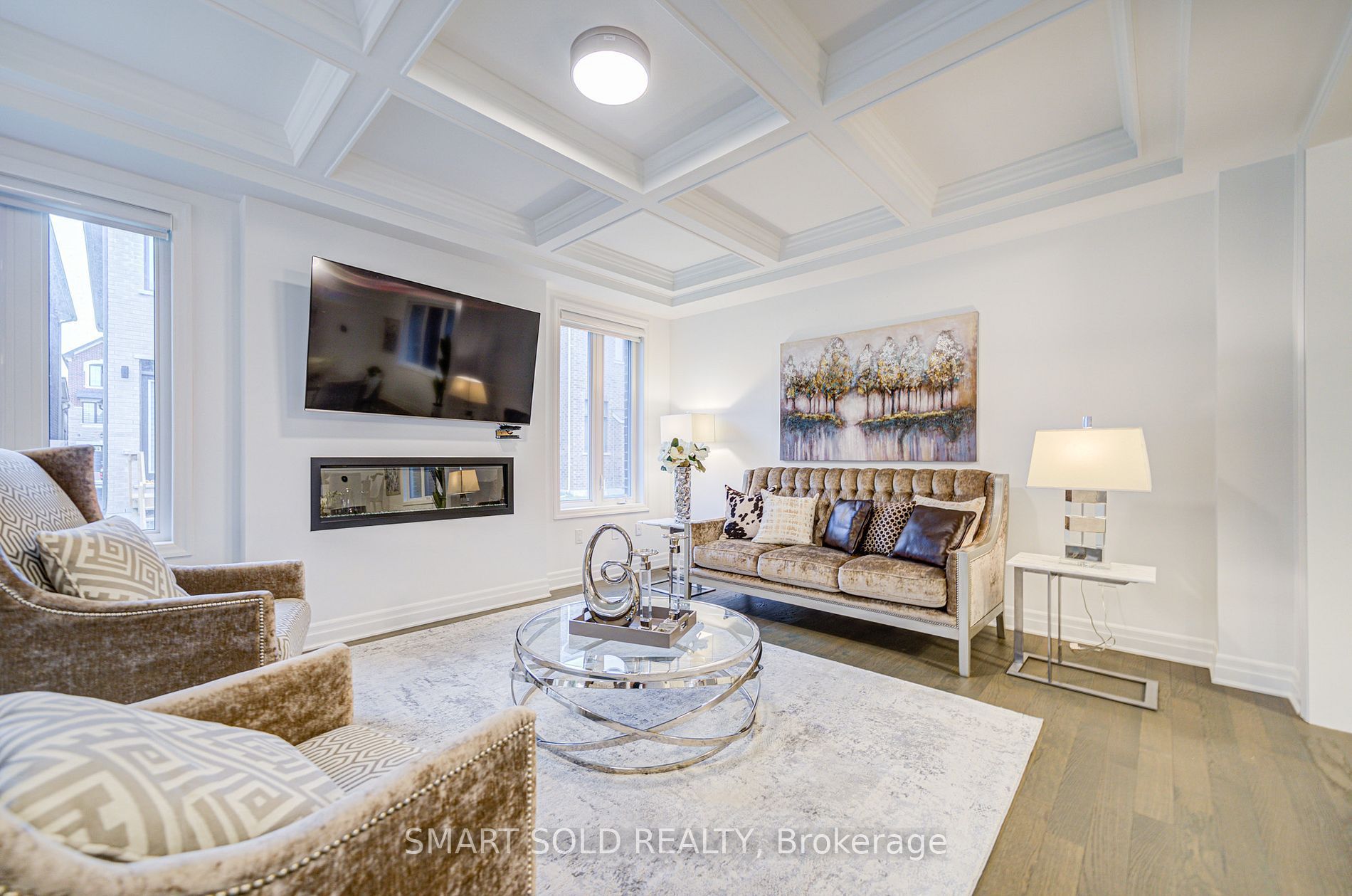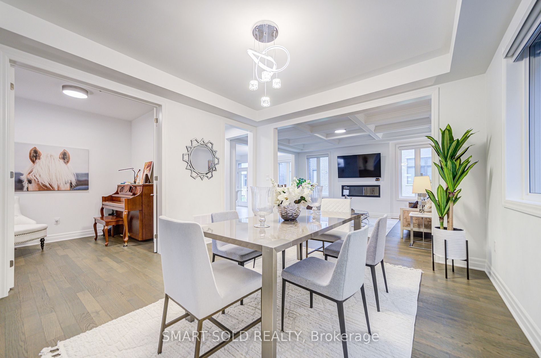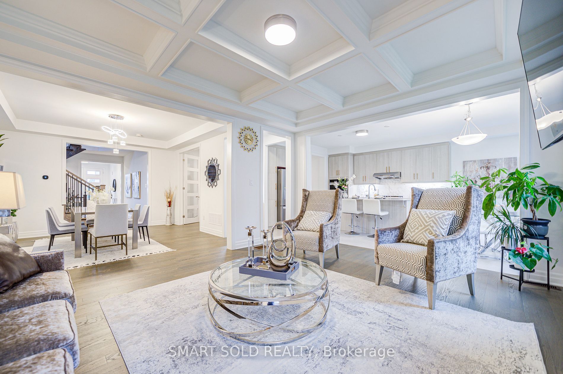 The largest double-car garage detached model by mattamy (3100 sq ft above grade) in the prestigious springwater community phase 2 of markham! This brand new 5-bedroom, 5-bathroom residence boasts over $100k in premium upgrades, offering smooth ceilings, hardwood flooring thru-out, enhanced upgraded doors, and pot lights. The expansive great room features a coffered ceiling, a sleek 50 electric fireplace, and a pre-framed tv wall with conduit, perfect for seamless entertainment setup. The chef-inspired kitchen is a true highlight, complete with extended cabinetry, under-cabinet lighting, high-end built-in stainless steel gas stove and appliances, a stylish pantry, upgraded quartz countertops and backsplash, and a large central island overlooking the bright breakfast area ideal for both family living and entertaining. The main floor also includes a formal dining room and a versatile den, perfect as a home office. Upgraded hardwood stairs with iron picket railings lead to a sun-filled upper level, featuring large windows and soaring ceilings. The primary suite is a private retreat, showcasing elegant tray ceilings, a spacious walk-in closet, and a spa-like ensuite with double quartz vanities and a fully tiled glass shower. The second bedroom enjoys abundant natural light and its own ensuite. Another bedroom is spacious and functional, with a closet, while the additional two bedrooms share a well-appointed 4-pc bath. The partially finished basement includes drywall and a completed 3-pc bathroom, ready to be transformed into a recreation space, an extra bedroom, or an income-generating suite. Located in a top-tier school district, minutes from hwy 404, go transit, costco, angus glen community centre, parks, and nature trails, this home combines luxury living with unbeatable convenience.