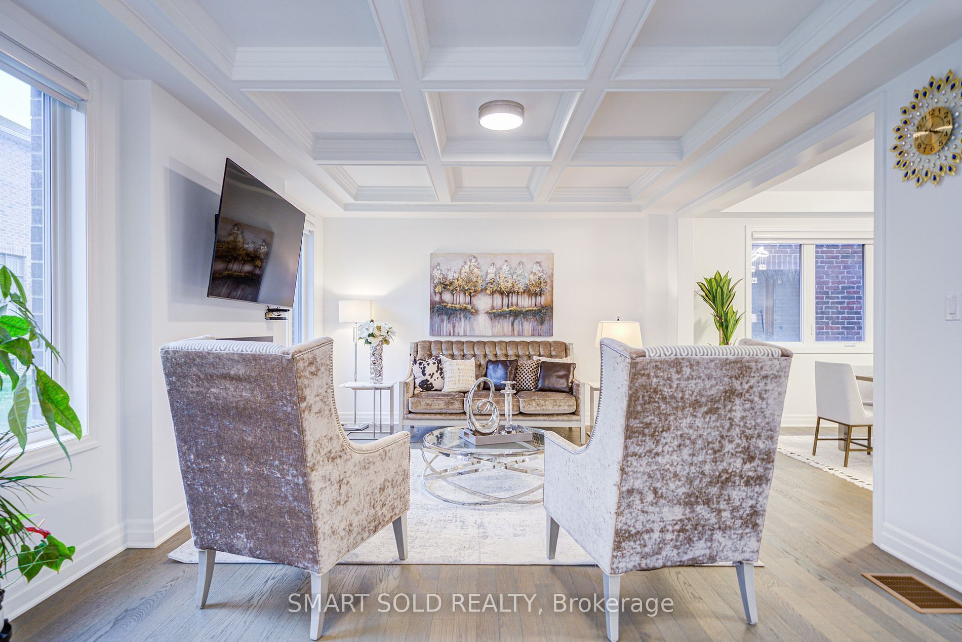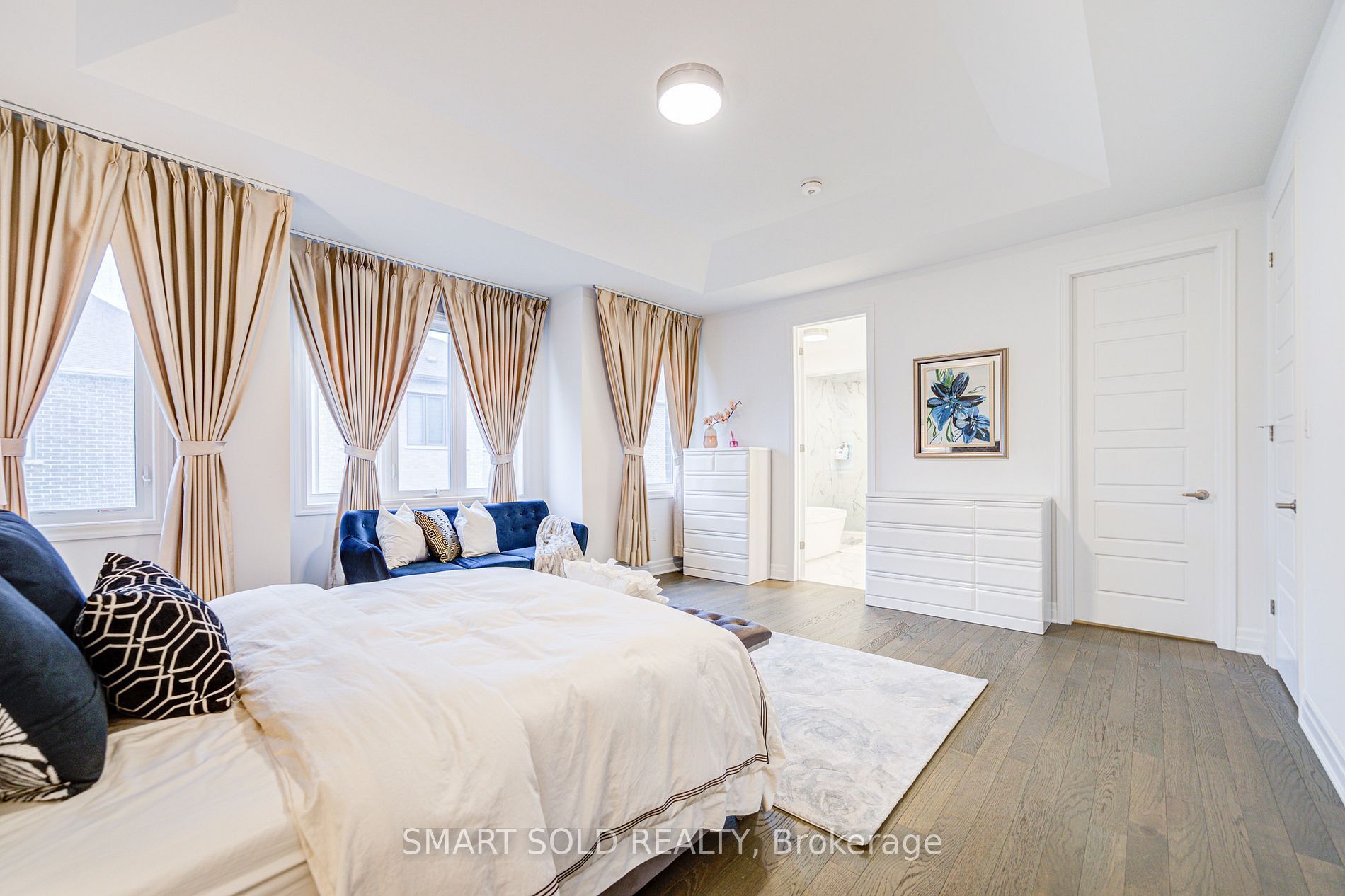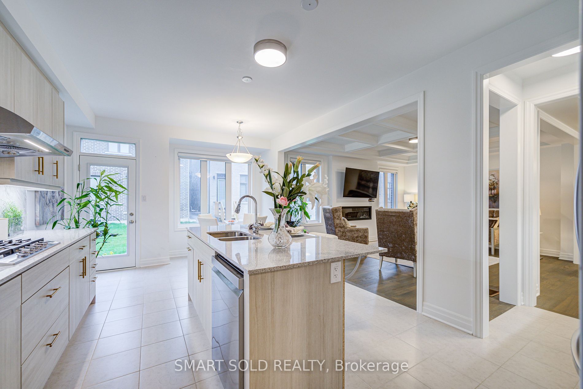 The largest double-car garage detached model by mattamy (3100 sq ft above grade) in the prestigious springwater community phase 2 of markham! This brand new 5-bedroom, 5-bathroom residence boasts over $100k in premium upgrades, offering smooth ceilings, hardwood flooring thru-out, enhanced upgraded doors, and pot lights. The expansive great room features a coffered ceiling, a sleek 50 electric fireplace, and a pre-framed tv wall with conduit, perfect for seamless entertainment setup. The chef-inspired kitchen is a true highlight, complete with extended cabinetry, under-cabinet lighting, high-end built-in stainless steel gas stove and appliances, a stylish pantry, upgraded quartz countertops and backsplash, and a large central island overlooking the bright breakfast area ideal for both family living and entertaining. The main floor also includes a formal dining room and a versatile den, perfect as a home office. Upgraded hardwood stairs with iron picket railings lead to a sun-filled upper level, featuring large windows and soaring ceilings. The primary suite is a private retreat, showcasing elegant tray ceilings, a spacious walk-in closet, and a spa-like ensuite with double quartz vanities and a fully tiled glass shower. The second bedroom enjoys abundant natural light and its own ensuite. Another bedroom is spacious and functional, with a closet, while the additional two bedrooms share a well-appointed 4-pc bath. The partially finished basement includes drywall and a completed 3-pc bathroom, ready to be transformed into a recreation space, an extra bedroom, or an income-generating suite. Located in a top-tier school district, minutes from hwy 404, go transit, costco, angus glen community centre, parks, and nature trails, this home combines luxury living with unbeatable convenience.