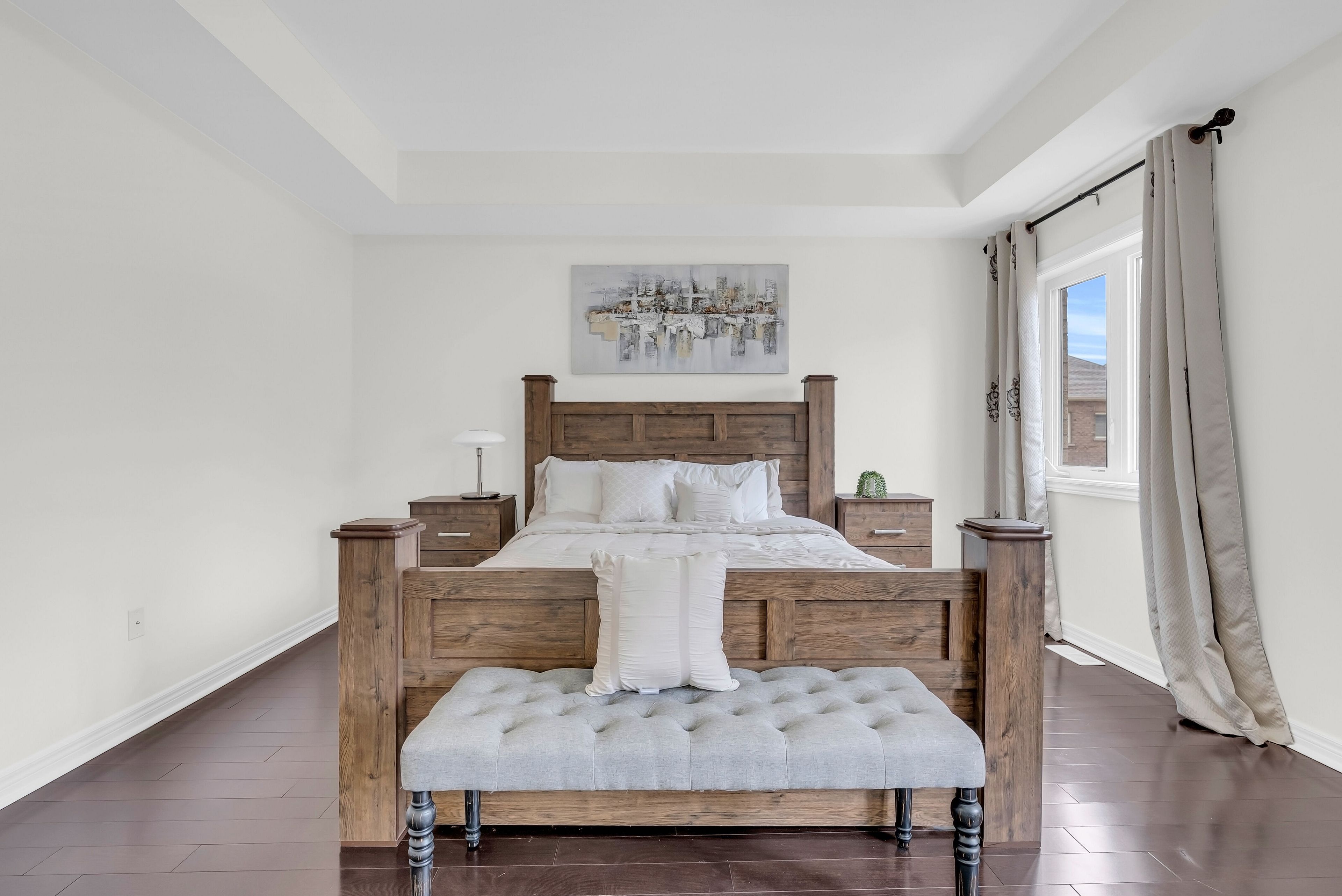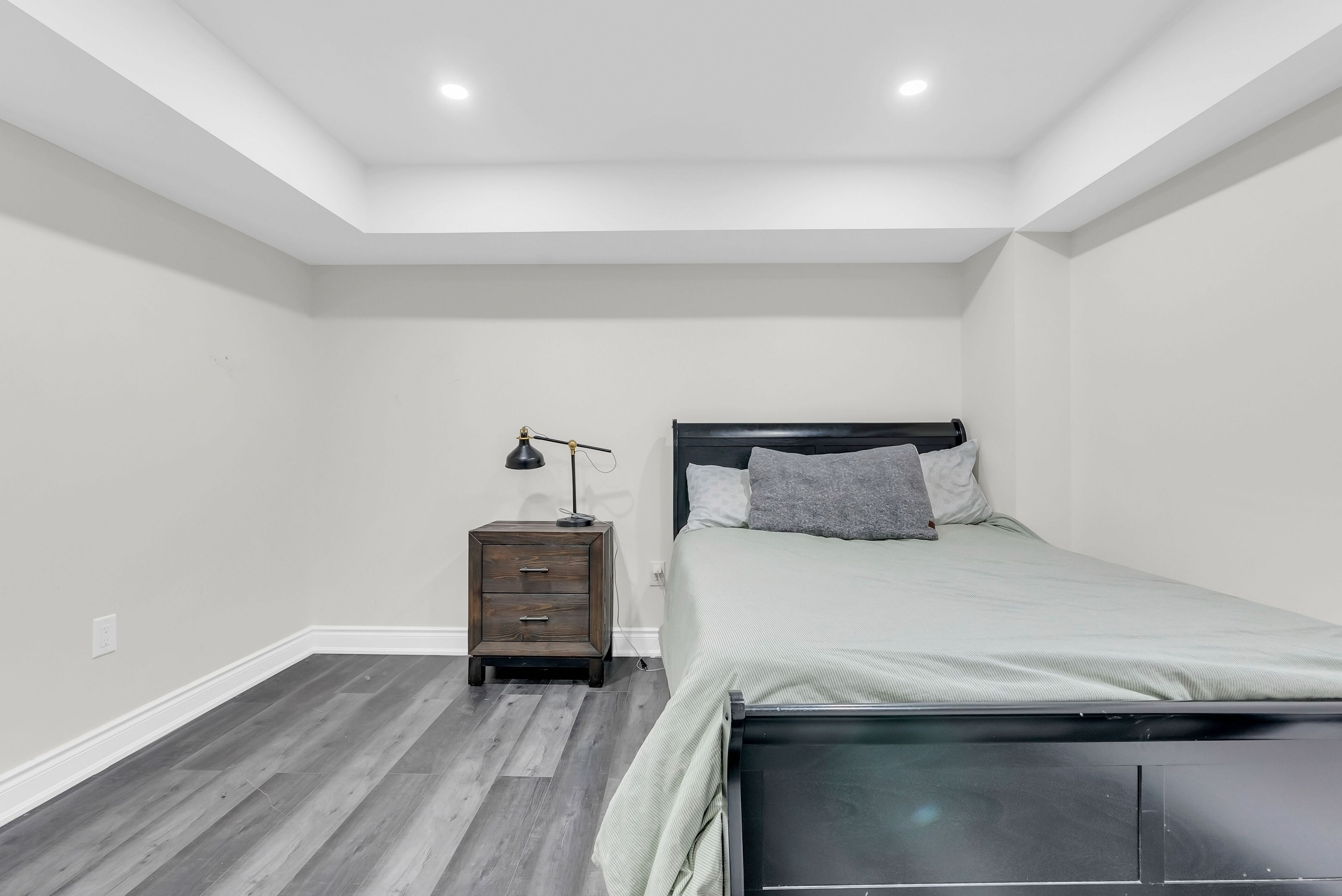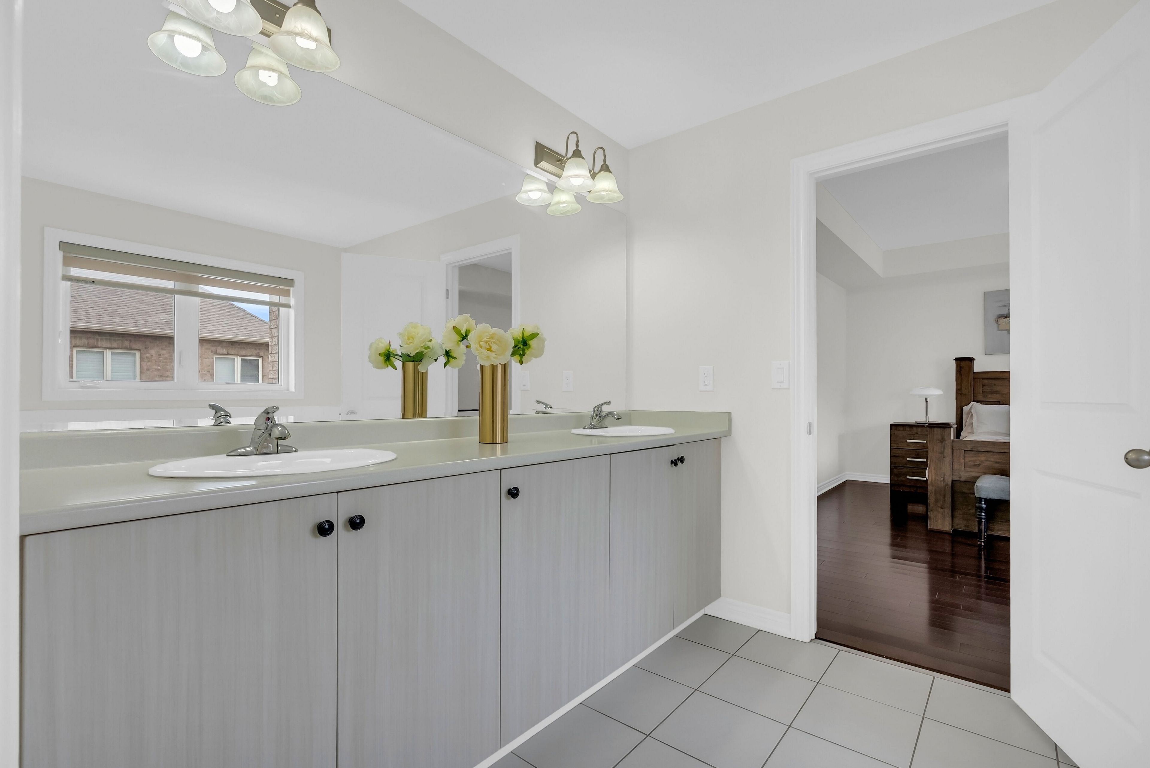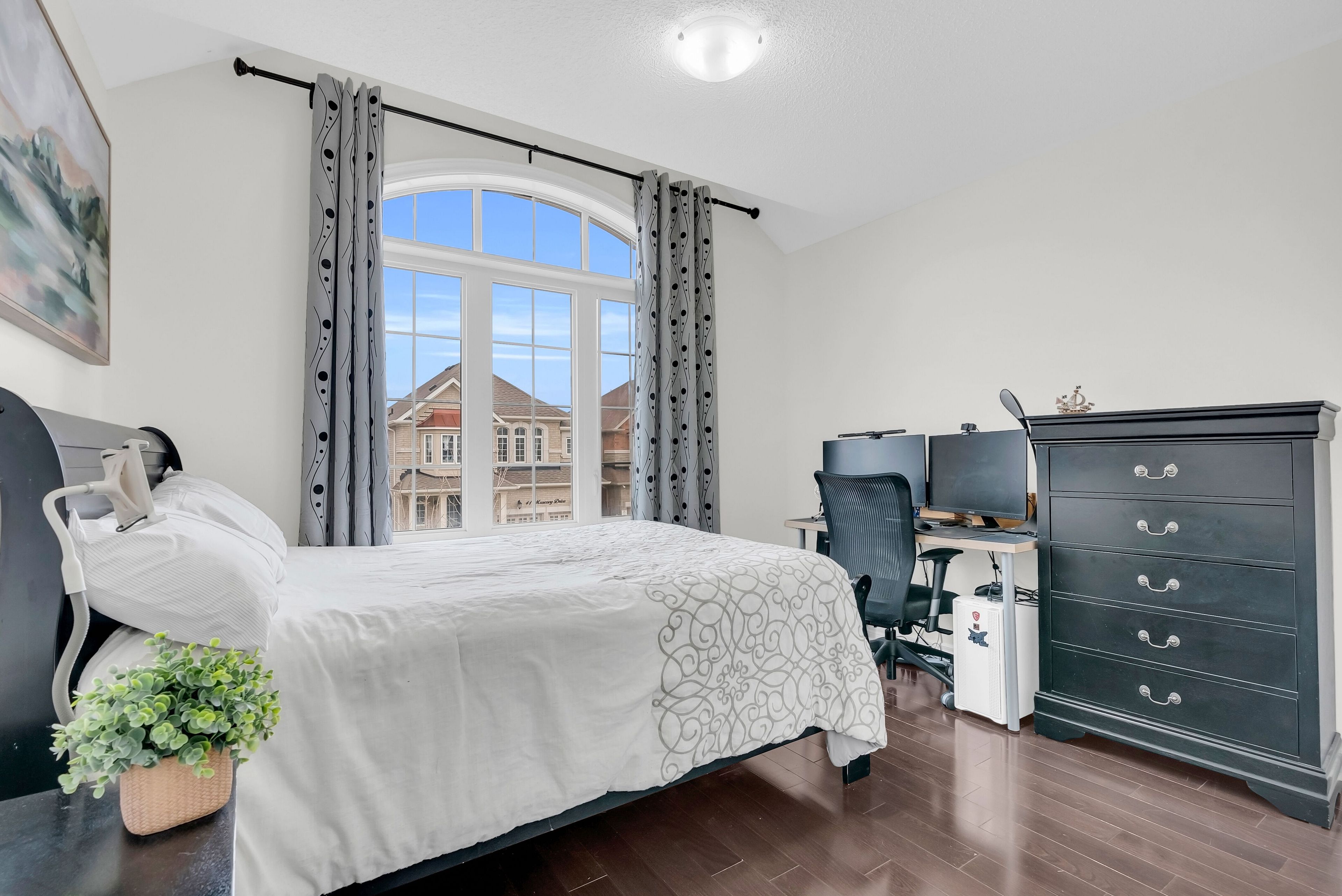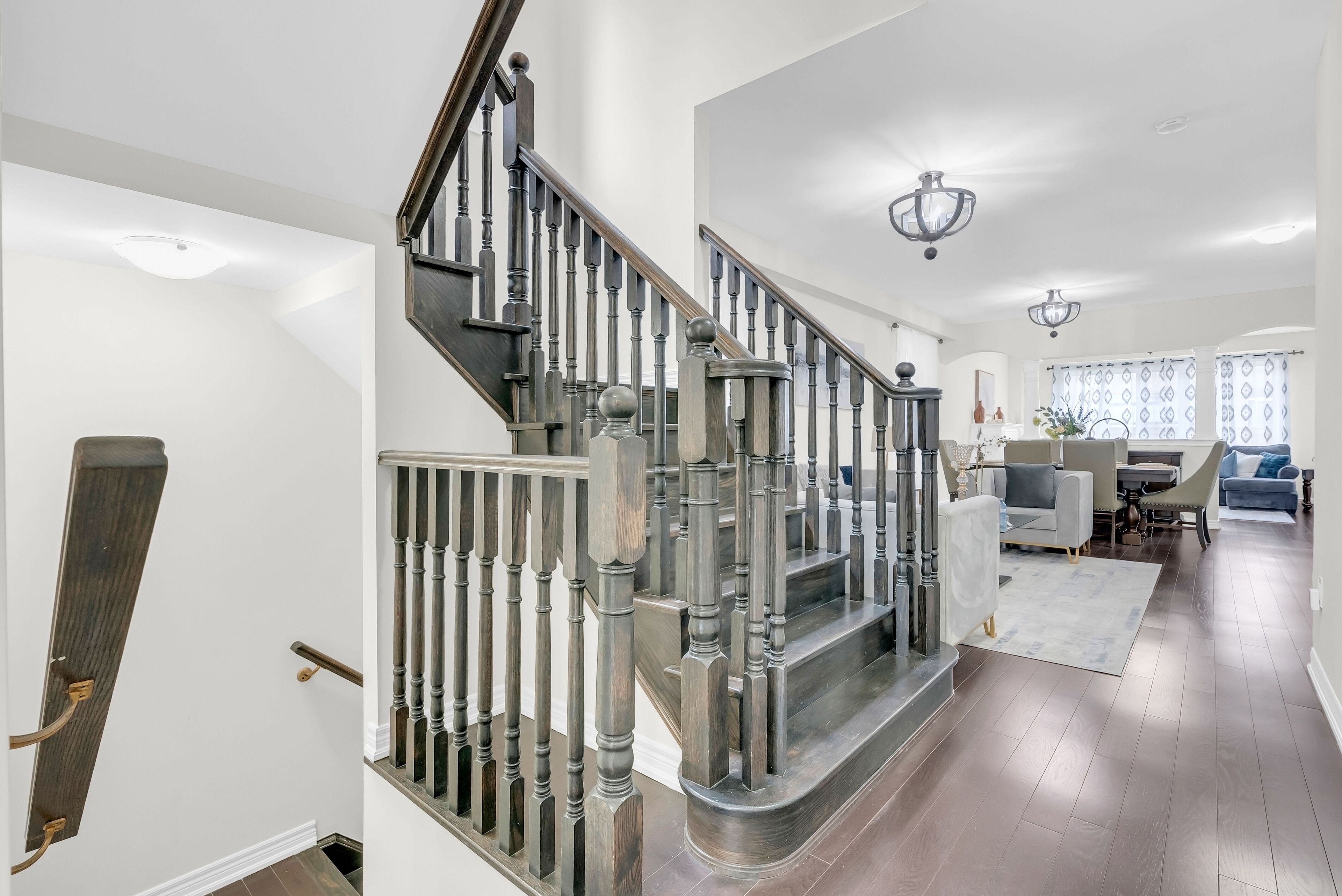 • Open-concept layout with 9-foot ceilings and hardwood flooring throughout.